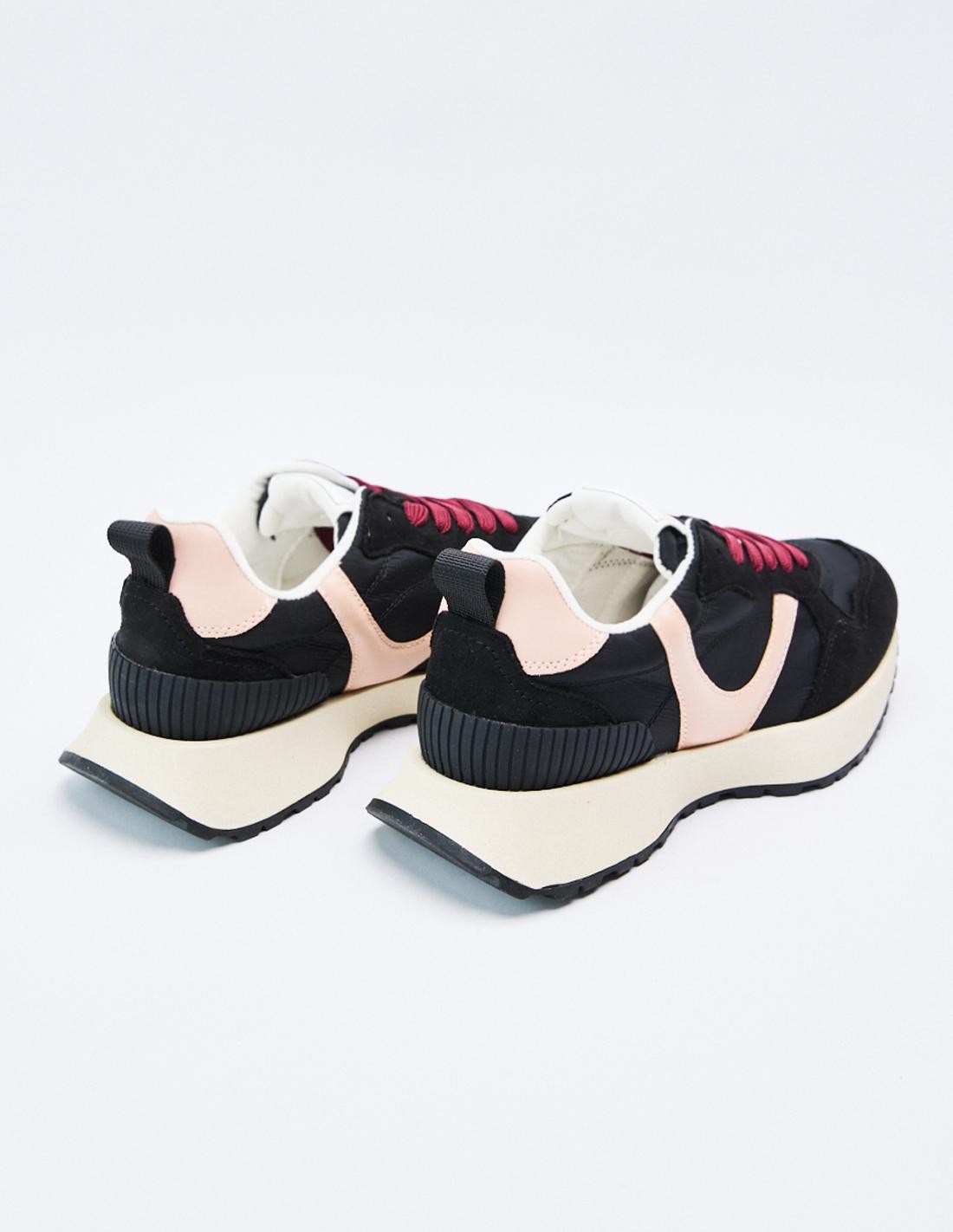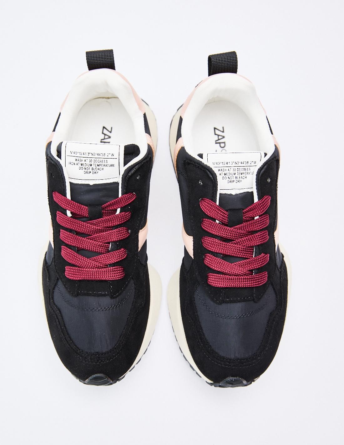 Zapatillas deportivas estilo running en combinación de piezas y materiales. Suela dentada. Detalles en diferentes colores. Cierre mediante cordones.