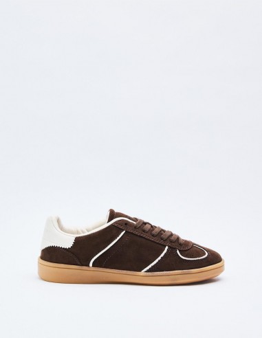 Zapato tipo deportiva en combinación de materiales. Suela en contraste. Parte trasera en efecto piel . Cierre mediante cordones. Altura de la suela: 2,5 cm