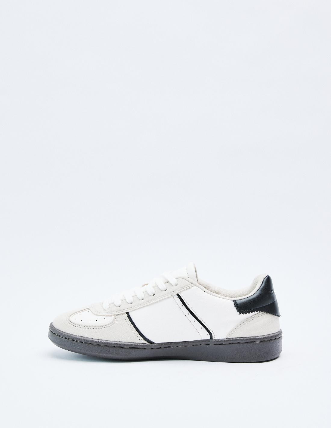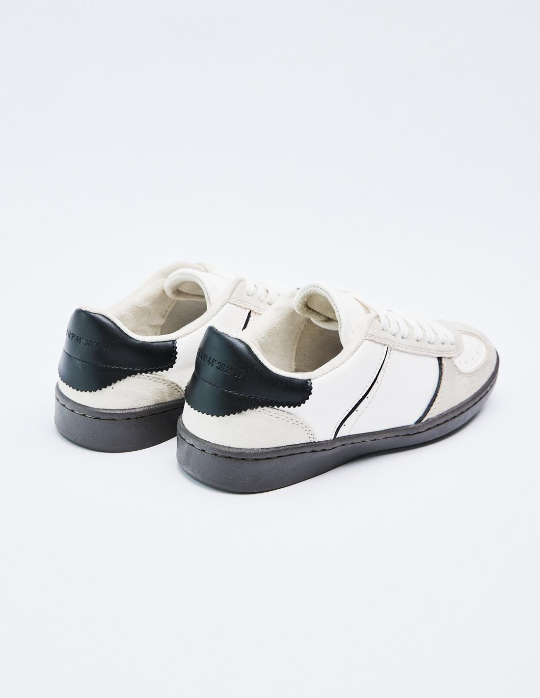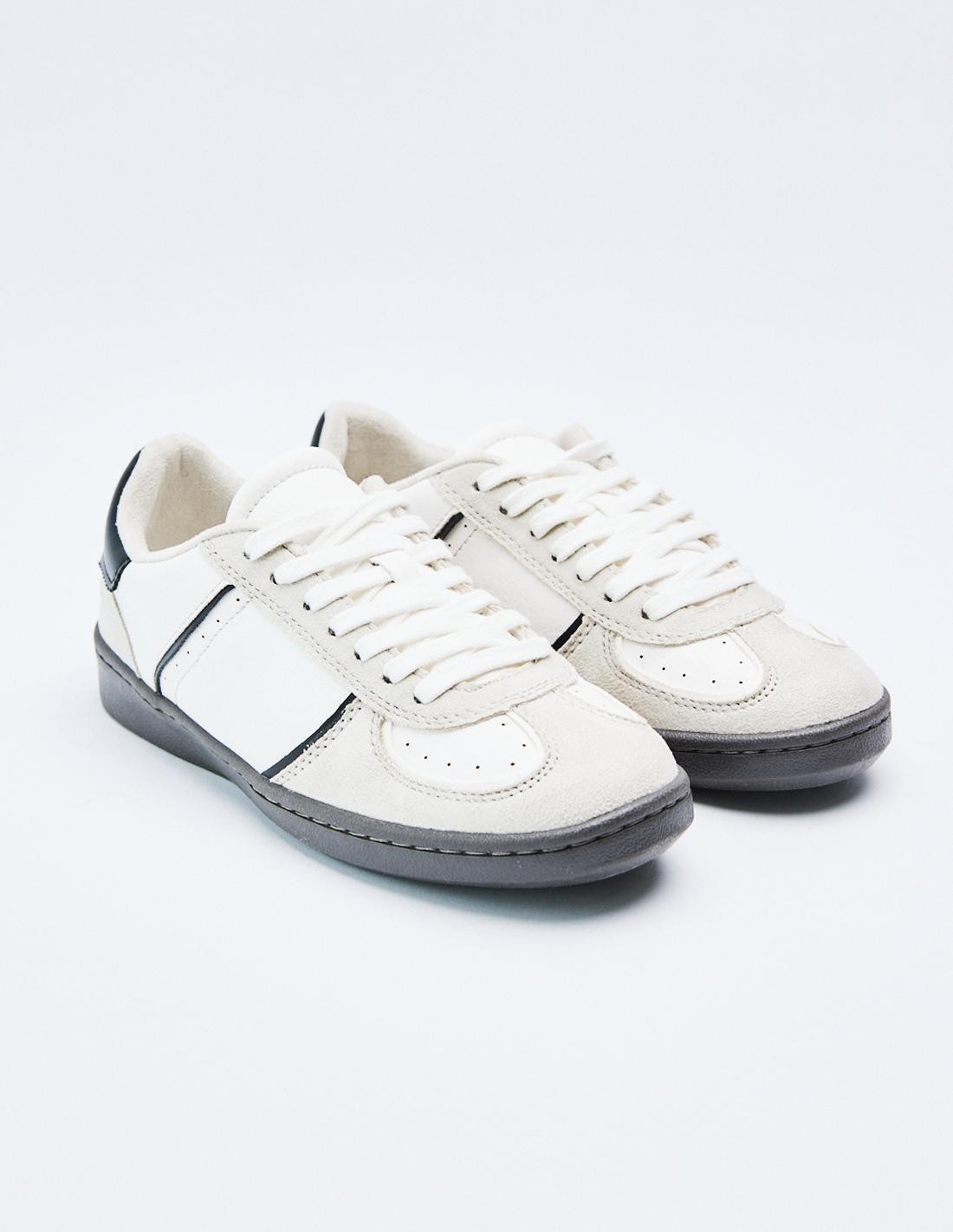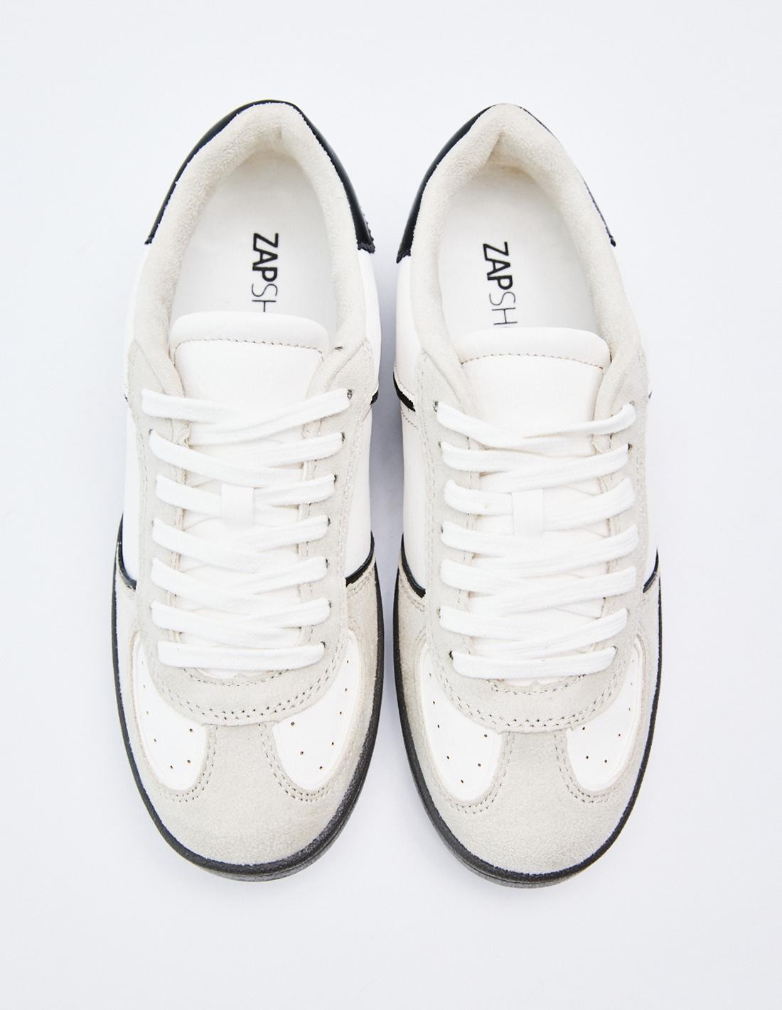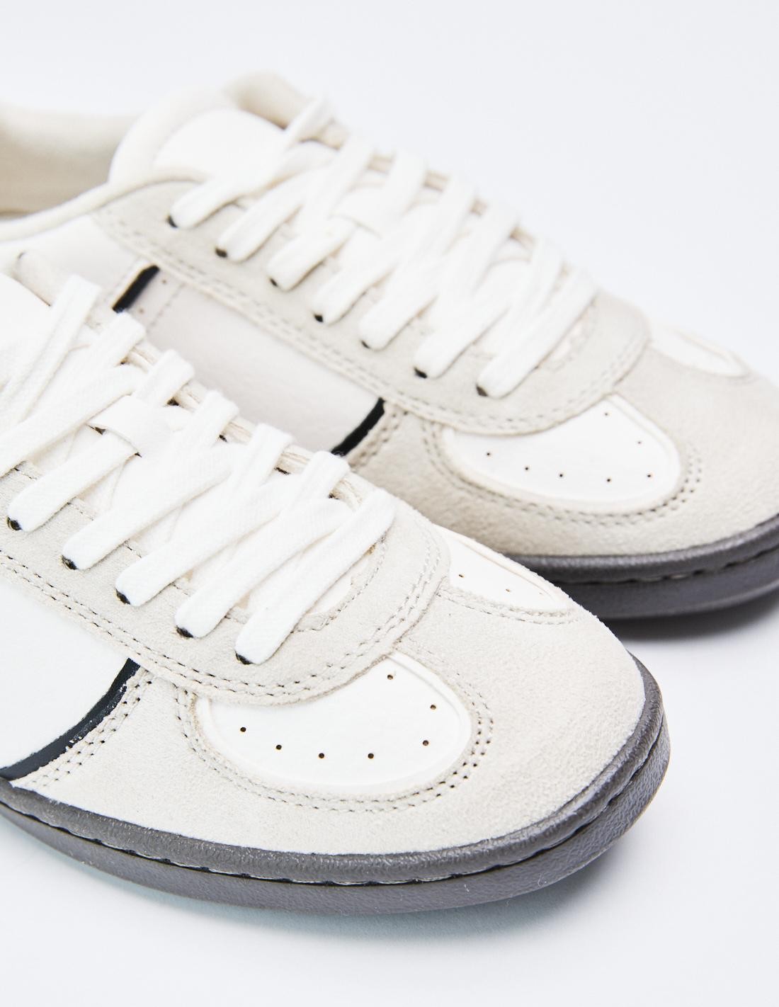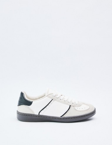Zapato tipo deportiva en combinación de materiales. Suela en contraste. Parte trasera en efecto piel . Cierre mediante cordones. Altura de la suela: 2,5 cm
