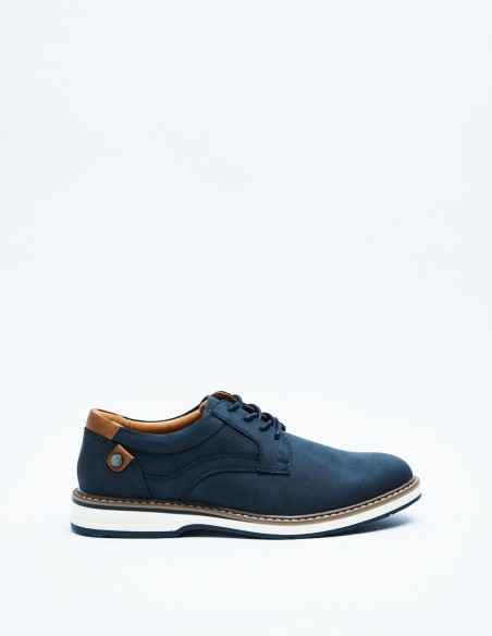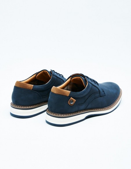 Zapato tipo casual efecto piel. Cordonera con cuatro pasados. Suela a contraste. Estilo clásico. Punta redondeada.