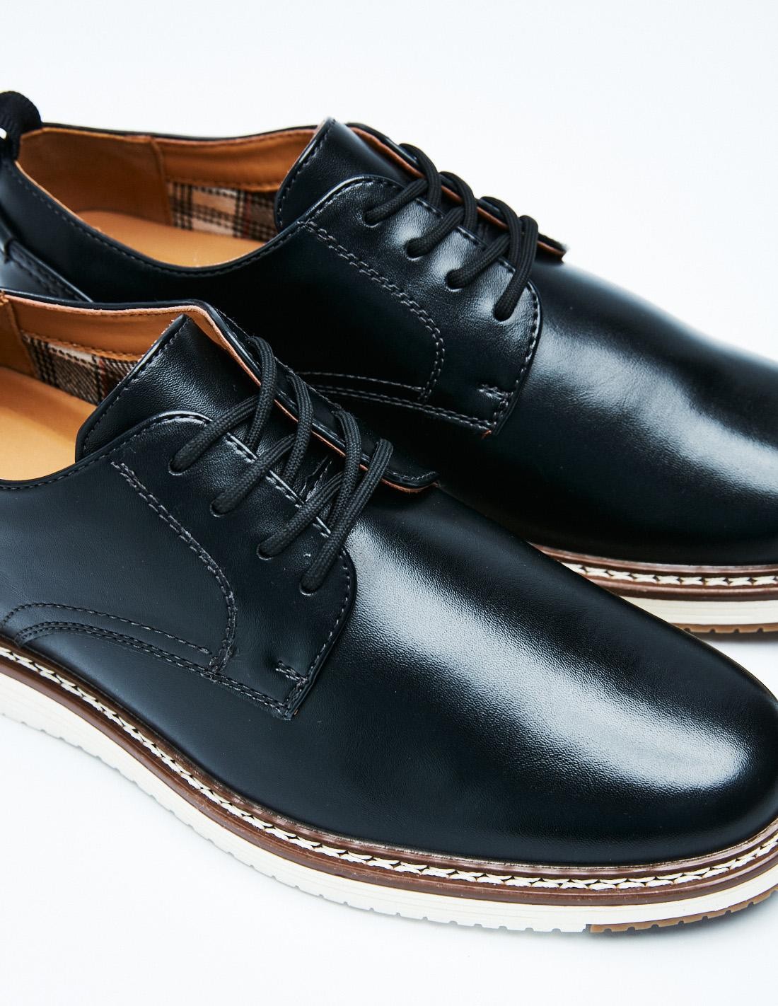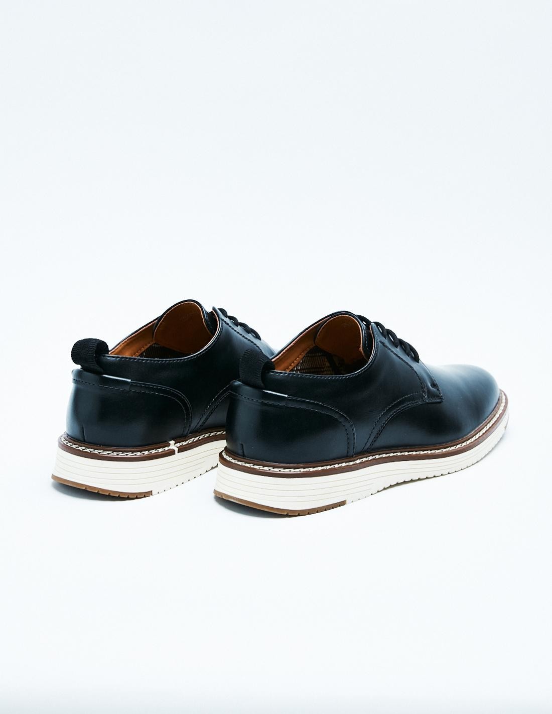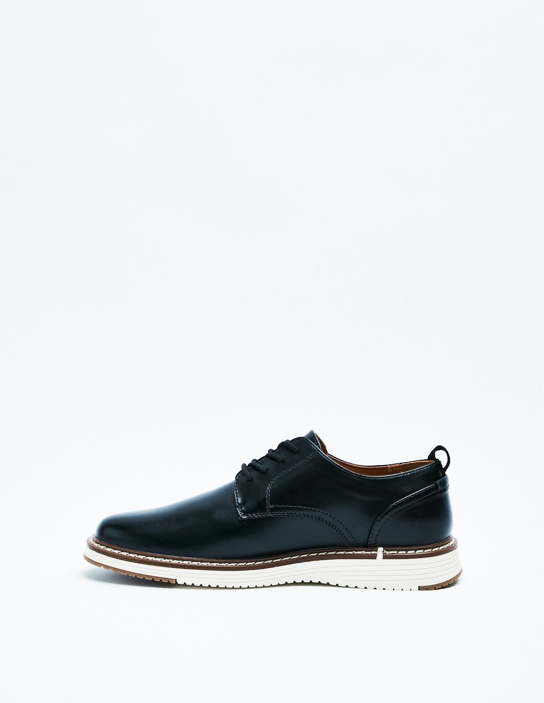 Zapato tipo casual efecto piel. Cordonera con cuatro pasados. Suela a contraste. Estilo clásico. Punta redondeada.