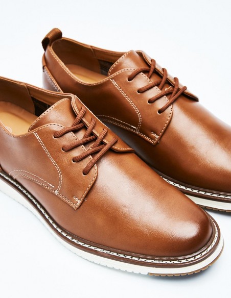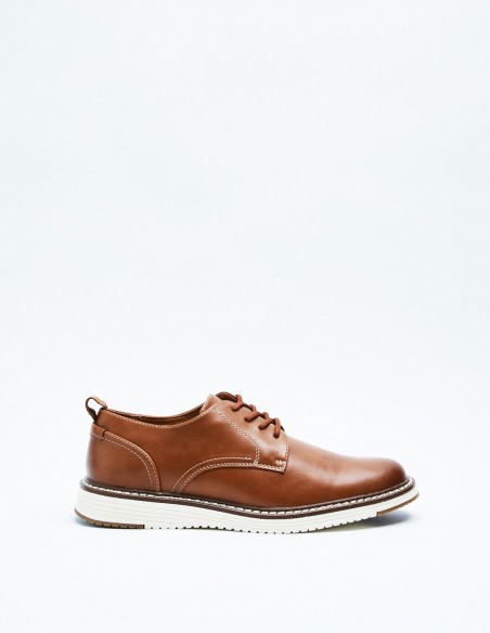 Zapato tipo casual efecto piel. Cordonera con cuatro pasados. Suela a contraste. Estilo clásico. Punta redondeada.