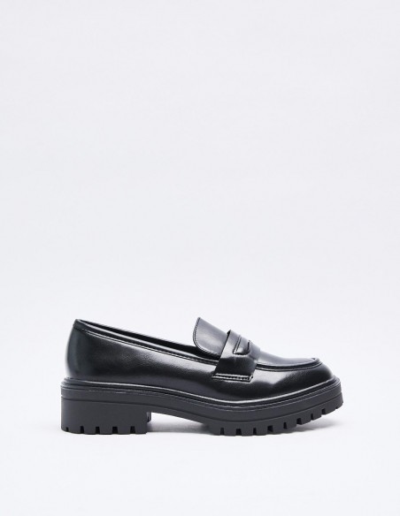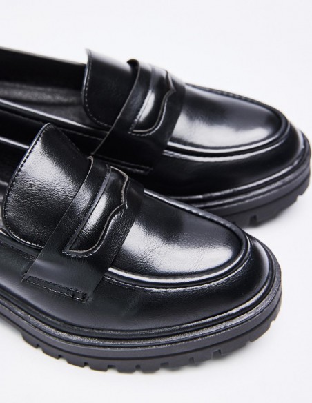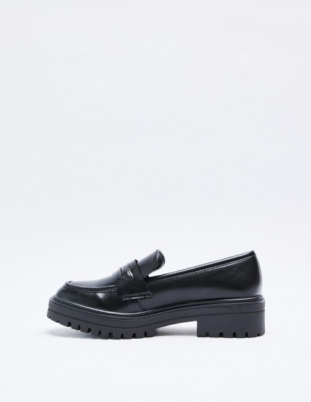 Zapato plano tipo mocasín efecto piel . Suela dentada .Acabado en punta redonda. Altura de la suela: 2 cm.
