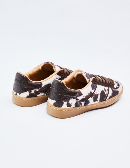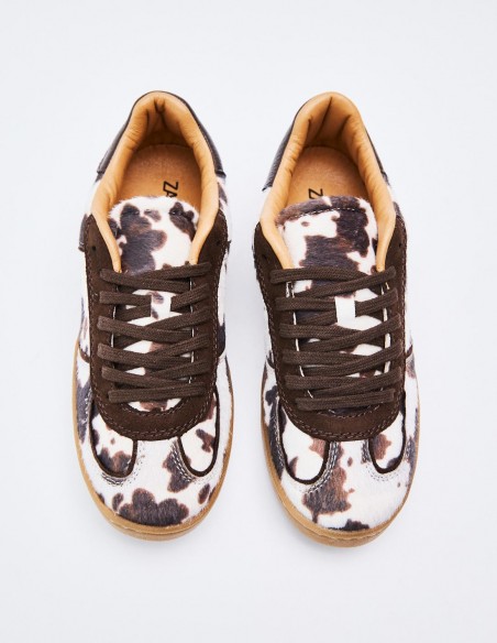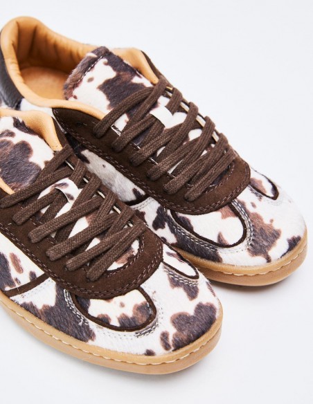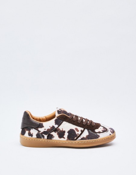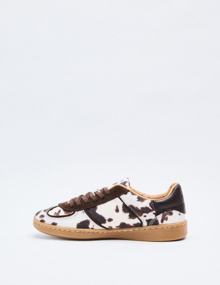 Zapato tipo deportiva en combinación de materiales. Suela en contraste. Parte trasera en efecto piel . Cierre mediante cordones. Altura de la suela: 2,5 cm