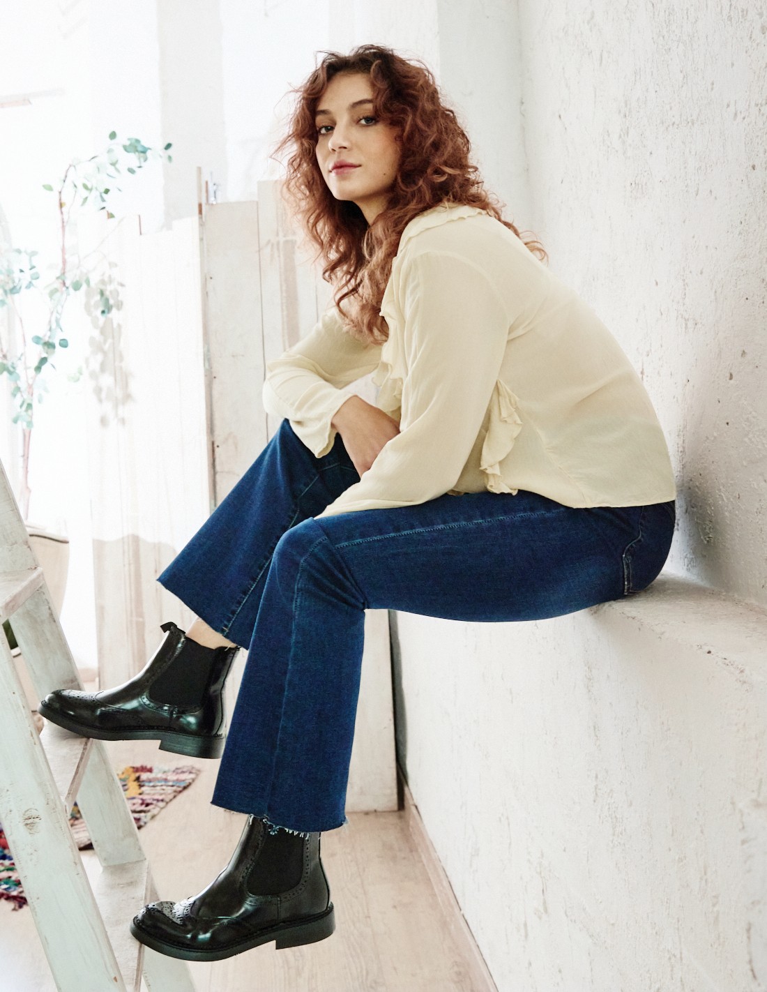 Zapato tipo botín chelsea efecto piel . Detalle de relieve delantera del botin con bandas elasticas en los laterales . Punta redondeada. Cierre mediante cremallera en los laterales.