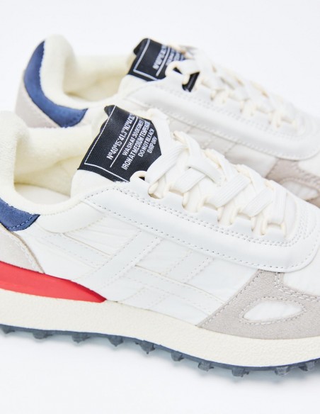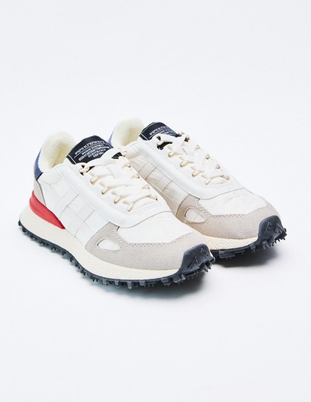 Zapatillas deportivas estilo running en combinación de materiales con detalles en efect serraje . Suela con plataforma dentada. Cierre mediante cordones. Altura de la suela: 3,5 cm.