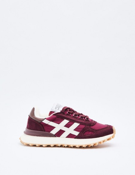 Zapatillas deportivas estilo running en combinación de materiales con detalles en efect serraje . Suela con plataforma dentada. Cierre mediante cordones. Altura de la suela: 3,5 cm.