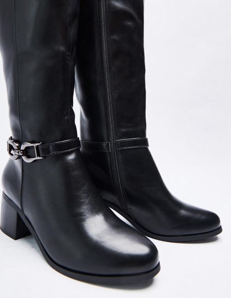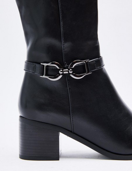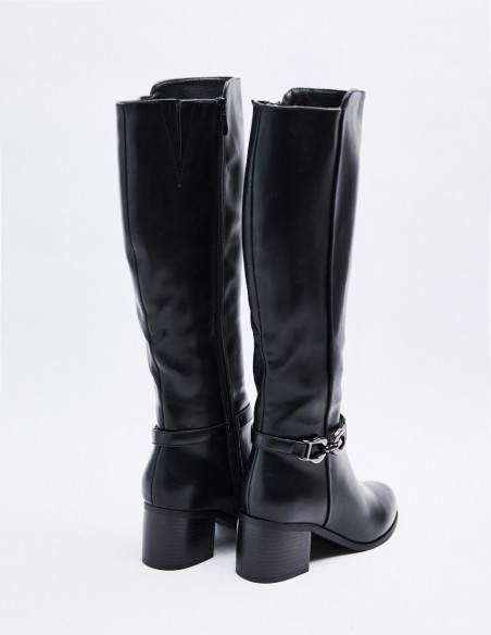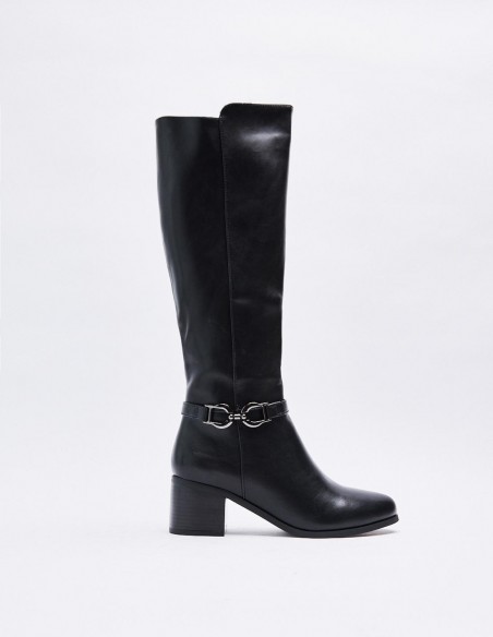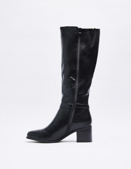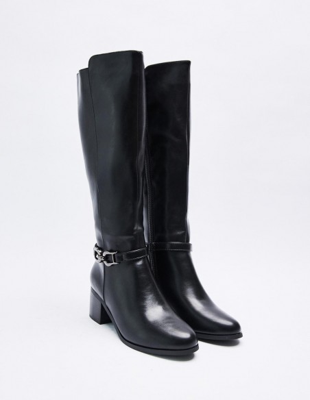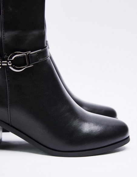 Zapato tipo bota estilo hípica. Detalle de tira con hebilla en los laterales. Caña alta. Calce mediante pull on. Tacón bajo ancho. Acabado en puntaredonda. Cirre mediante cremallera en los laterales Altura del tacón: 6 cm