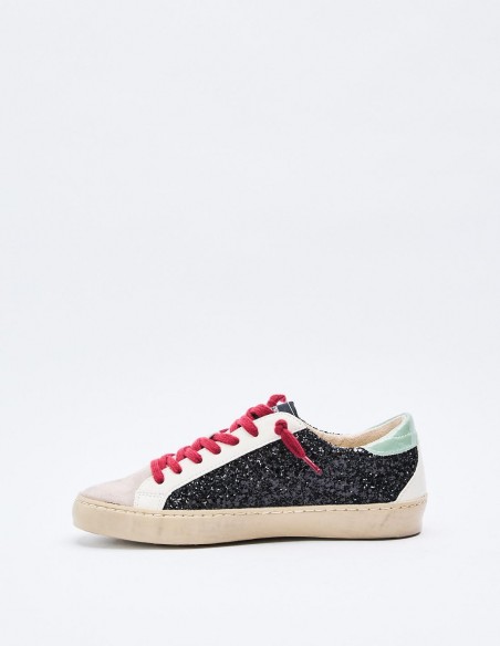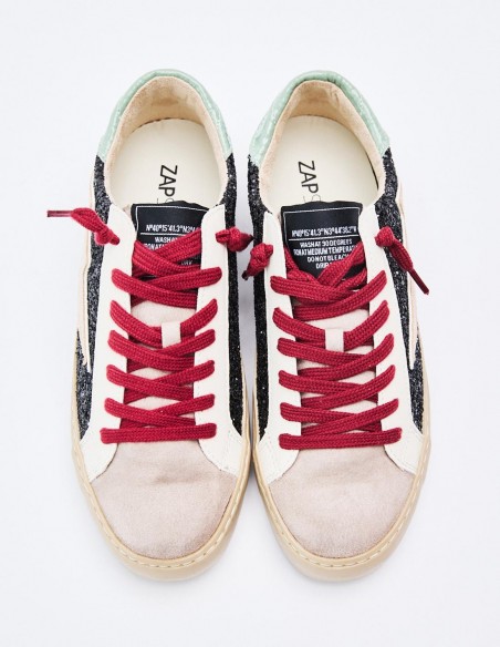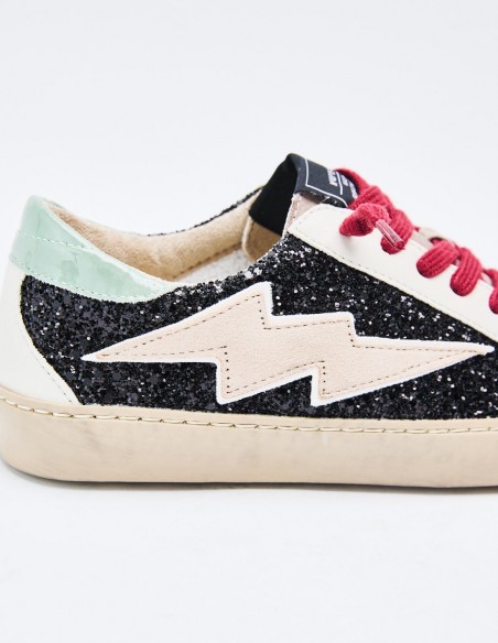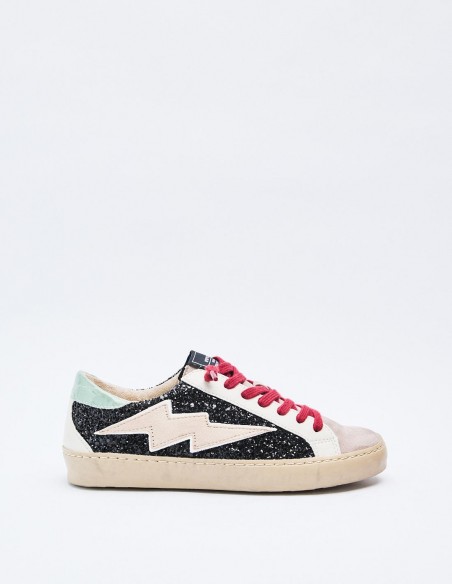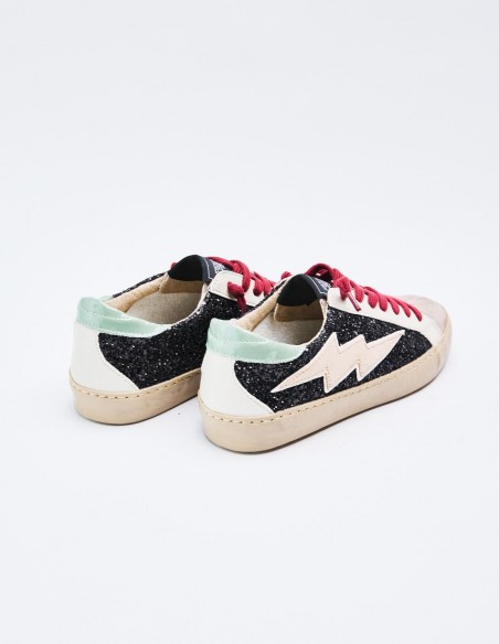 Zapatillas deportivas combinadas en tejido y color con destellos en purpurinas . Suela de goma. Cierre mediante cordones. Altura de la suela: 2 cm.