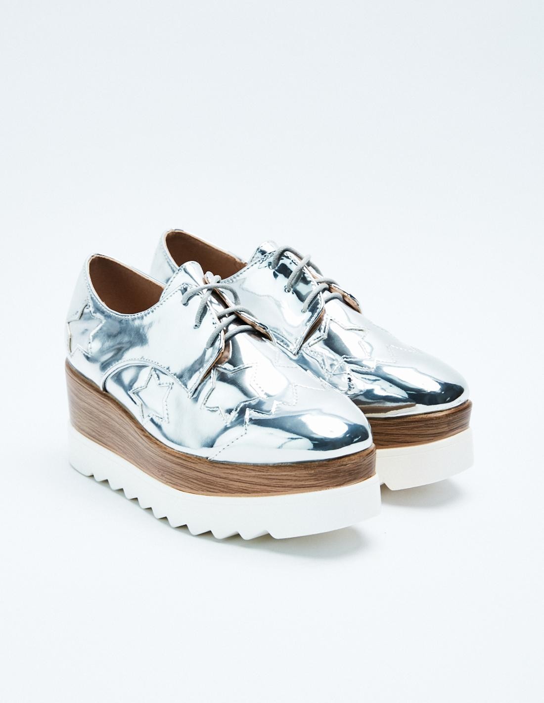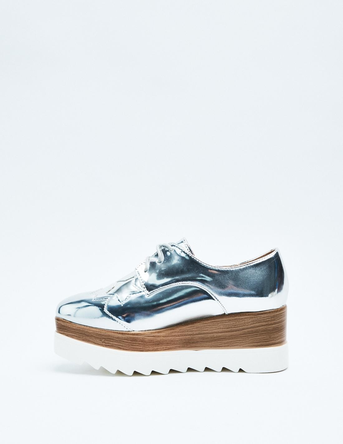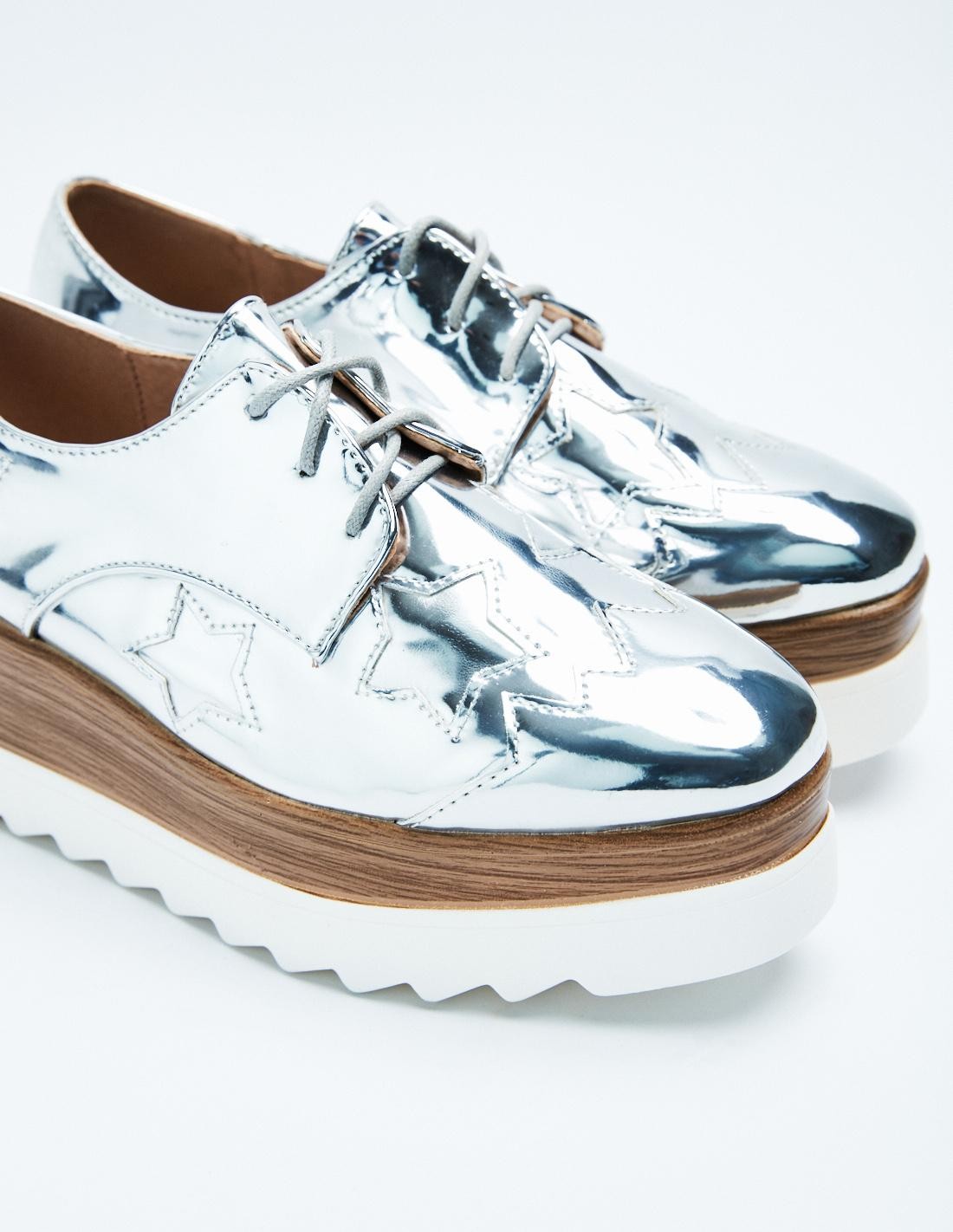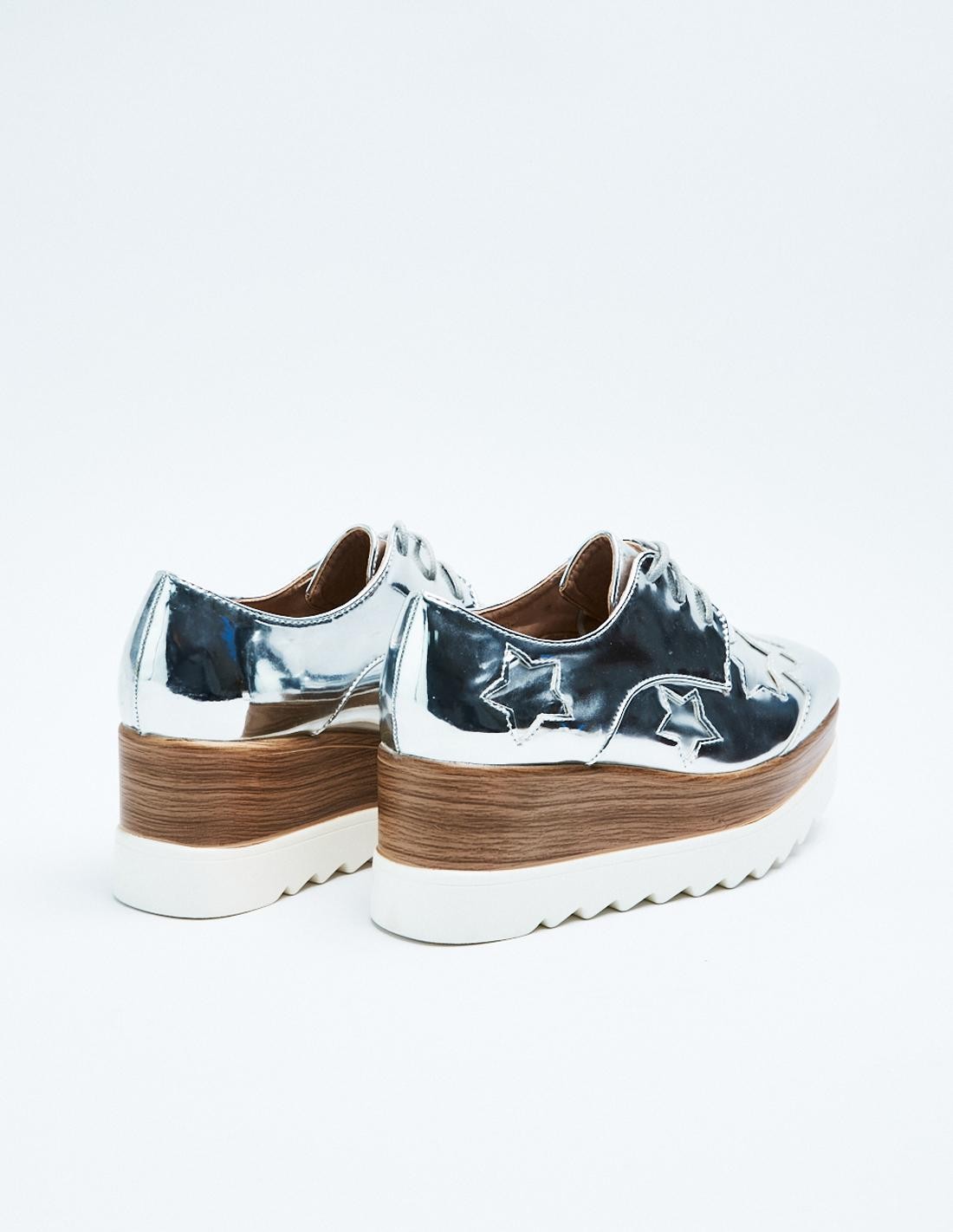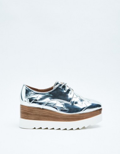 Zapato casual efecto charol con detalle en estrella. Suela de plataforma combinada. Cierre mediante cordones . Altura de tacón : 8 CM