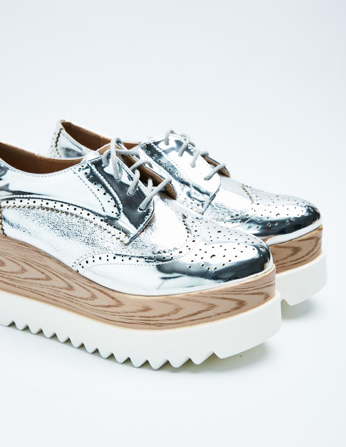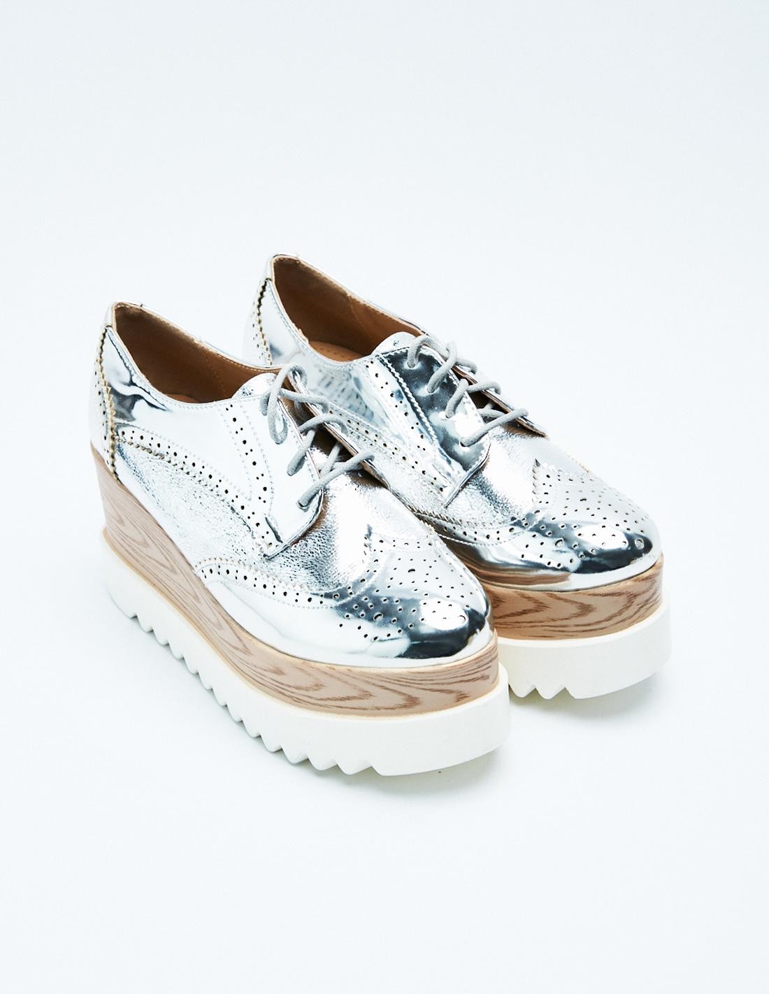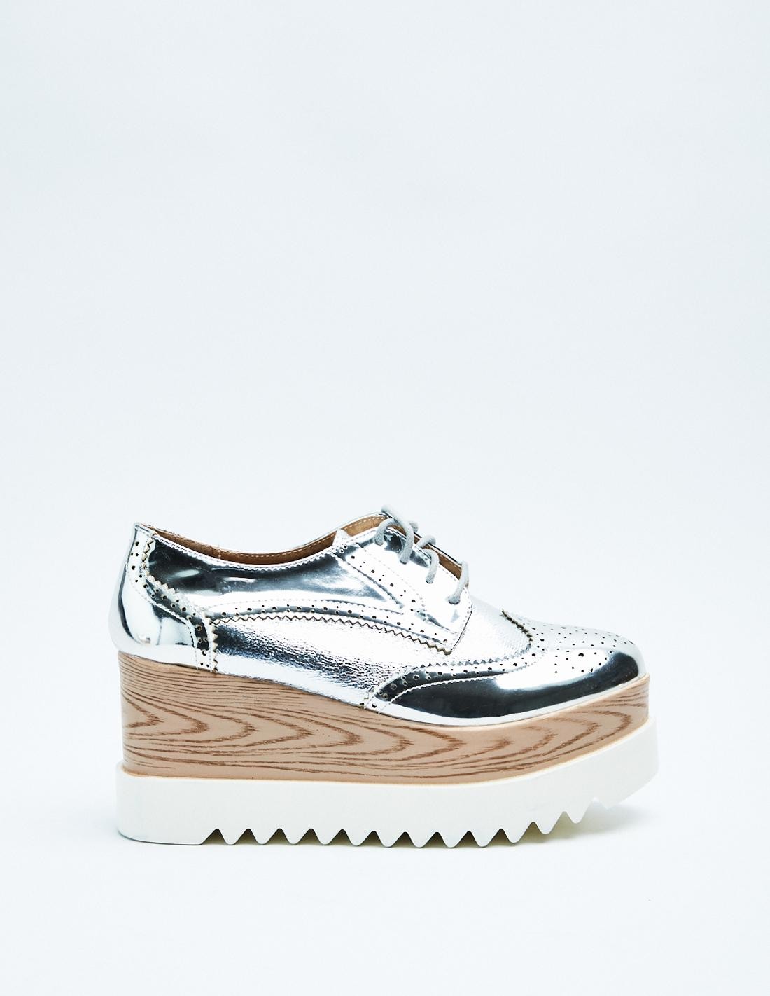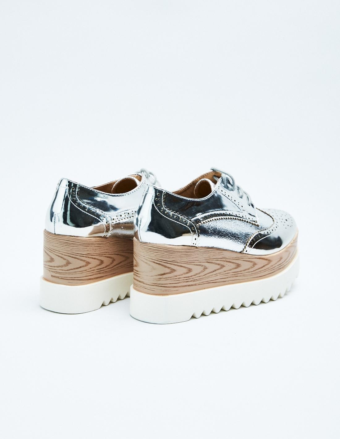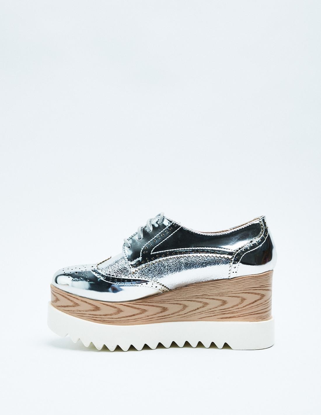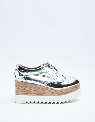 Zapato casual efecto charol con combinacion de material . Suela de plataforma combinada. Cierre mediante cordones . Altura de tacón : 8 CM