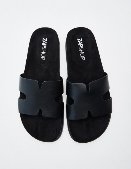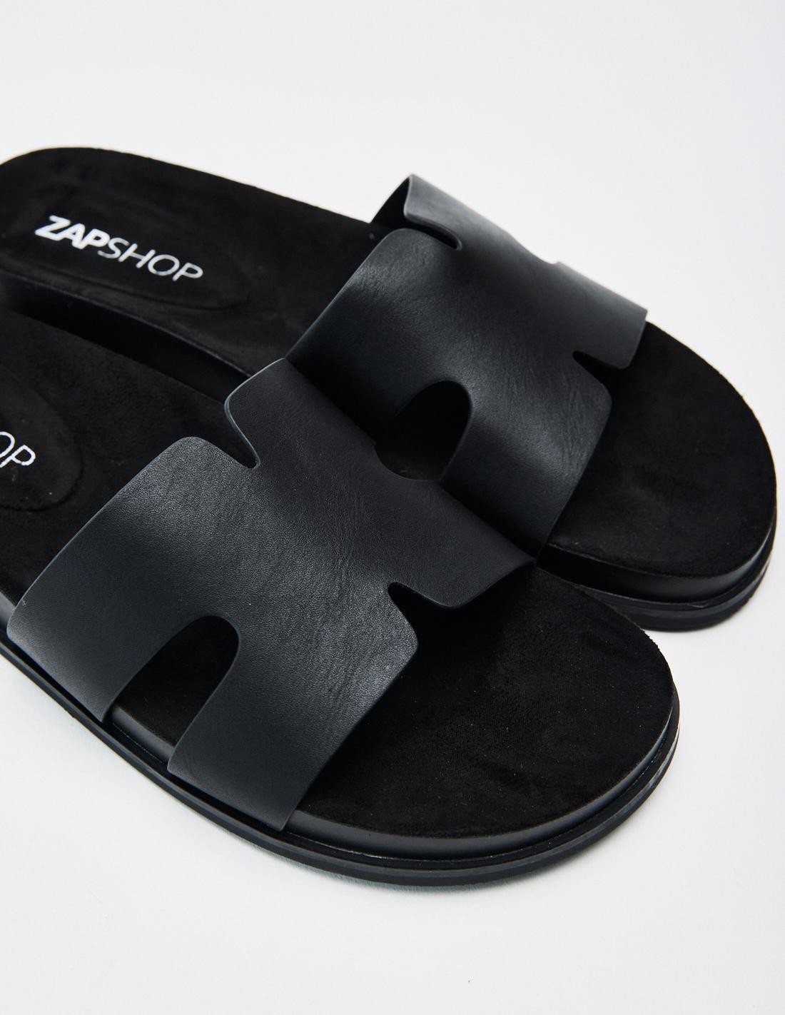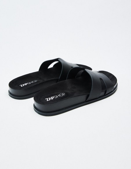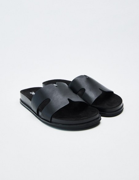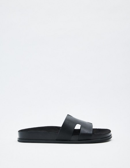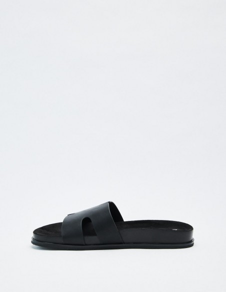 Zapato tipo sandalia plana en efecto piel. Tira gruesa en el empeine. Acabado en punta redonda. Altura de la suela: 1 cm
