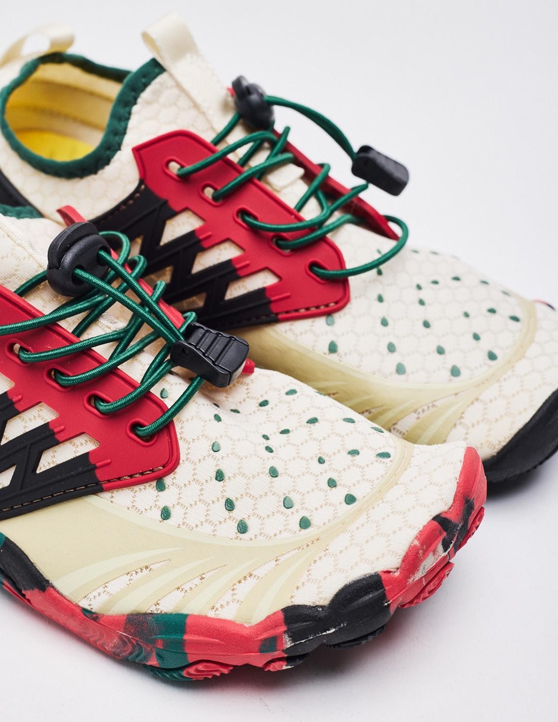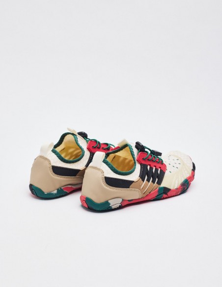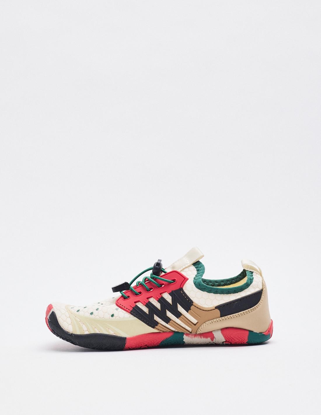 Zapato tipo zapatillas en combinacion de colores. Suela plana (cero drop) y flexible que fortalece la musculatura del pie. Cierre mediante cordones elásticos.