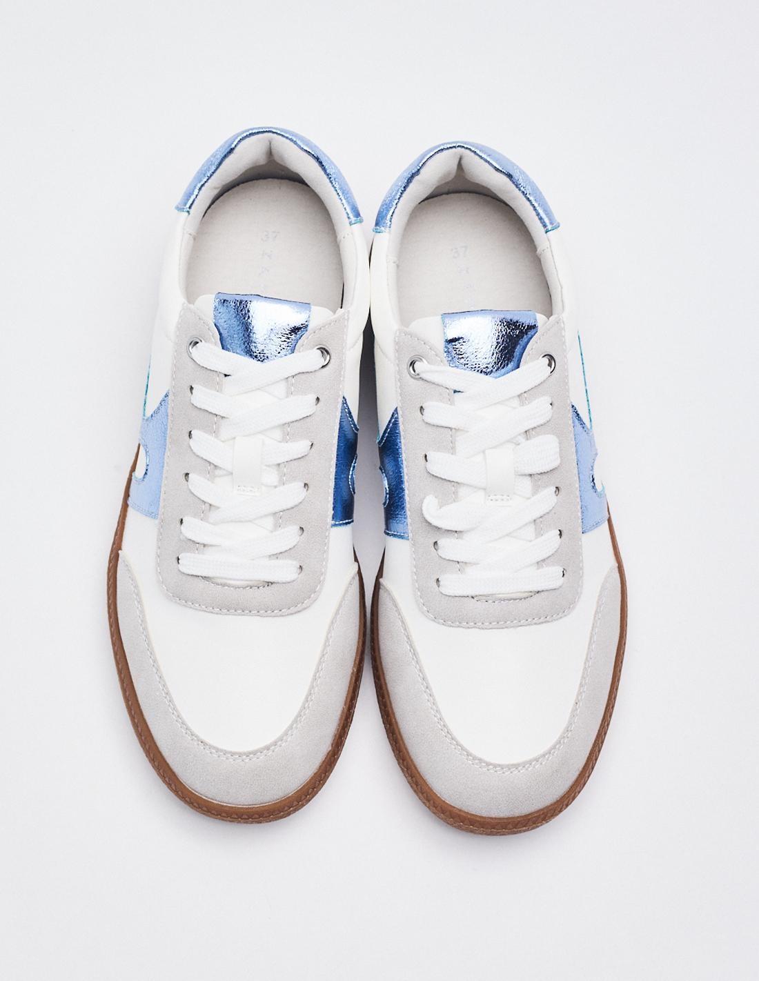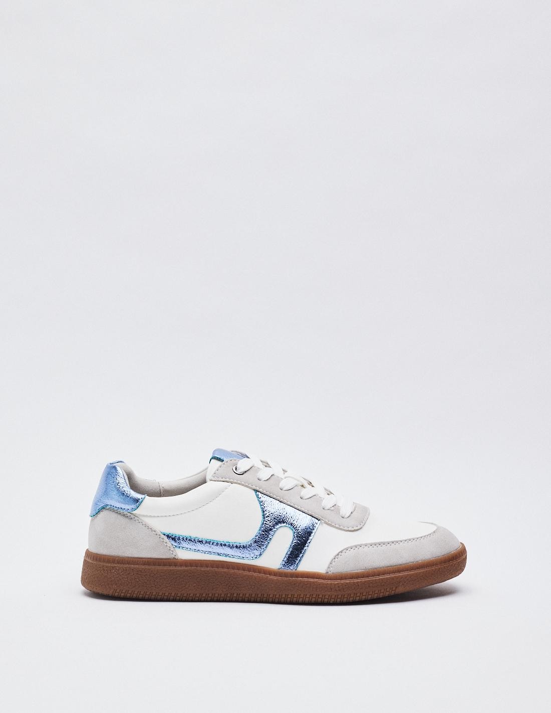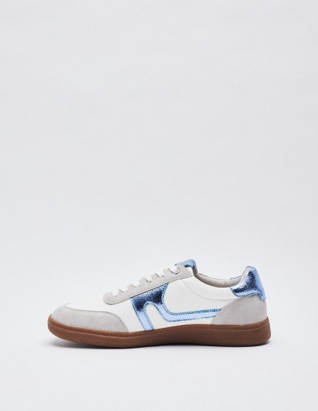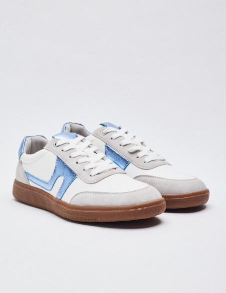 Zapato tipo deportivas. Piezas en combinación de colores efecto metalizado . Suela en contraste. Cierre mediante cordones combinados. Altura de la suela: 2,5 cm