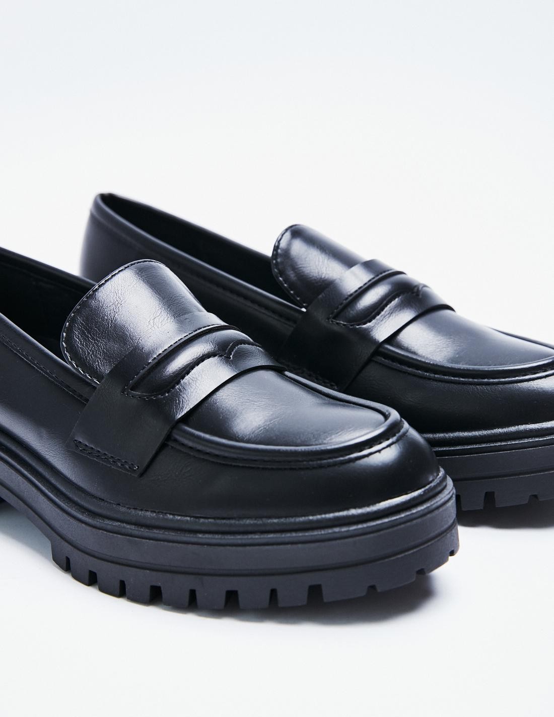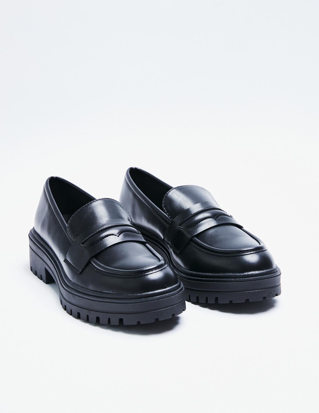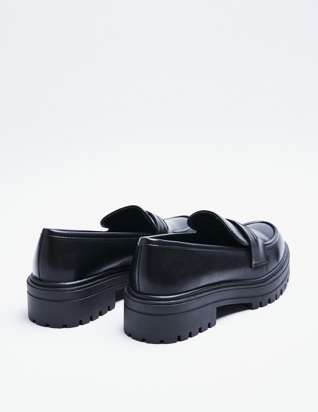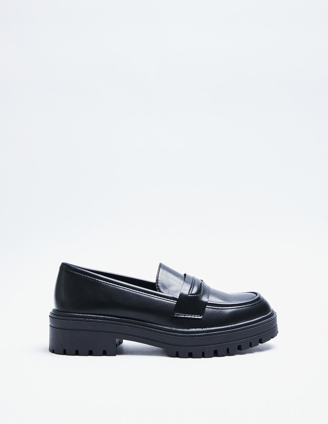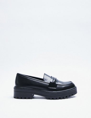 Zapato plano tipo mocasín efecto piel . Suela dentada .Acabado en punta redonda. Altura de la suela: 2 cm.