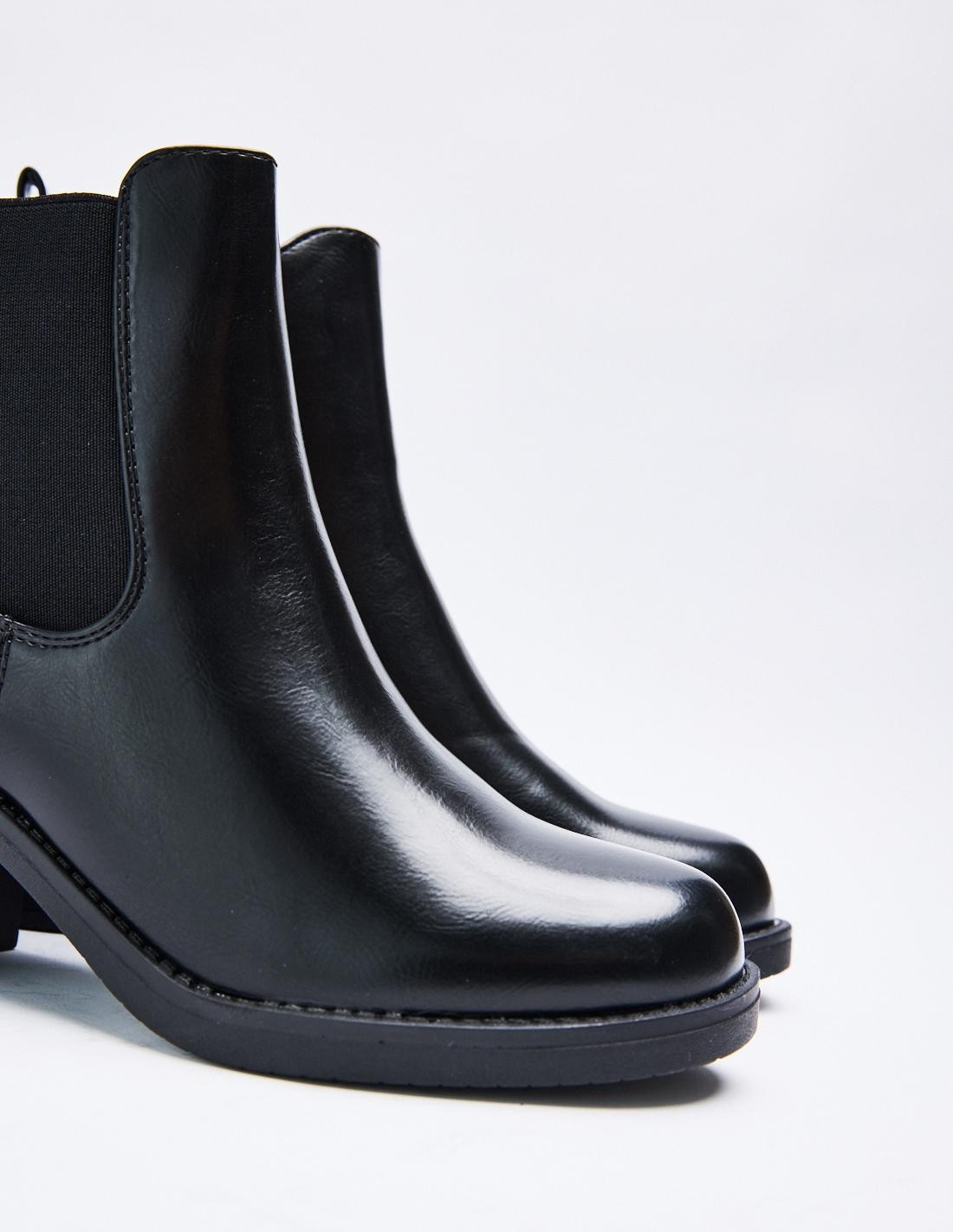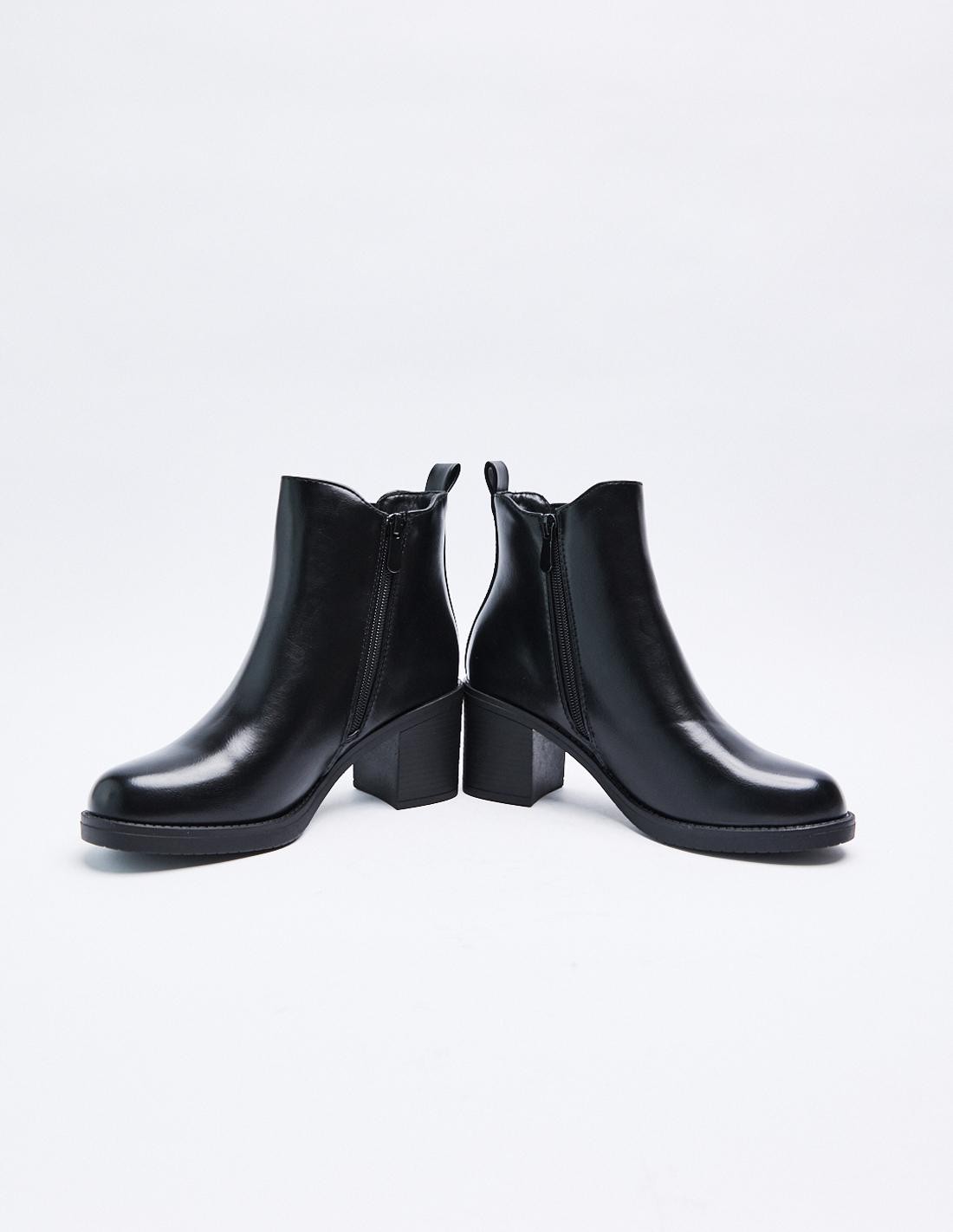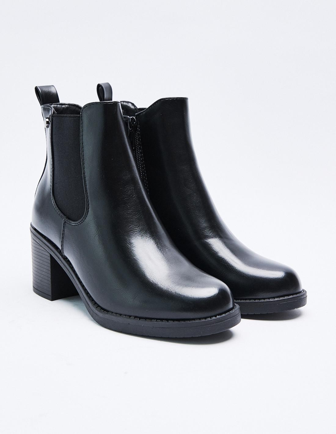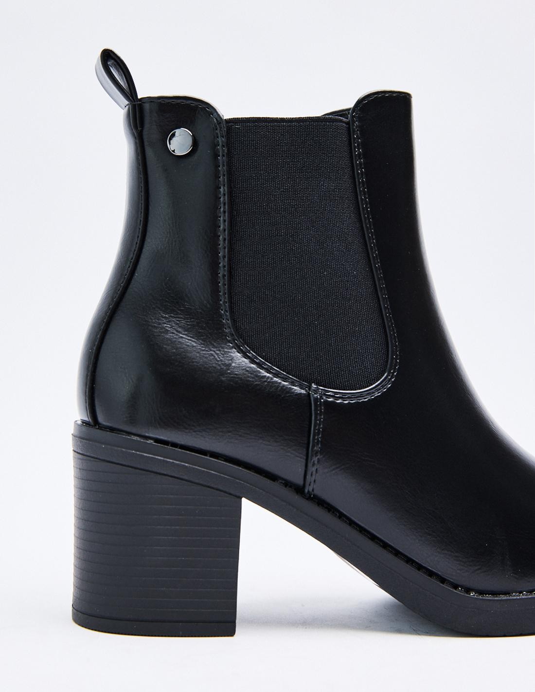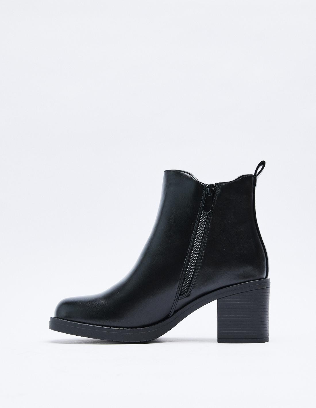Zapato tipo botín efecto piel track .. Caña ajustada con paneles elásticos en los laterales. Punta redondeada. Cierre mediante cremallera en los laterales. Altura de tacón: 6 cm