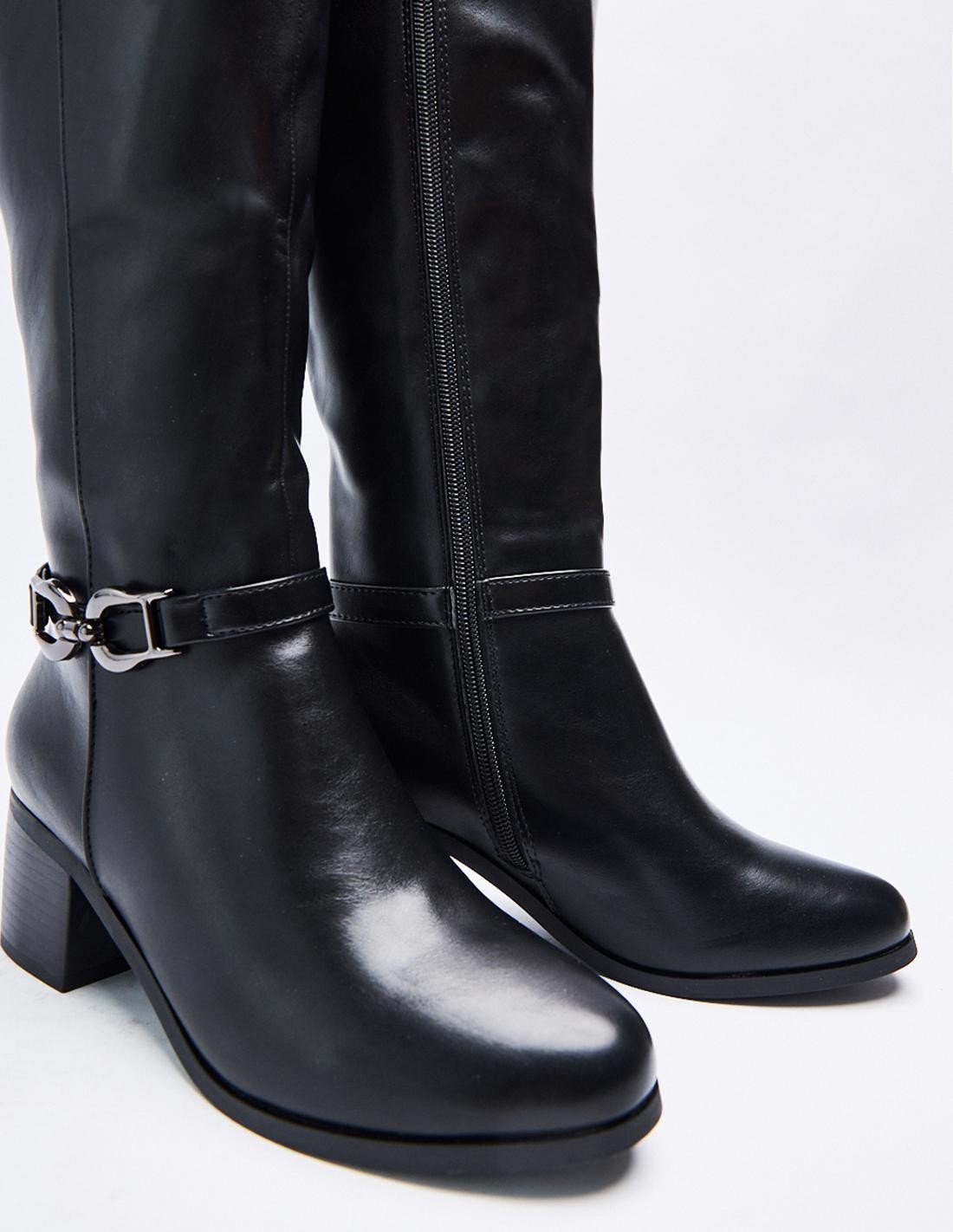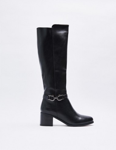Zapato tipo bota estilo hípica. Detalle de tira con hebilla en los laterales. Caña alta. Calce mediante pull on. Tacón bajo ancho. Acabado en puntaredonda. Cirre mediante cremallera en los laterales Altura del tacón: 6 cm