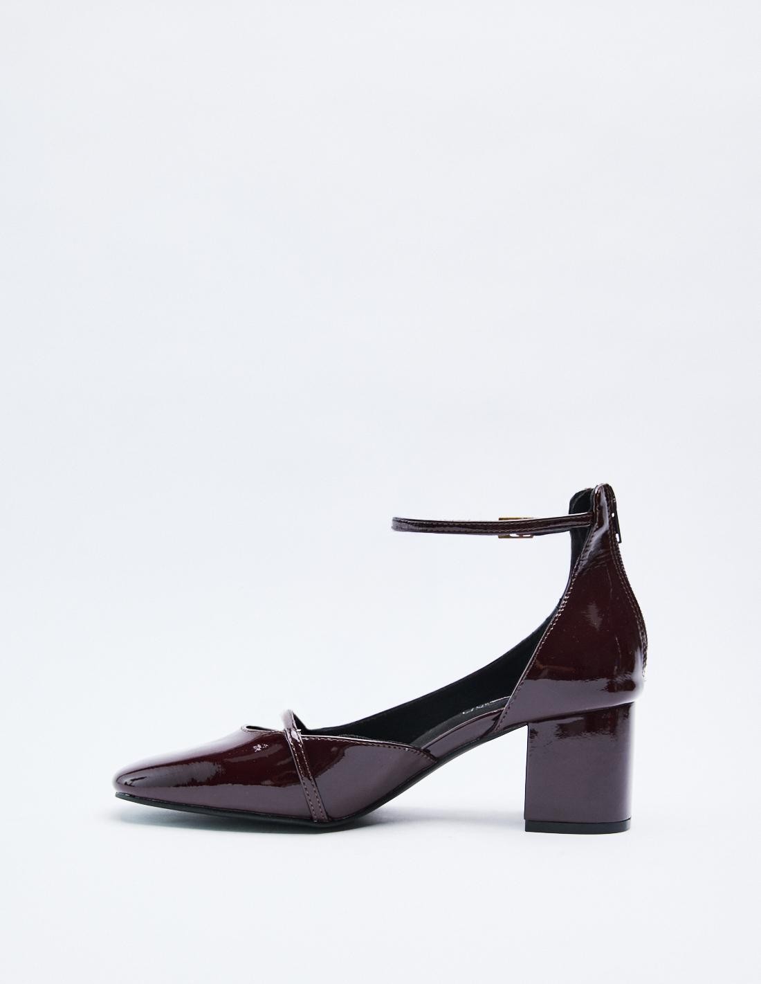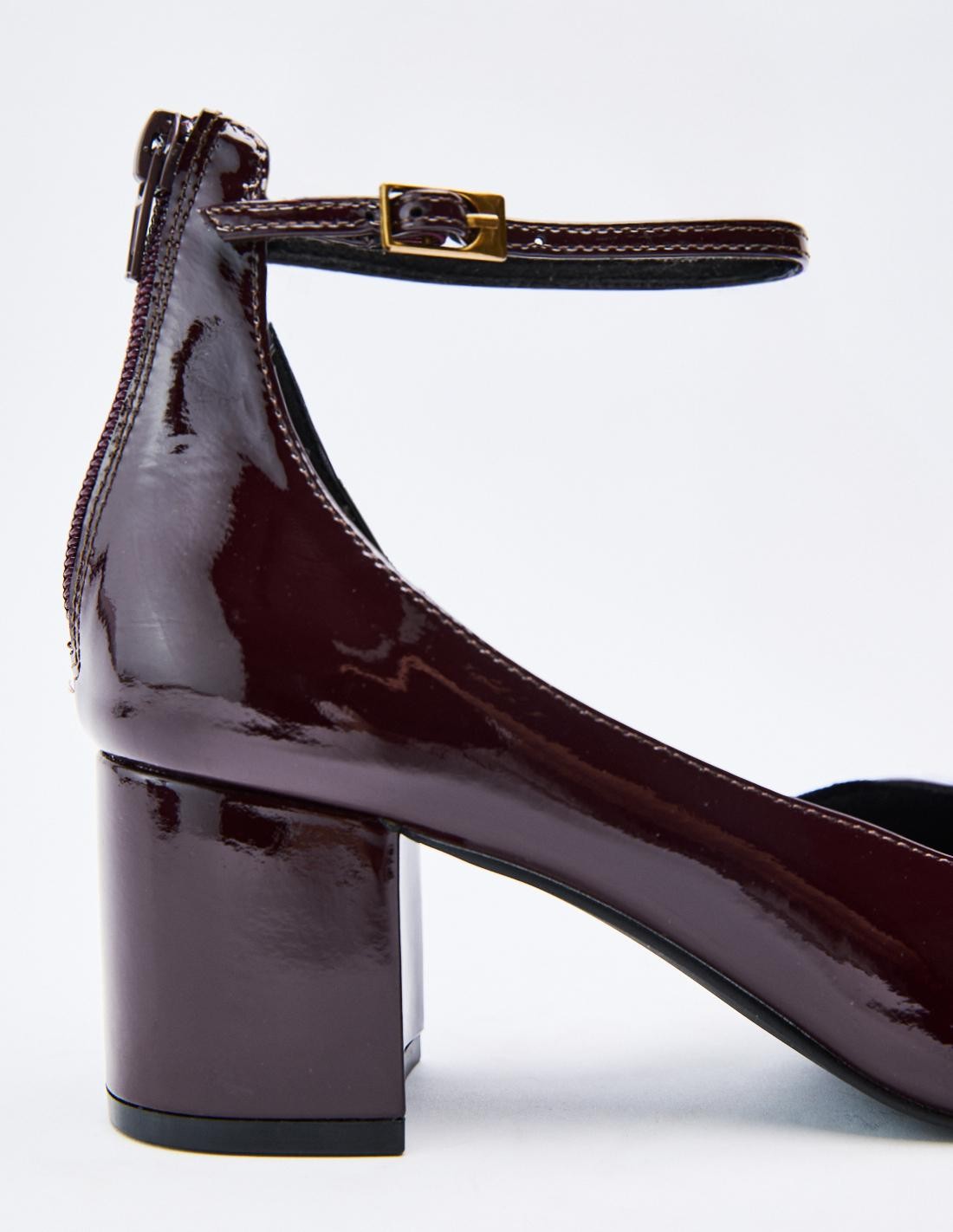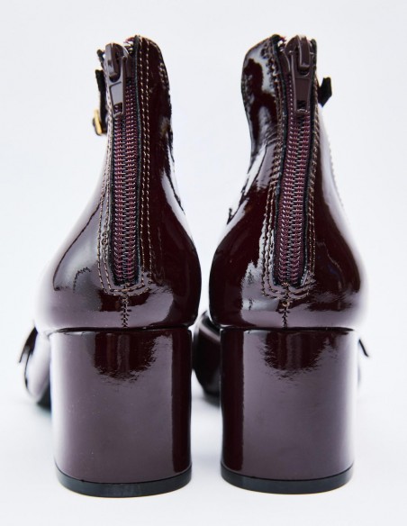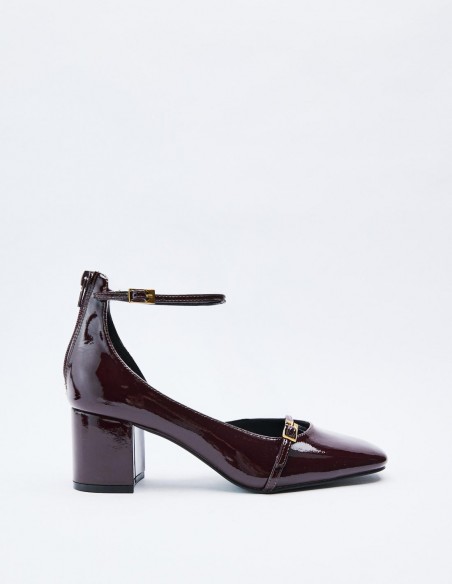 Zapato tipo mercedita con tacón alto y ancho. Cierre mediante pulsera con hebilla. Altura del tacón: 5 cm.