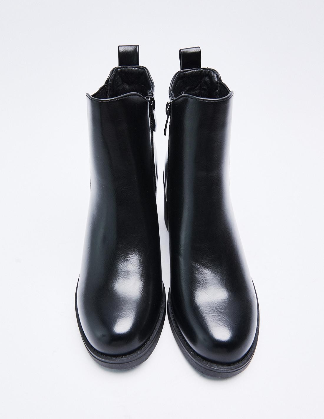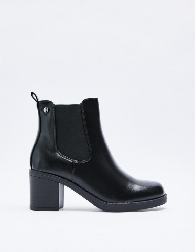 Zapato tipo botín efecto piel track .. Caña ajustada con paneles elásticos en los laterales. Punta redondeada. Cierre mediante cremallera en los laterales. Altura de tacón: 6 cm