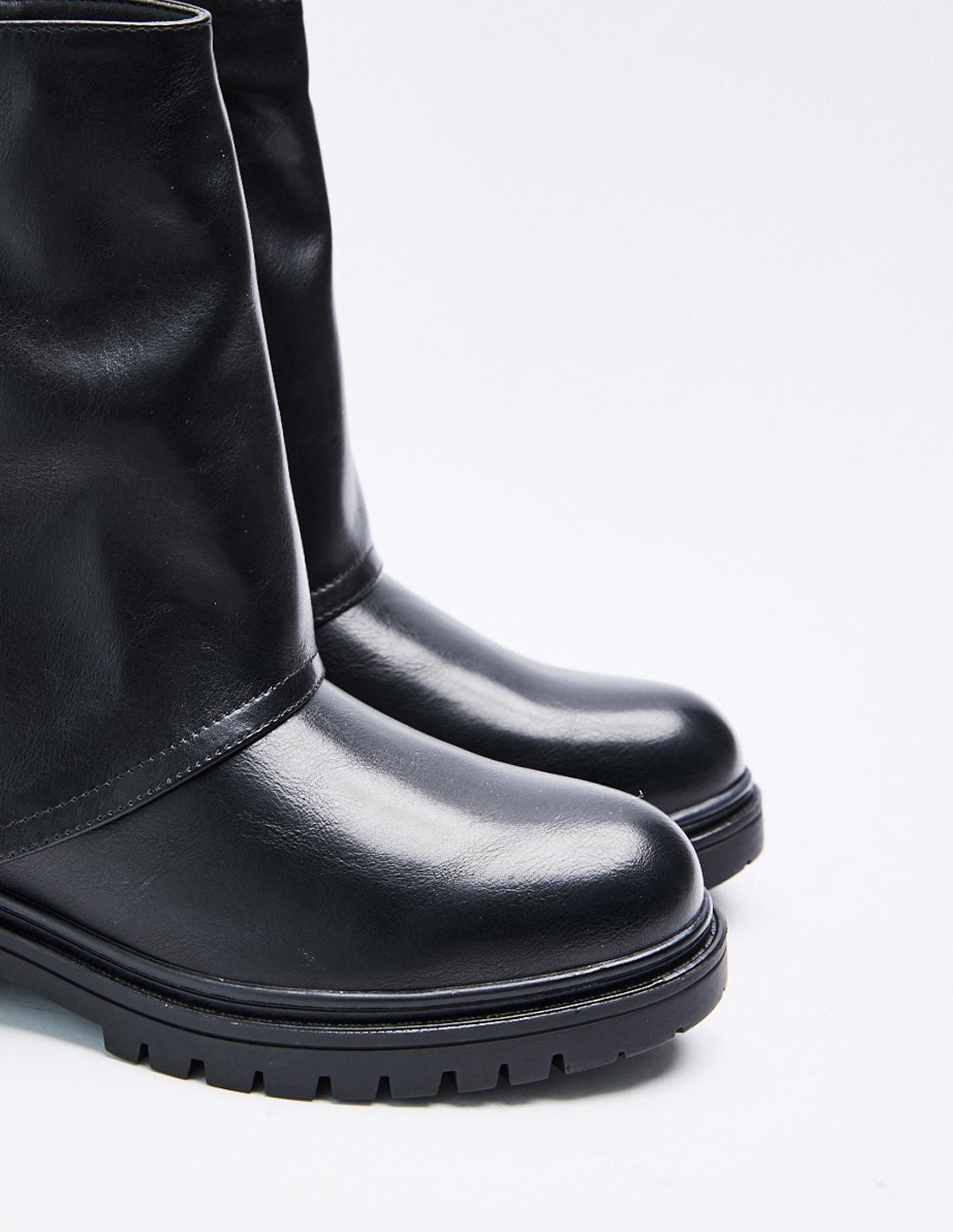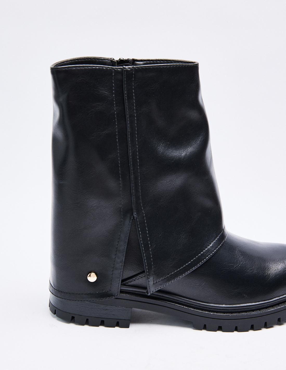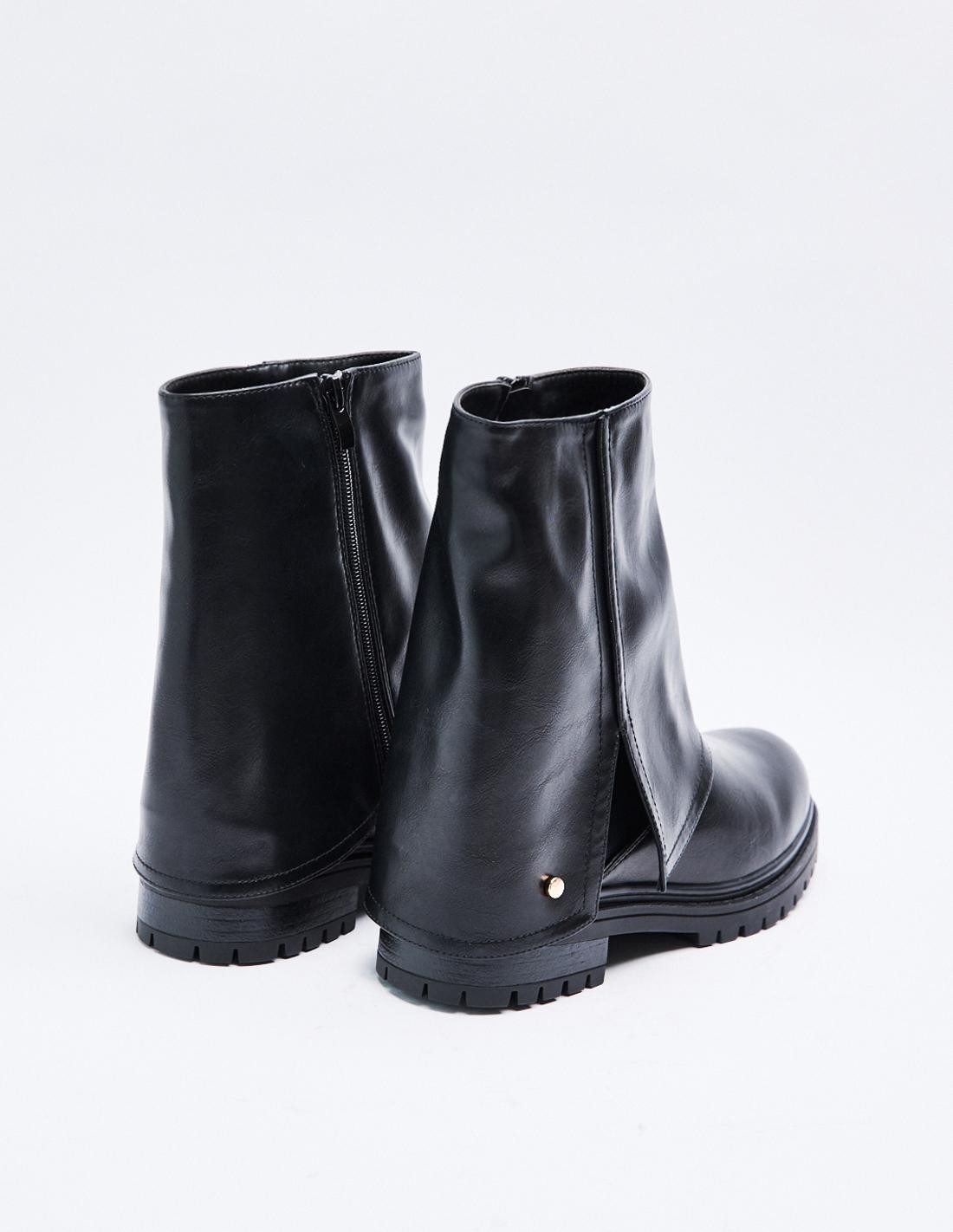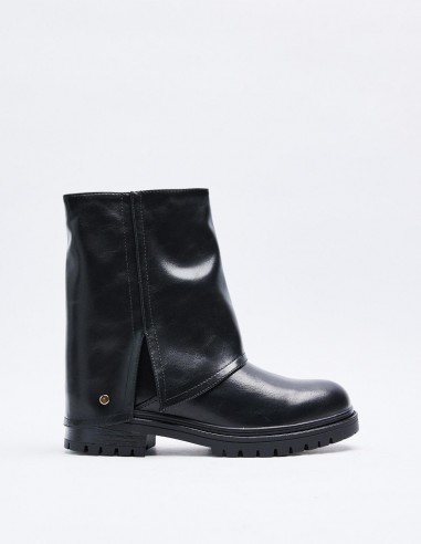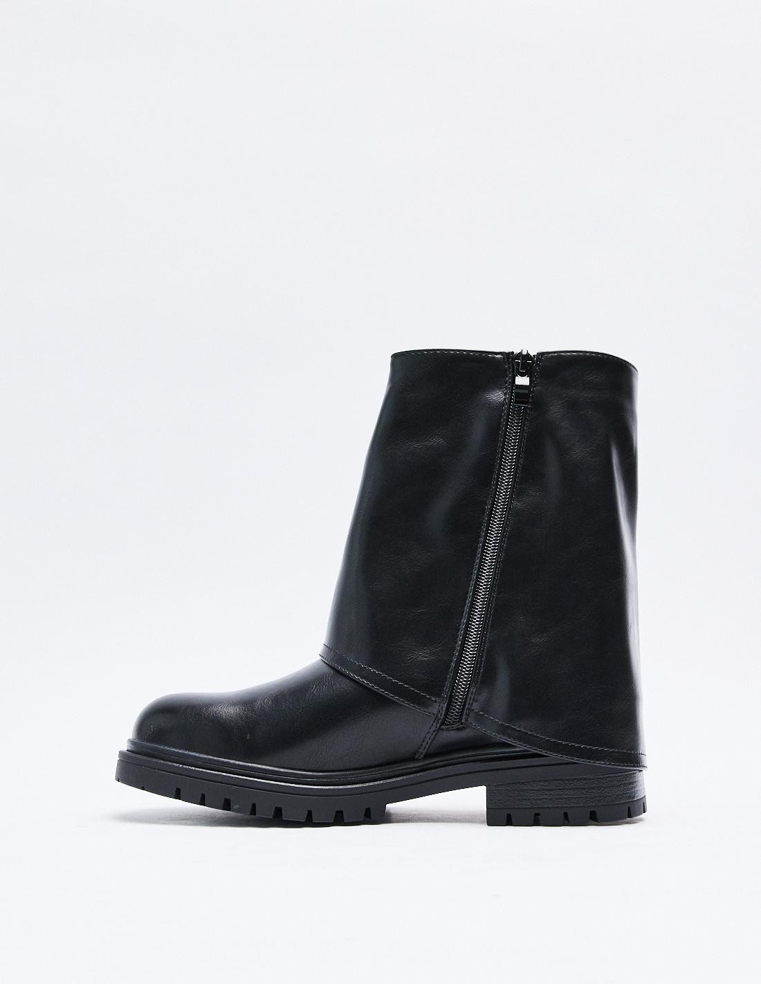Zapato tipo botín en efecto piel . Caña media. Calce fácil mediante pull onCierre mediante cremallera en los laterales . Acabado en punta redonda.
