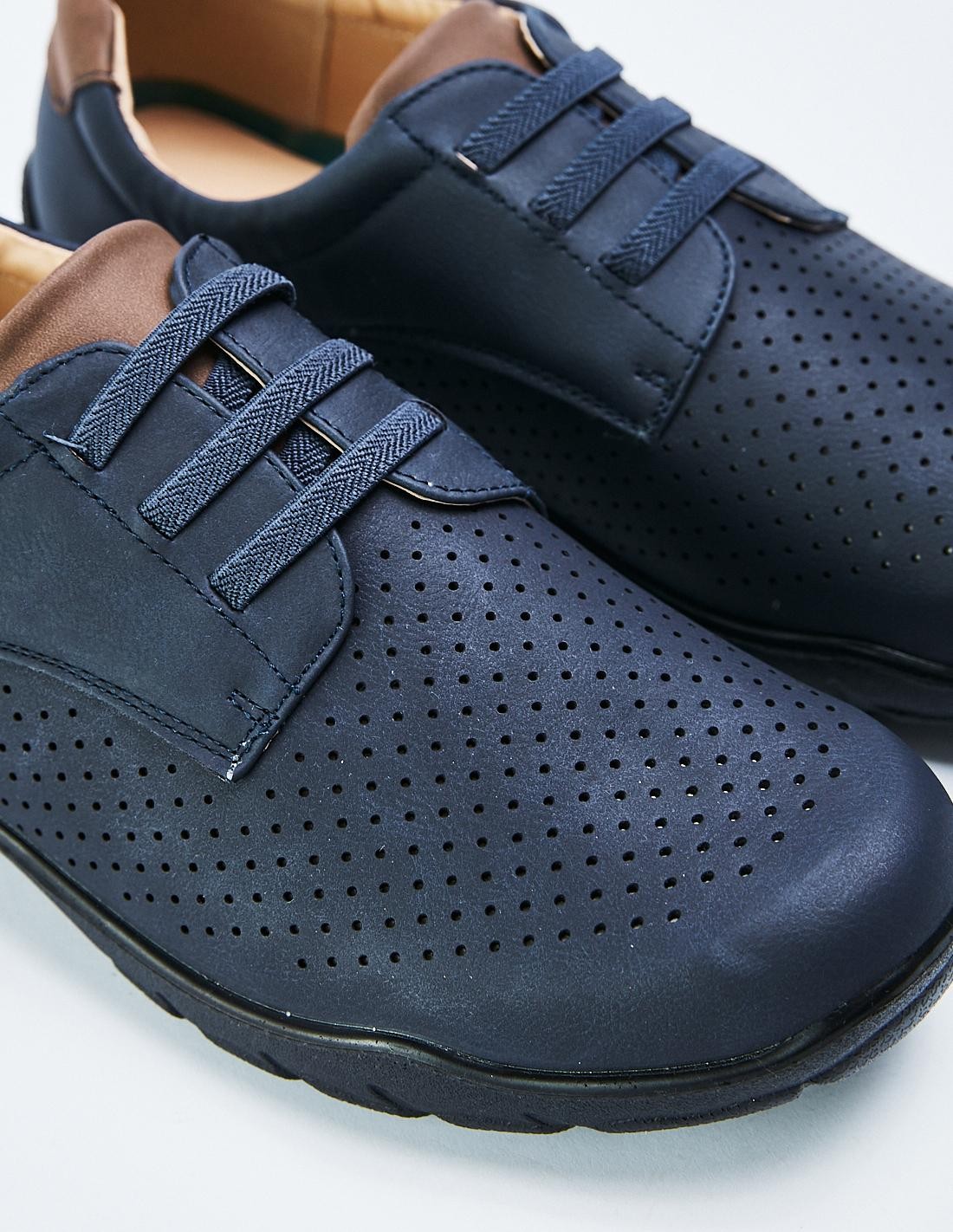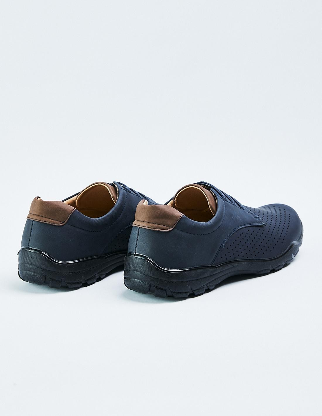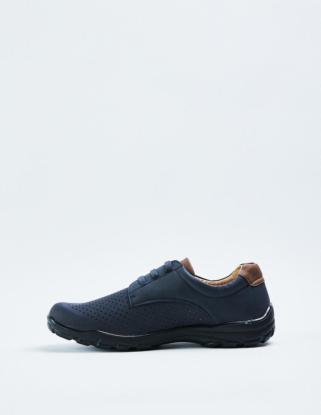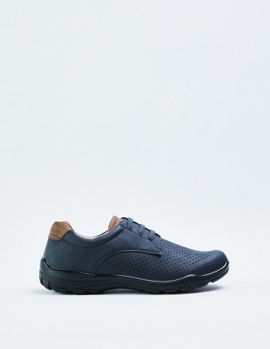Zapato fabricado en efecto piel. Cordonera con tres pasados tipo elastico .Piso con volumen y suela ligeramente dentada.