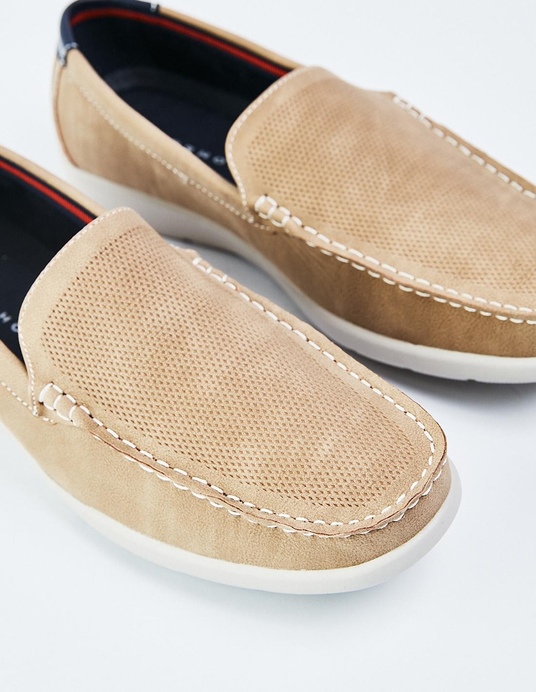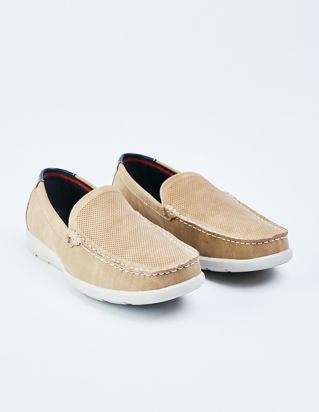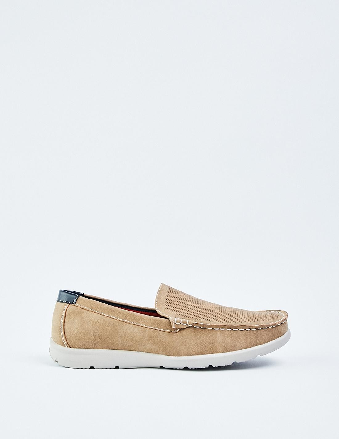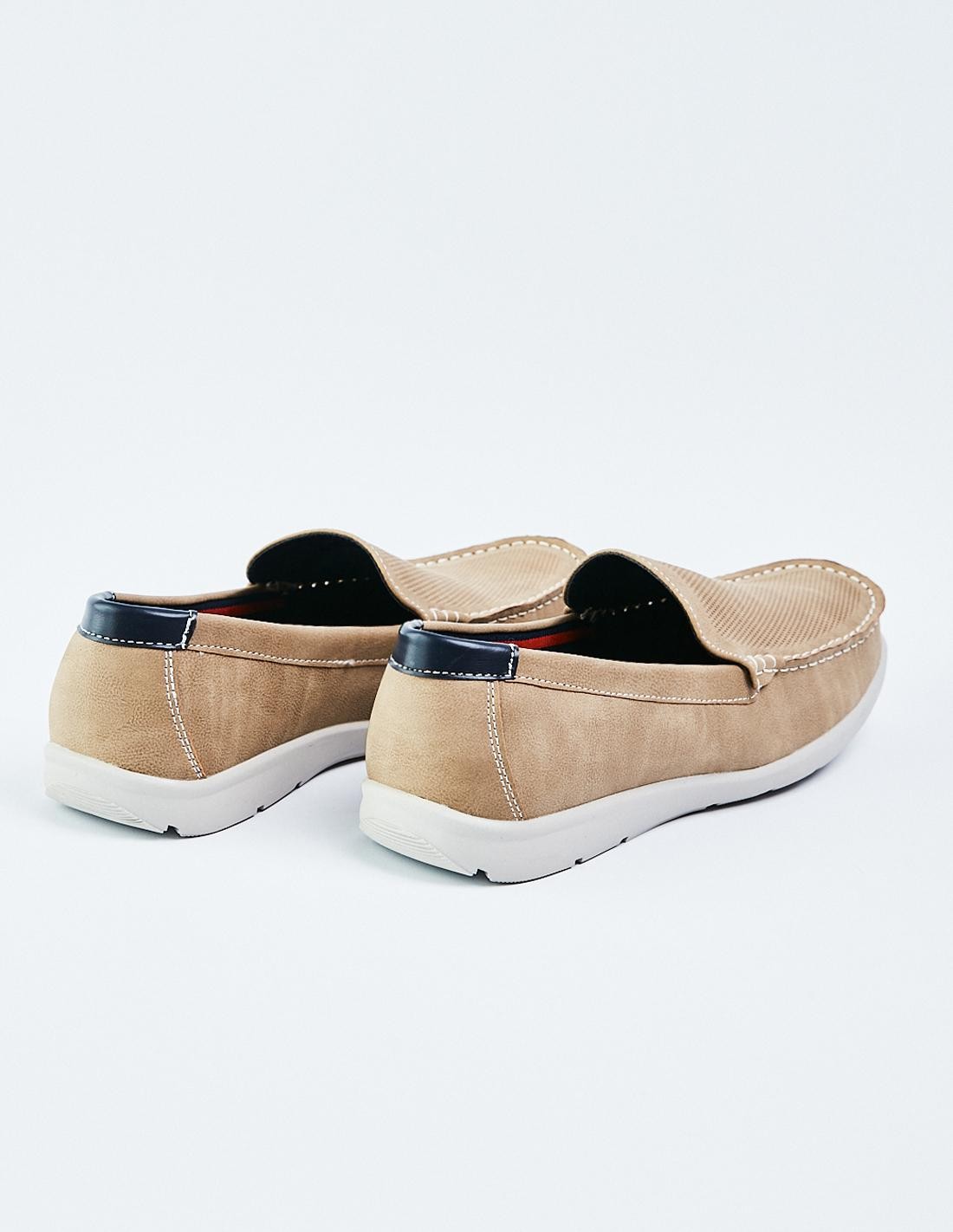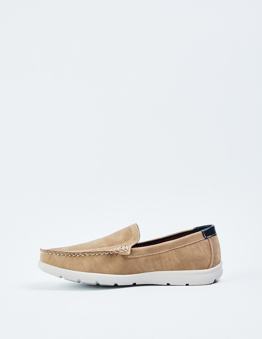 Zapato tipo mocasín. Fabricado en efecto piel . Corte liso con detalle de bordón. Horma redonda. Piso con volumen.