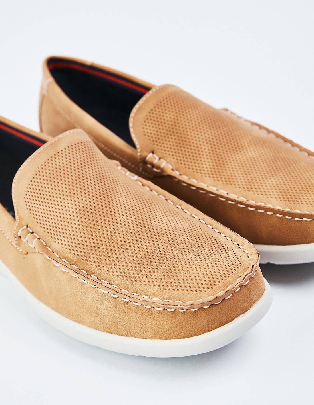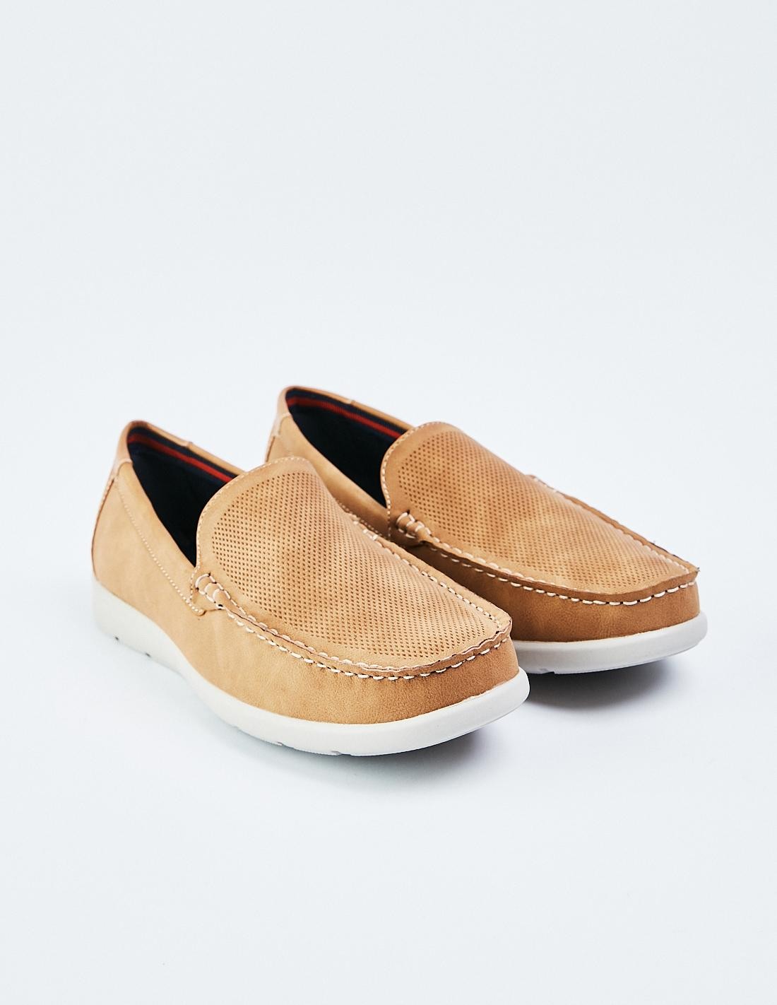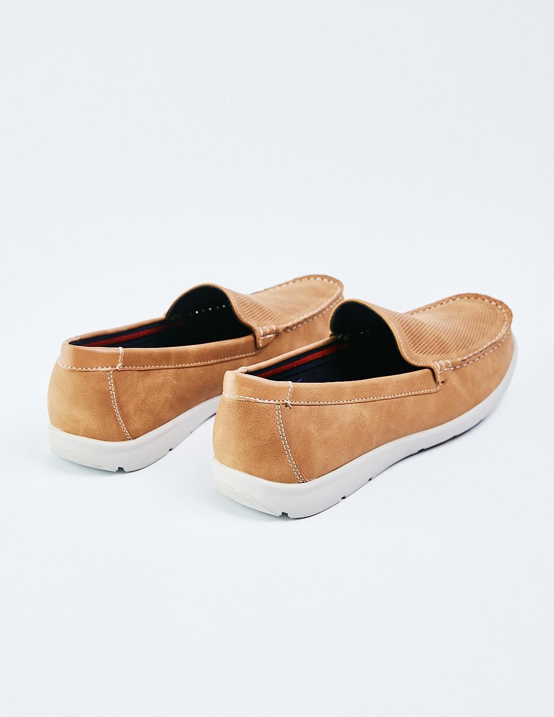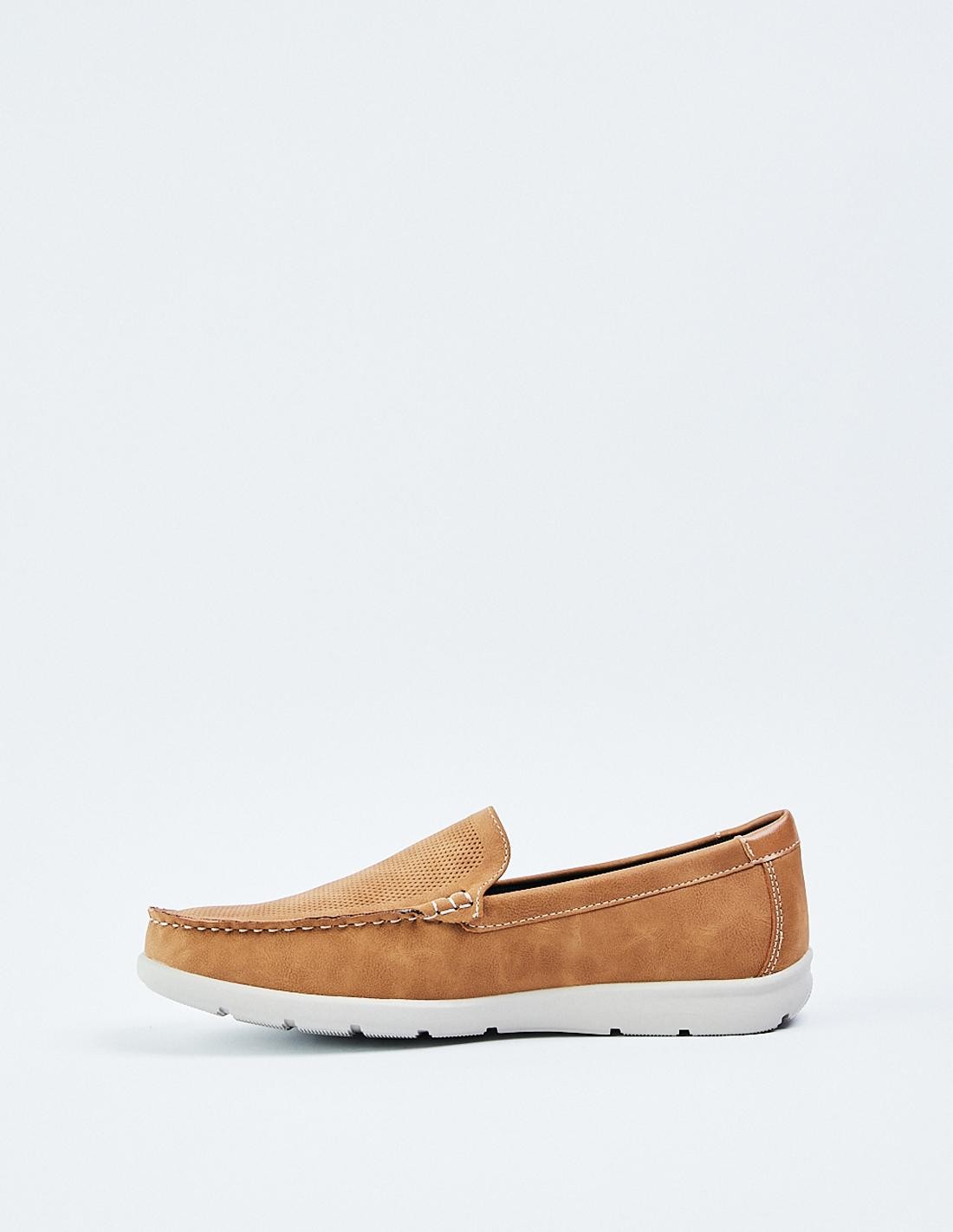Zapato tipo mocasín. Fabricado en efecto piel . Corte liso con detalle de bordón. Horma redonda. Piso con volumen.