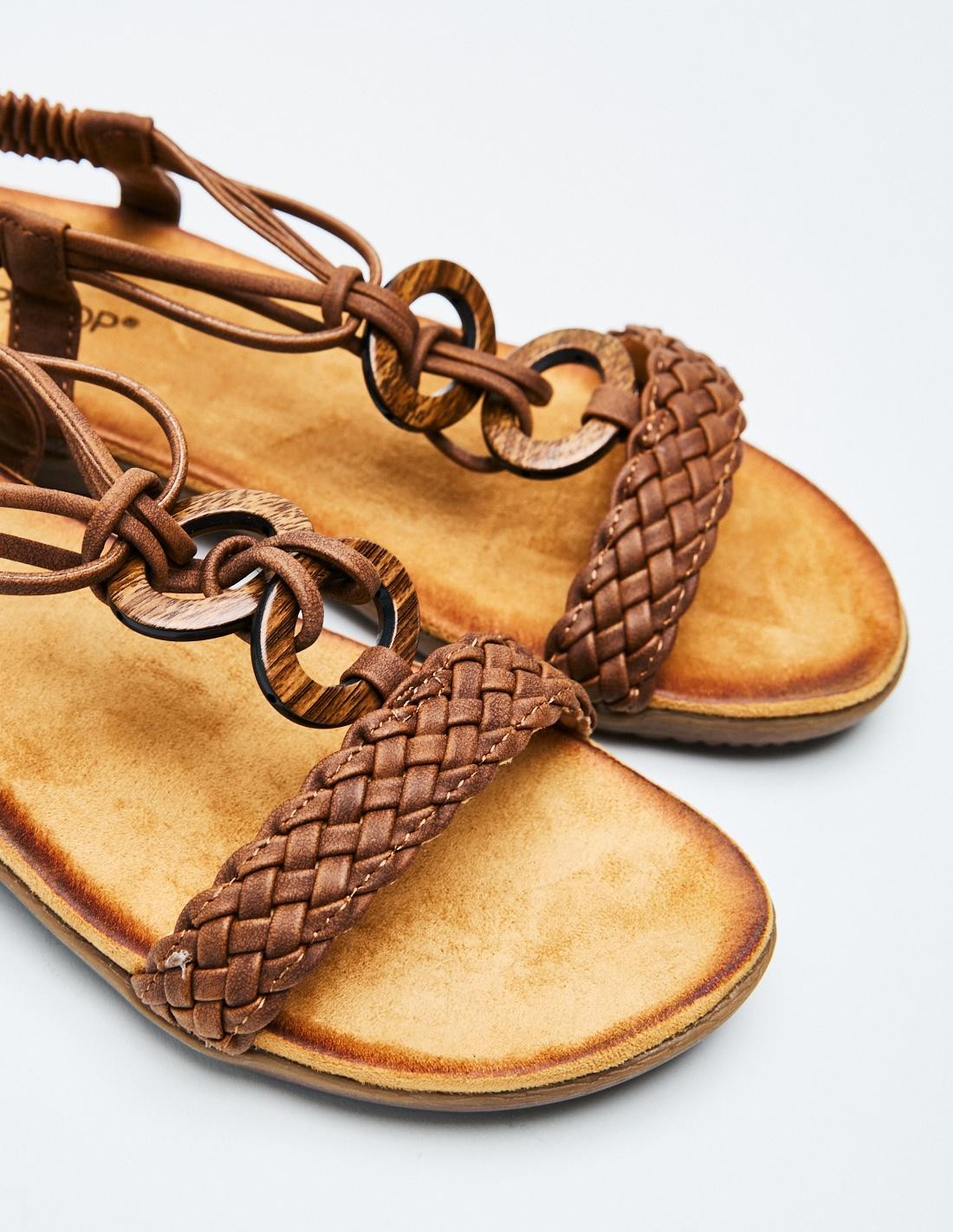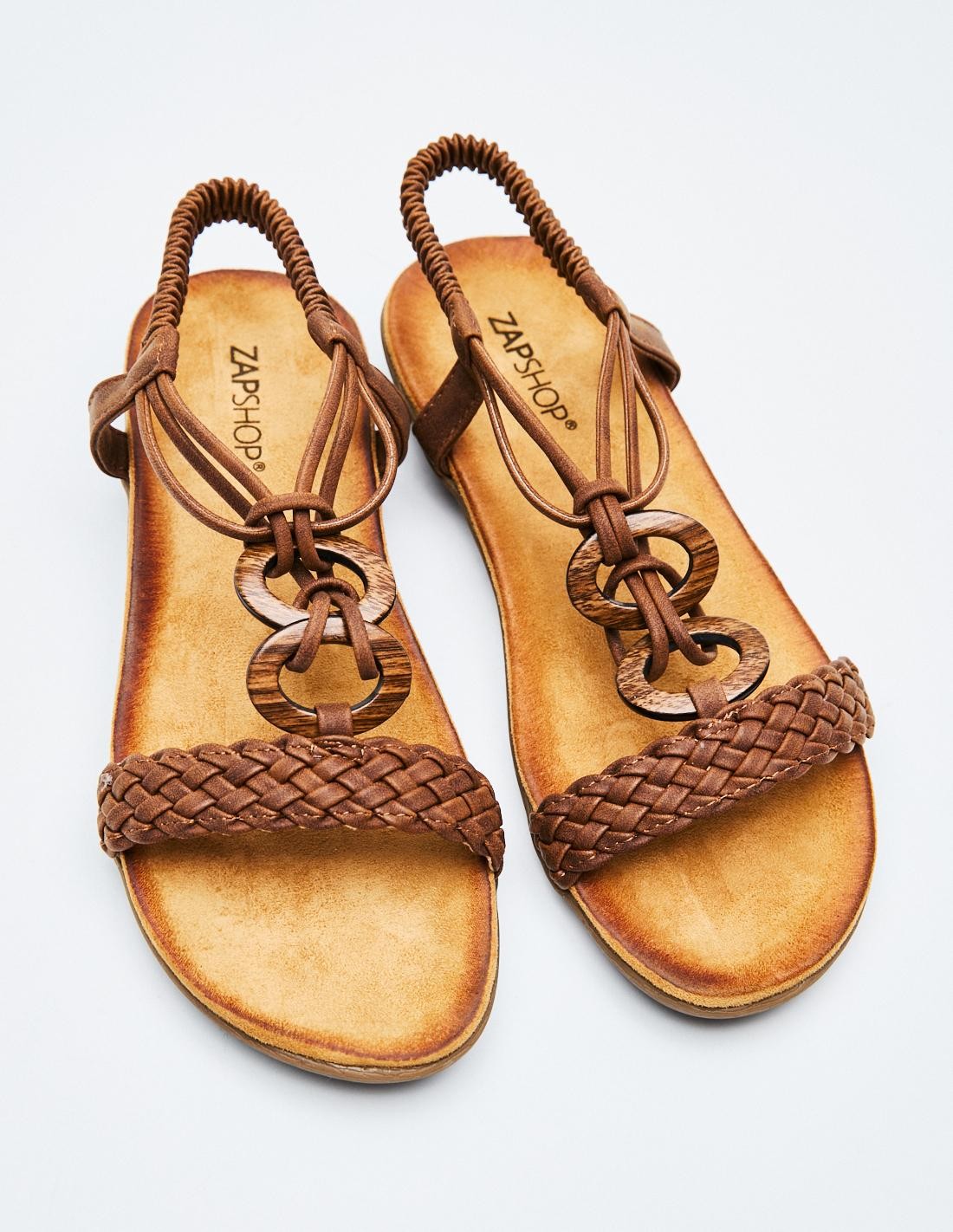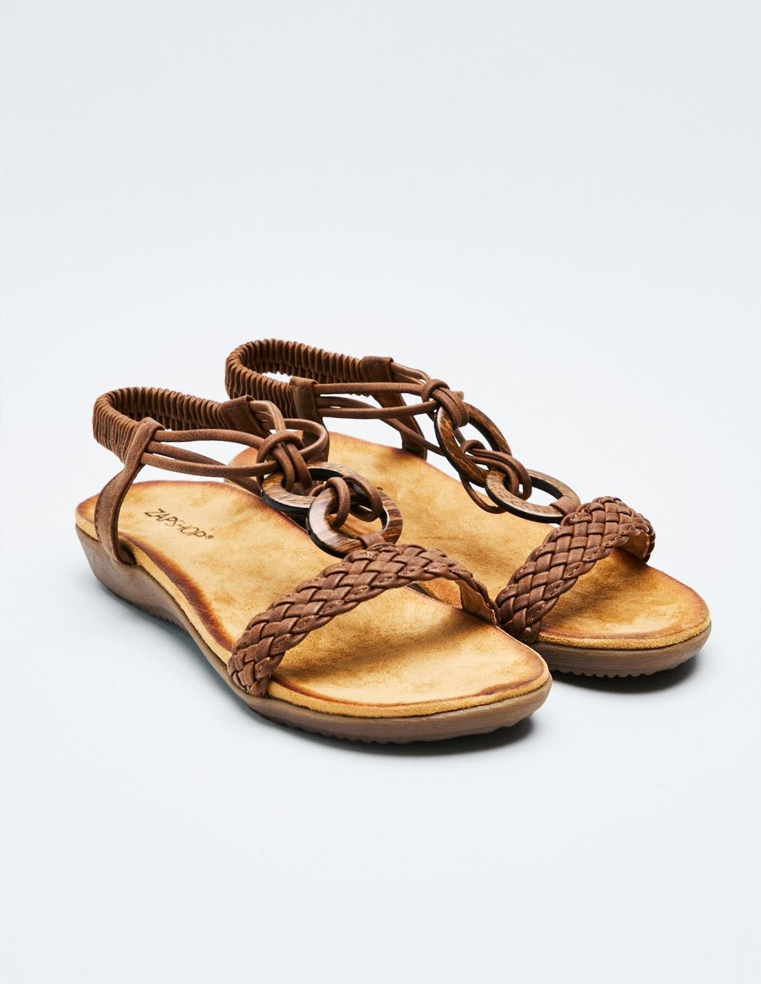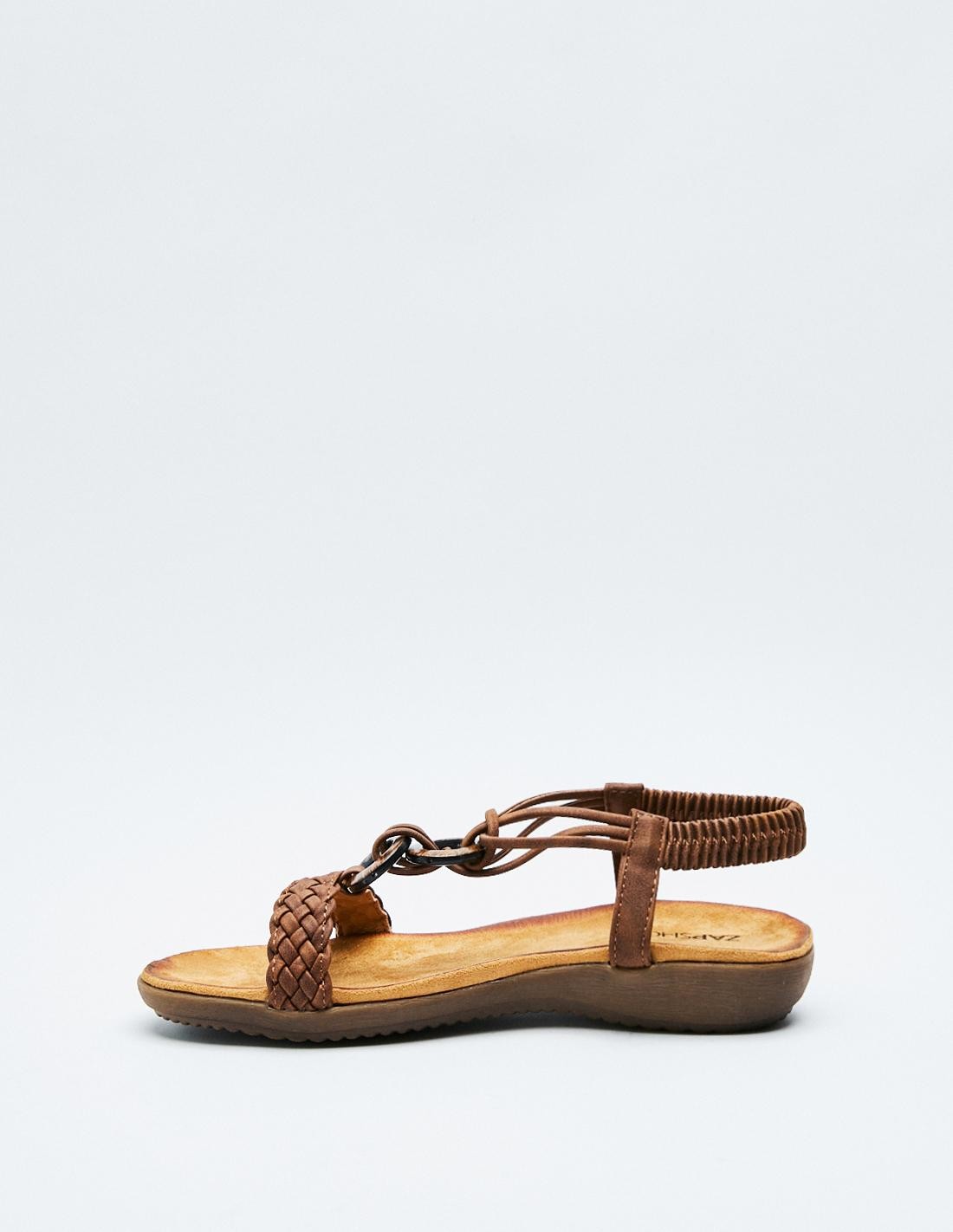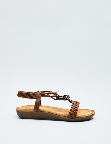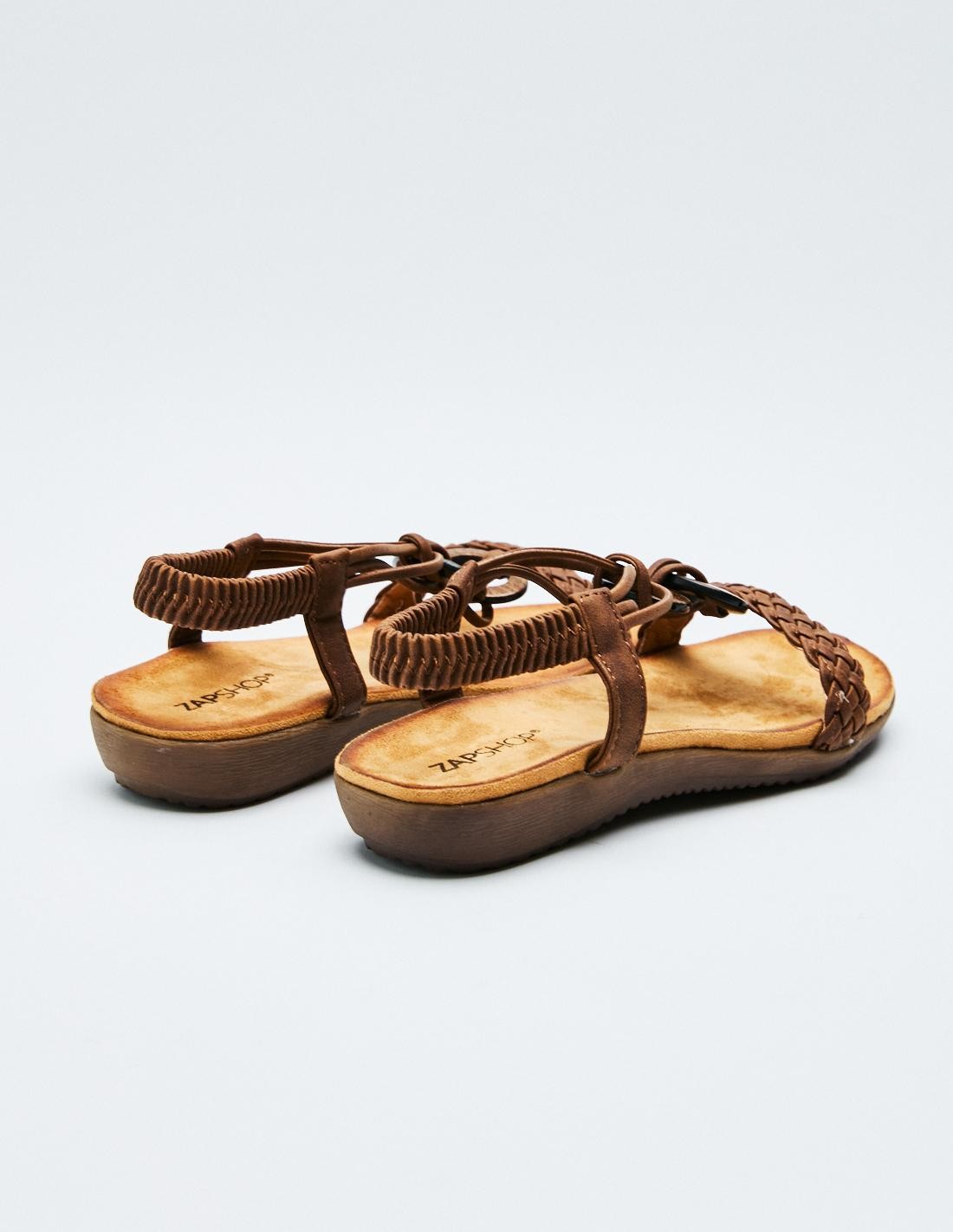 Sandalia plana efcto serraje. Detalle trenzado en la parte delantera. suela plana de goma . Cierre mediante pulsera elastico. Altura de la suela: 2 cm.