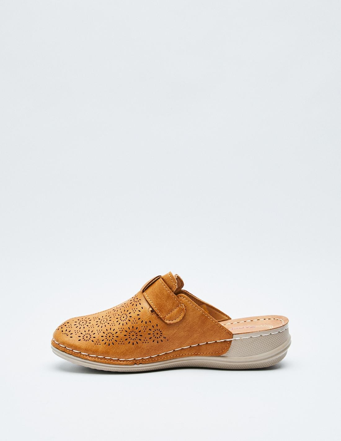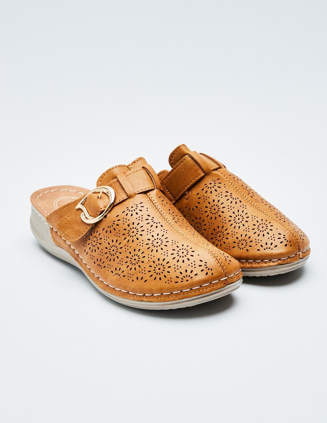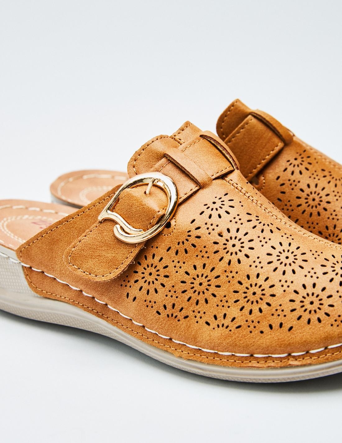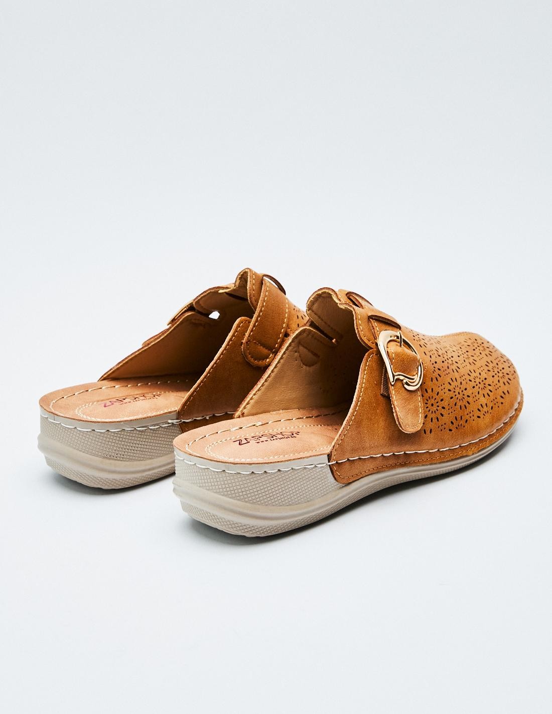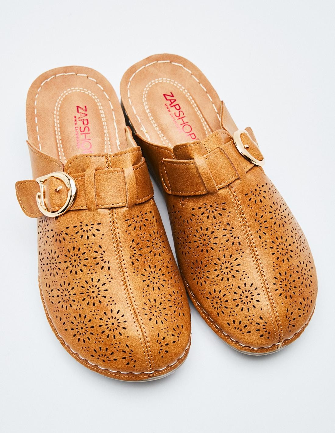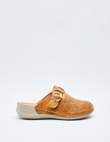Zapato tipo zueco en efecto piel. Detalle de hebilla . Suela combinada en goma. Altura de la plataforma: 3 cm