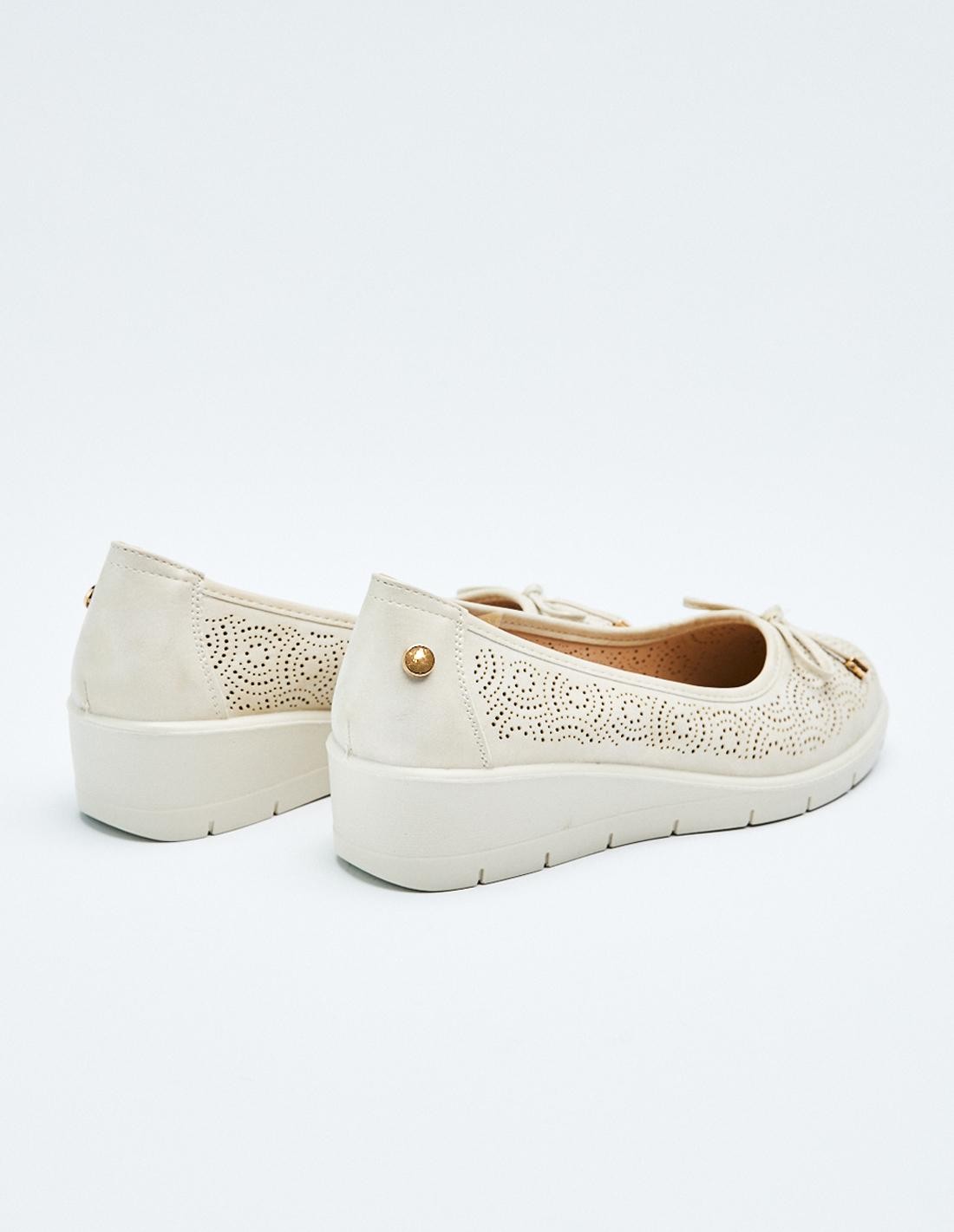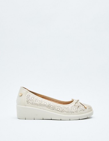 Zapato tipo mocasín en efecto piel mercedita. Modelo ancho y suave para mayor comodidad . Acabado en punta redonda . Suela dentada y combinación de material. Altura de la suela: 2 cm.