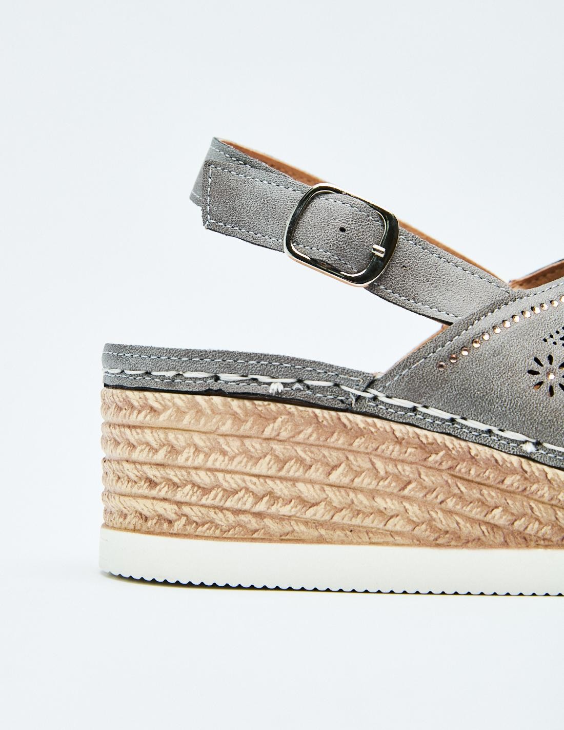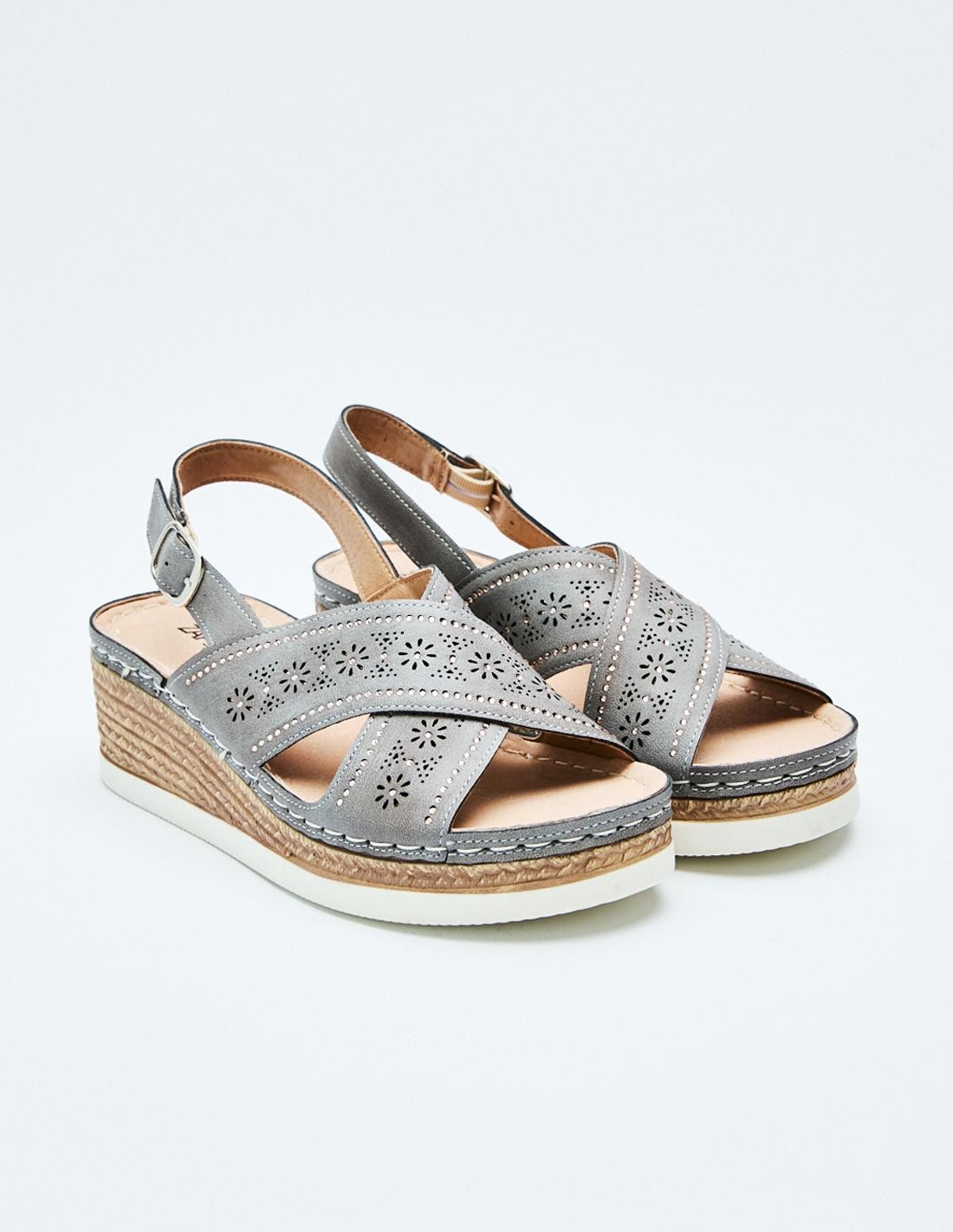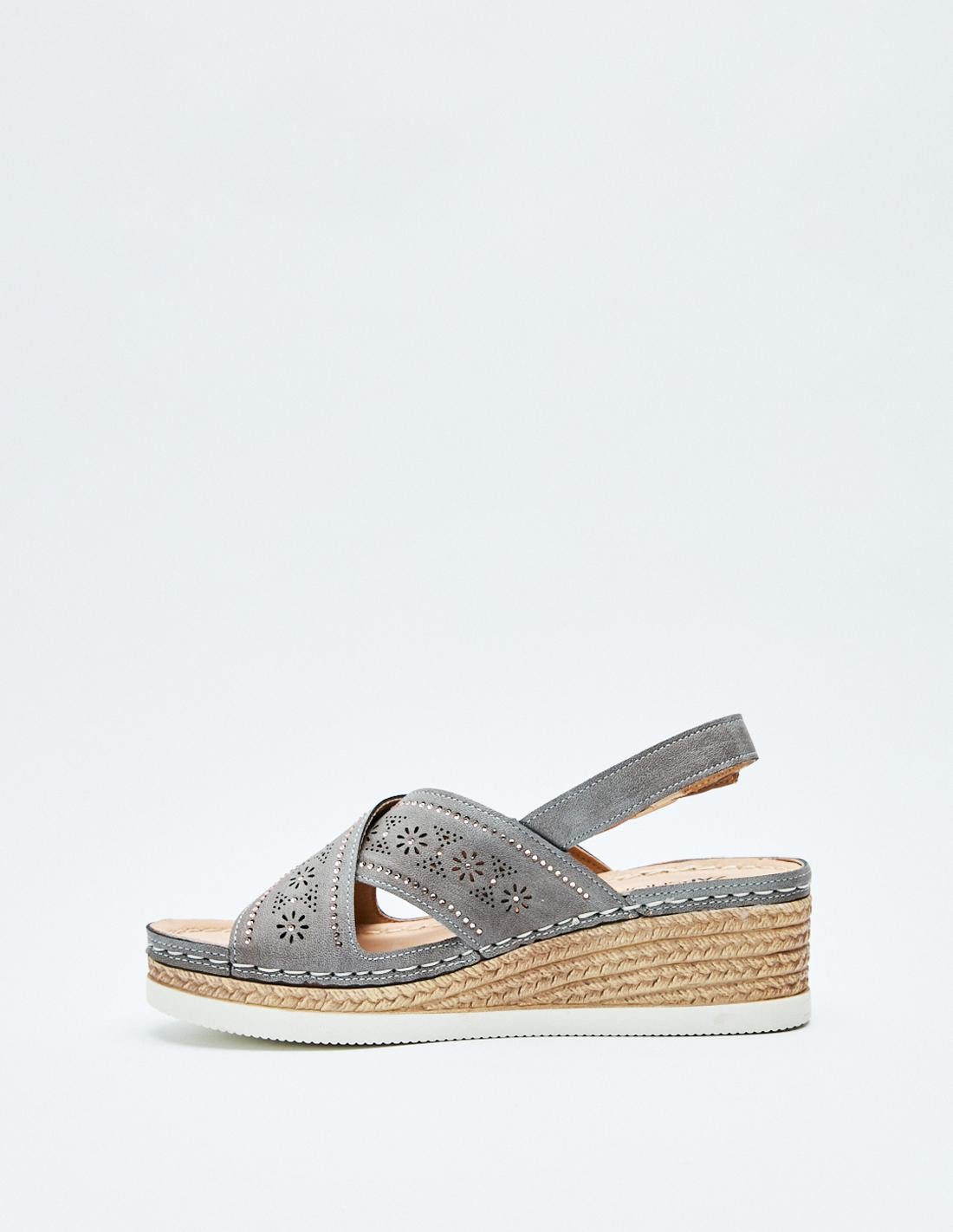 Sandalia plana con tiras anchas cruzadas. Acabada en punta redonda. Altura de la suela: 5,6 cm.