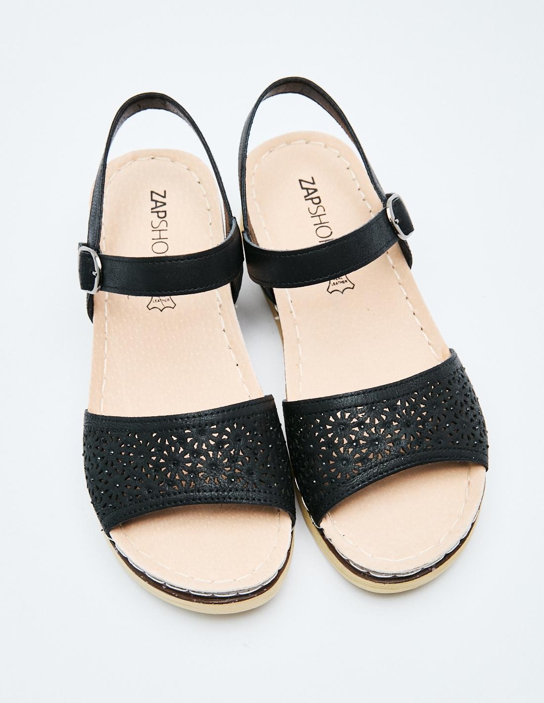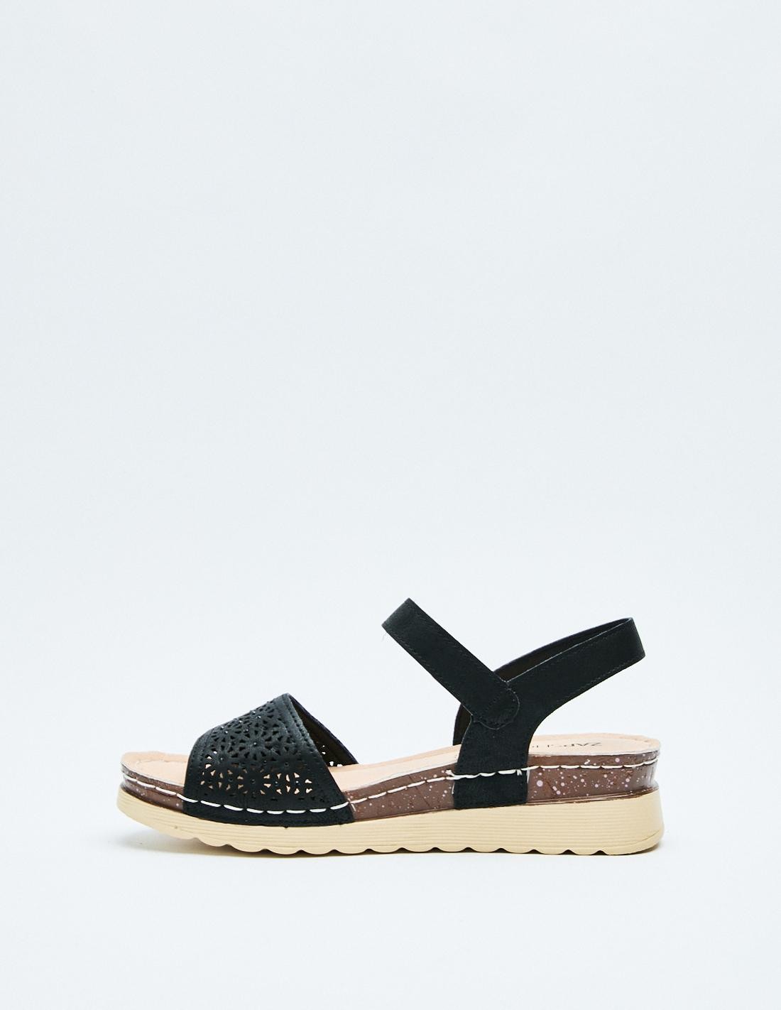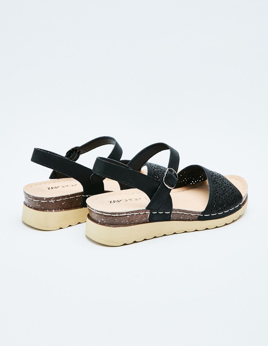 Sandalia plana en efecto piel . Suela de goma combinada. Cierre mediante pulsera en el tobillo. Altura de la suela: 2,8 cm.
