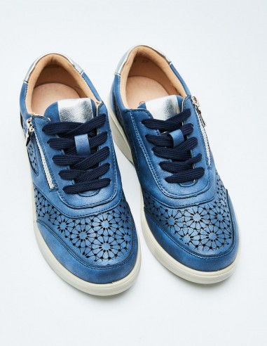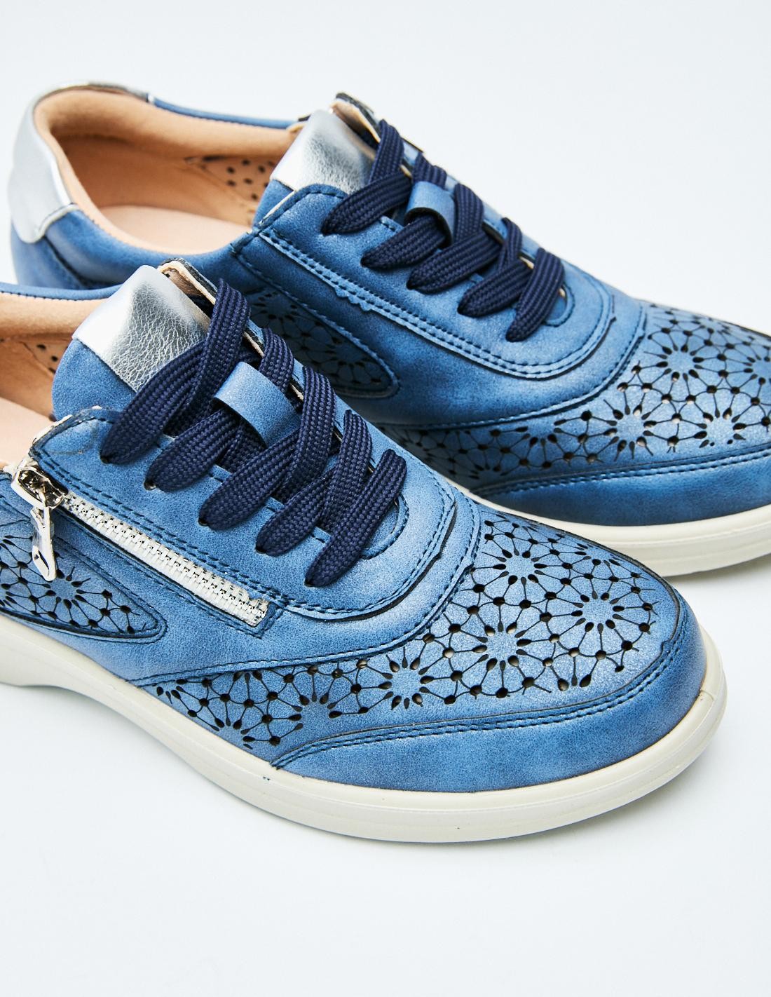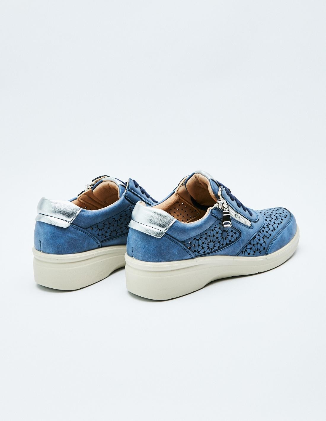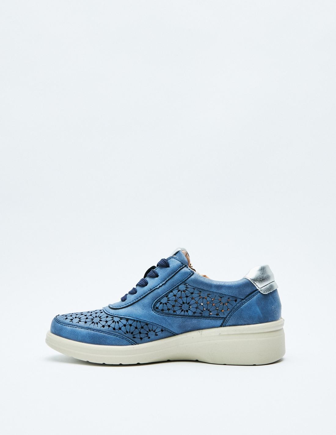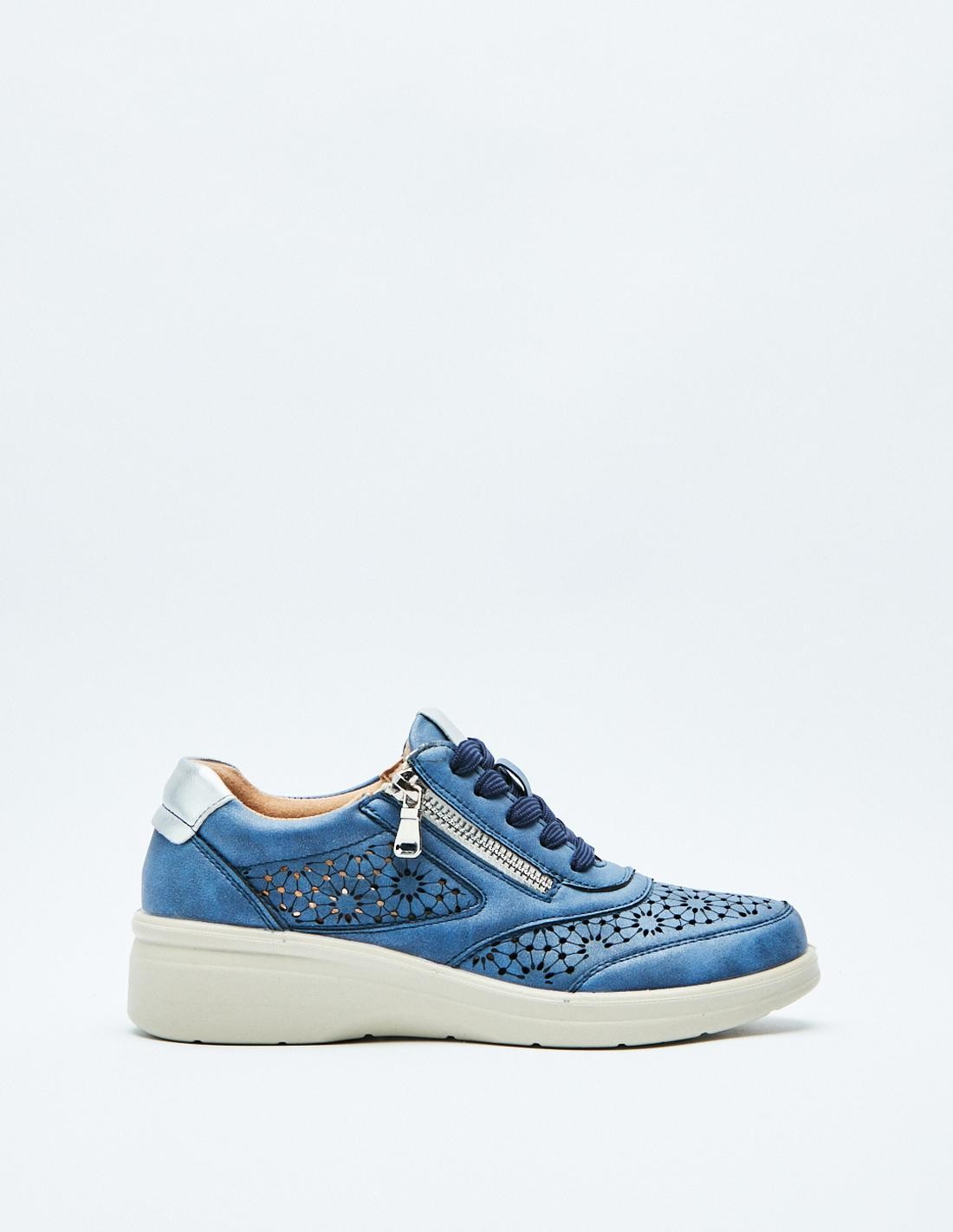 Zapato tipo deportivo de efecto piel. Detalle de cremallera en el lateral. Suela de goma tipo cuña. Cierre mediante cordones.