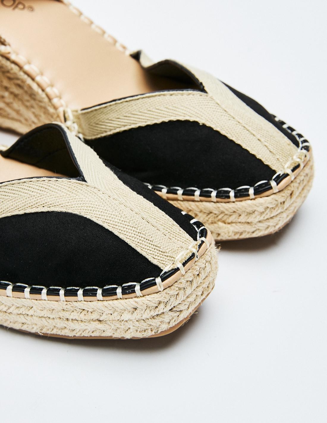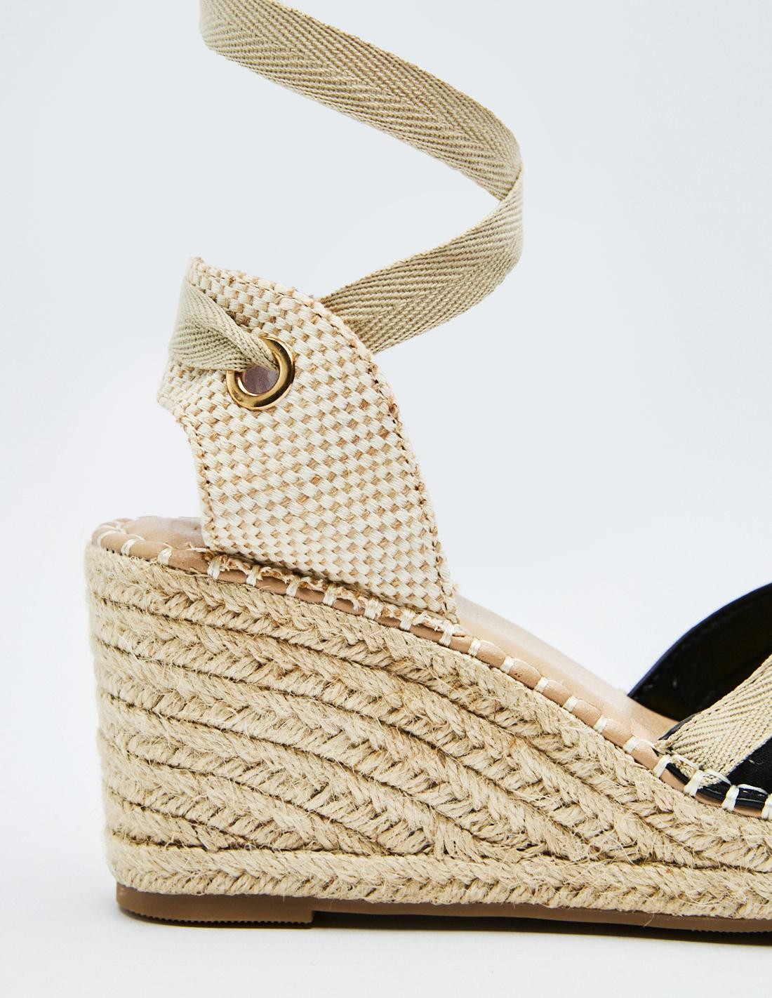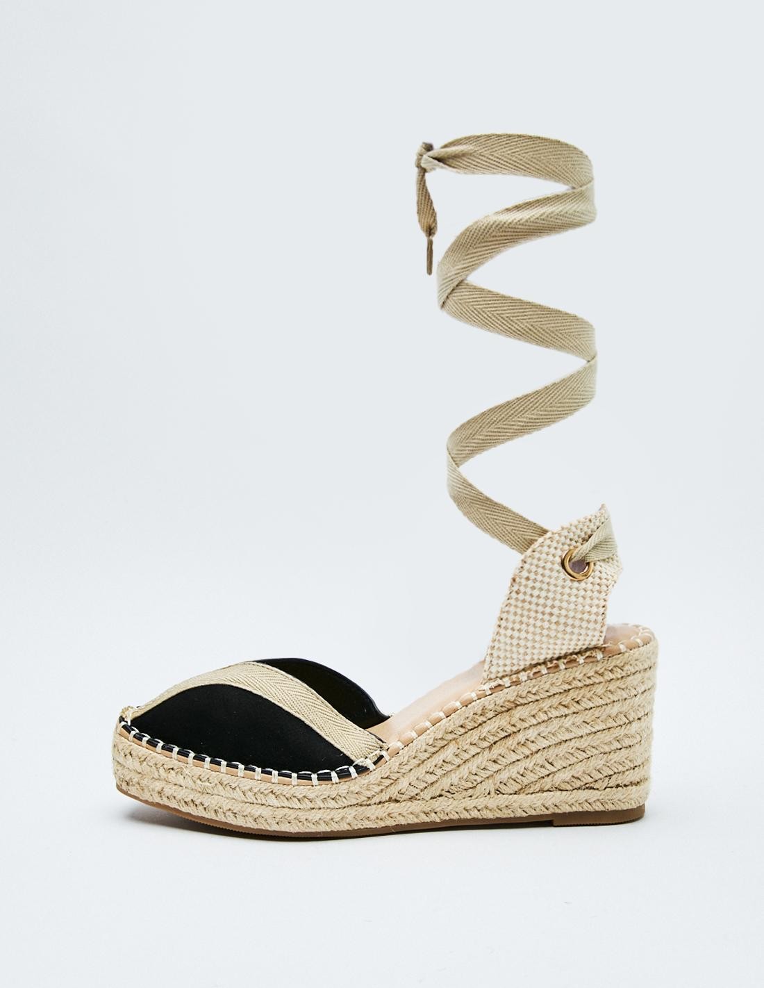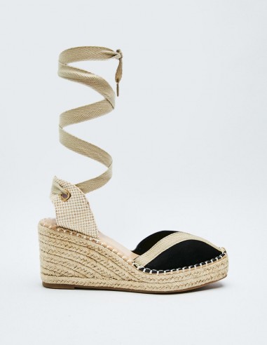 Zapato tipo alpargata con cuña en combinación de materiales. Tiras de tejido para atar al tobillo. Altura de tacón : 11 CM