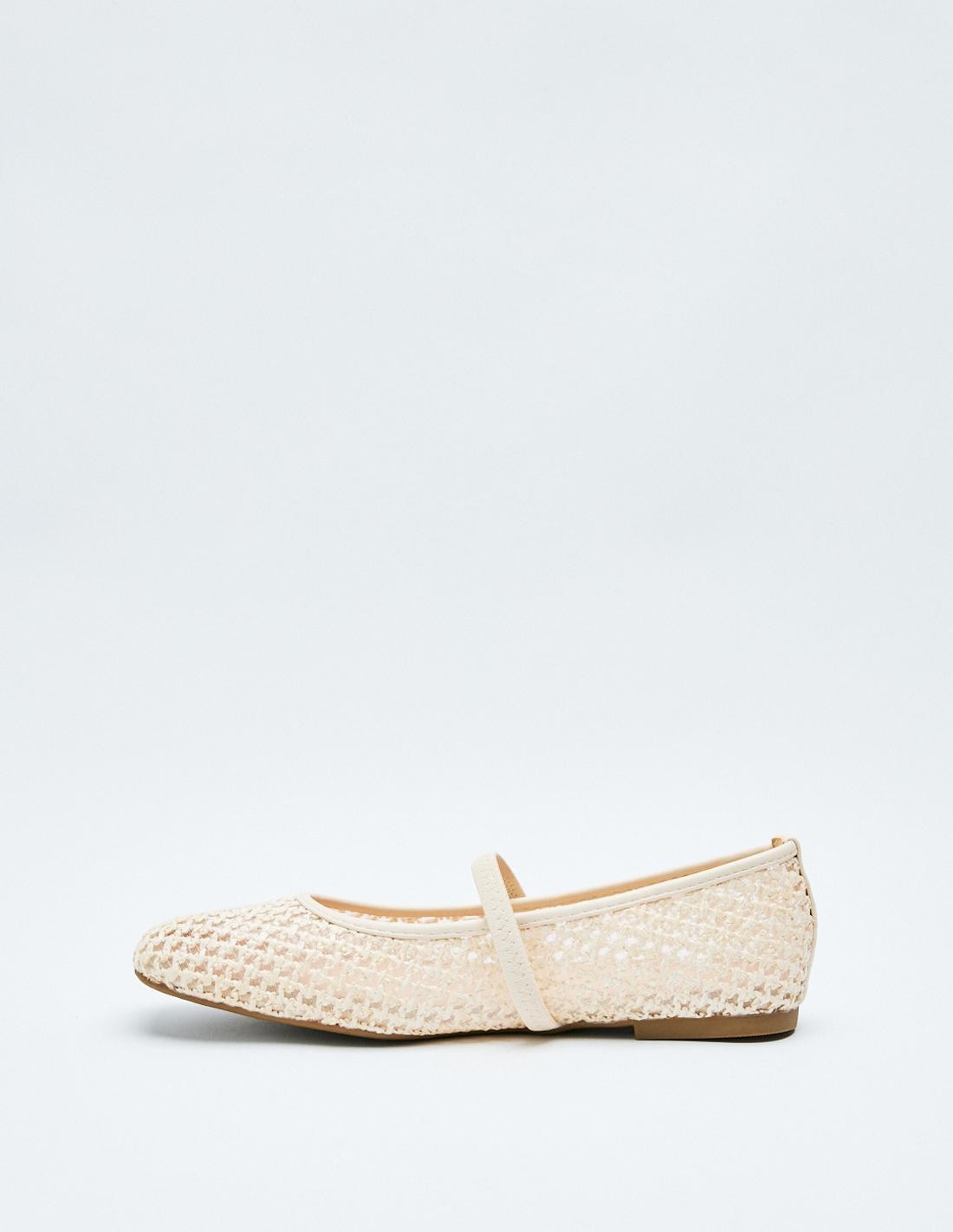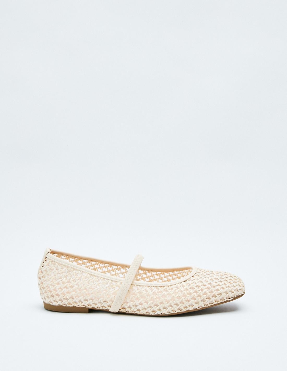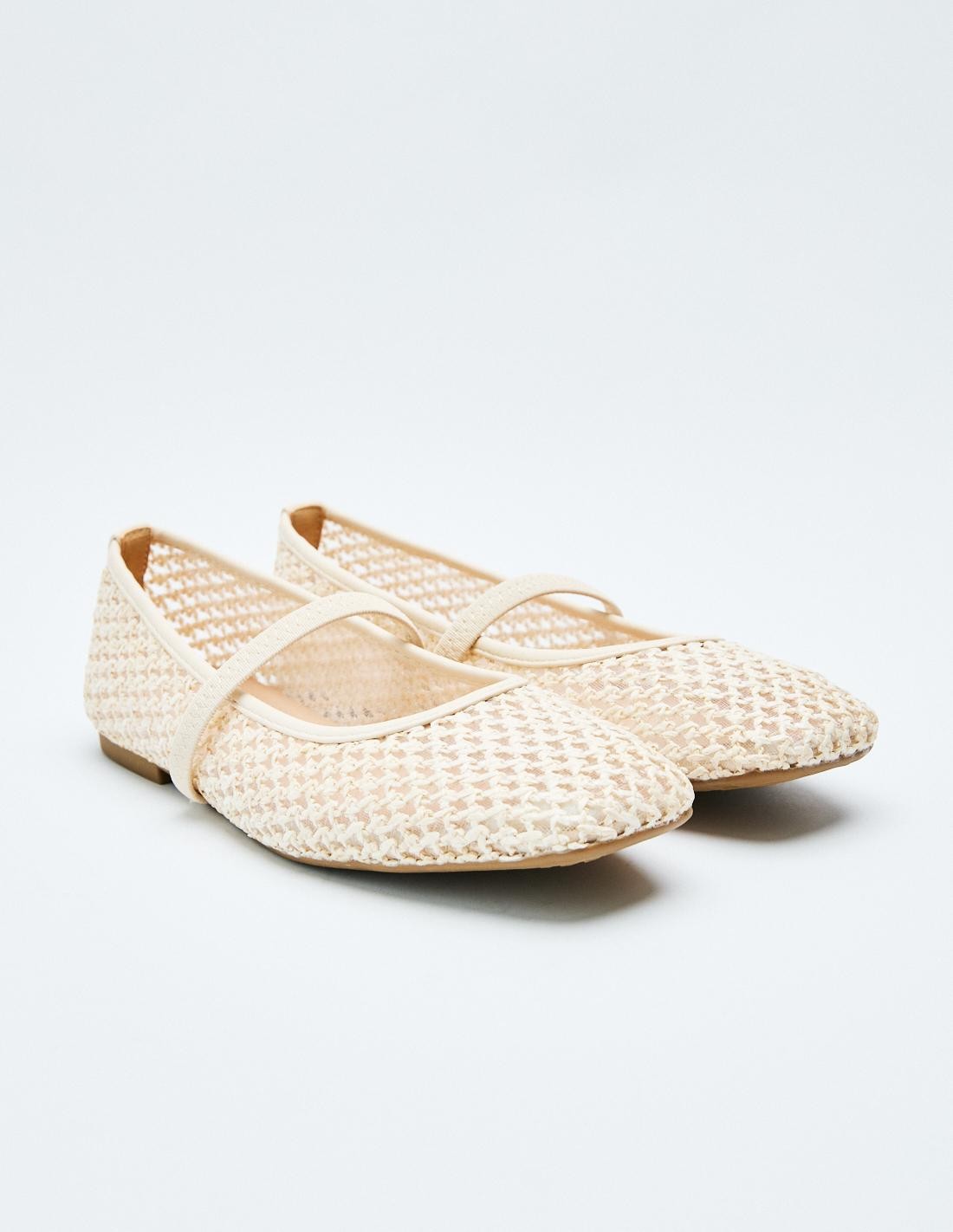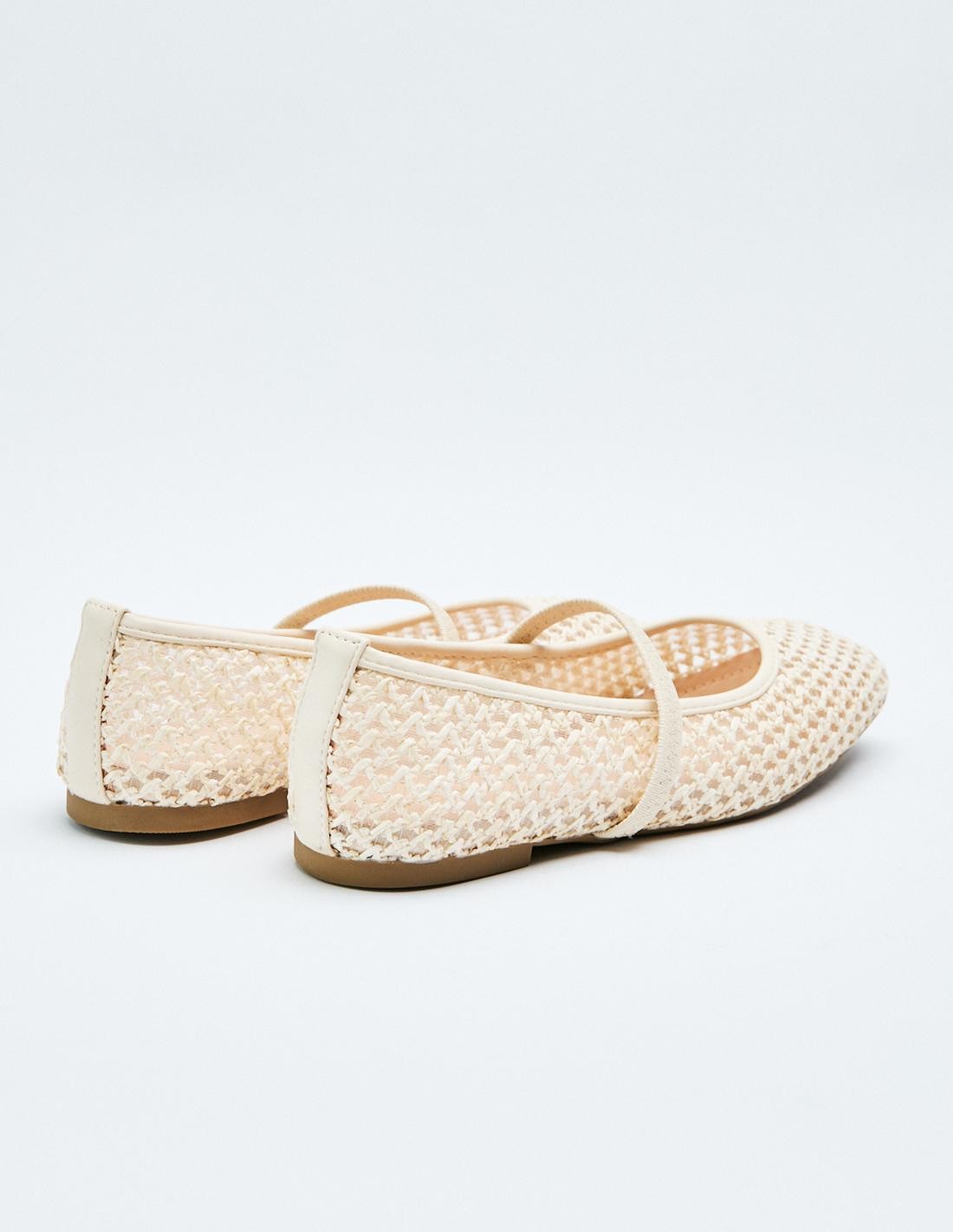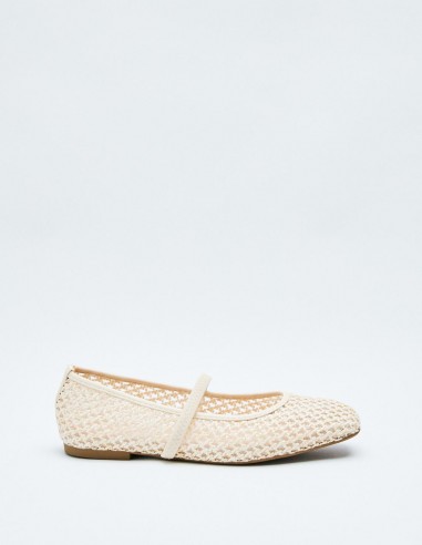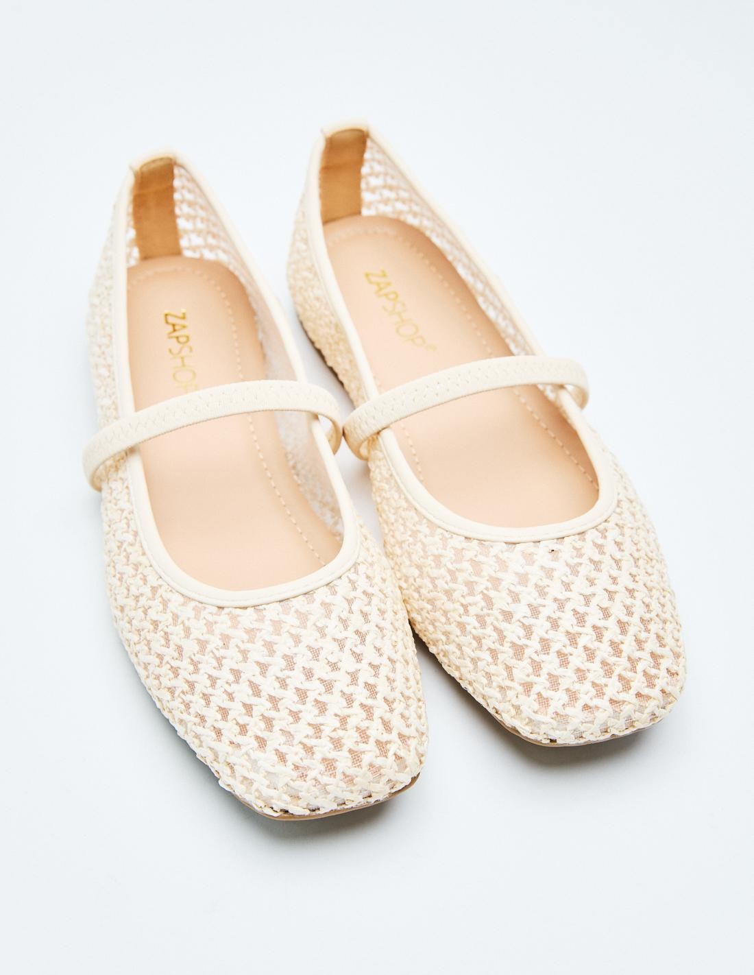 Zapato plano tipo bailarina en efecto trenzado . Tira elastica en la parte delantera. Acabado en punta cuadrada.