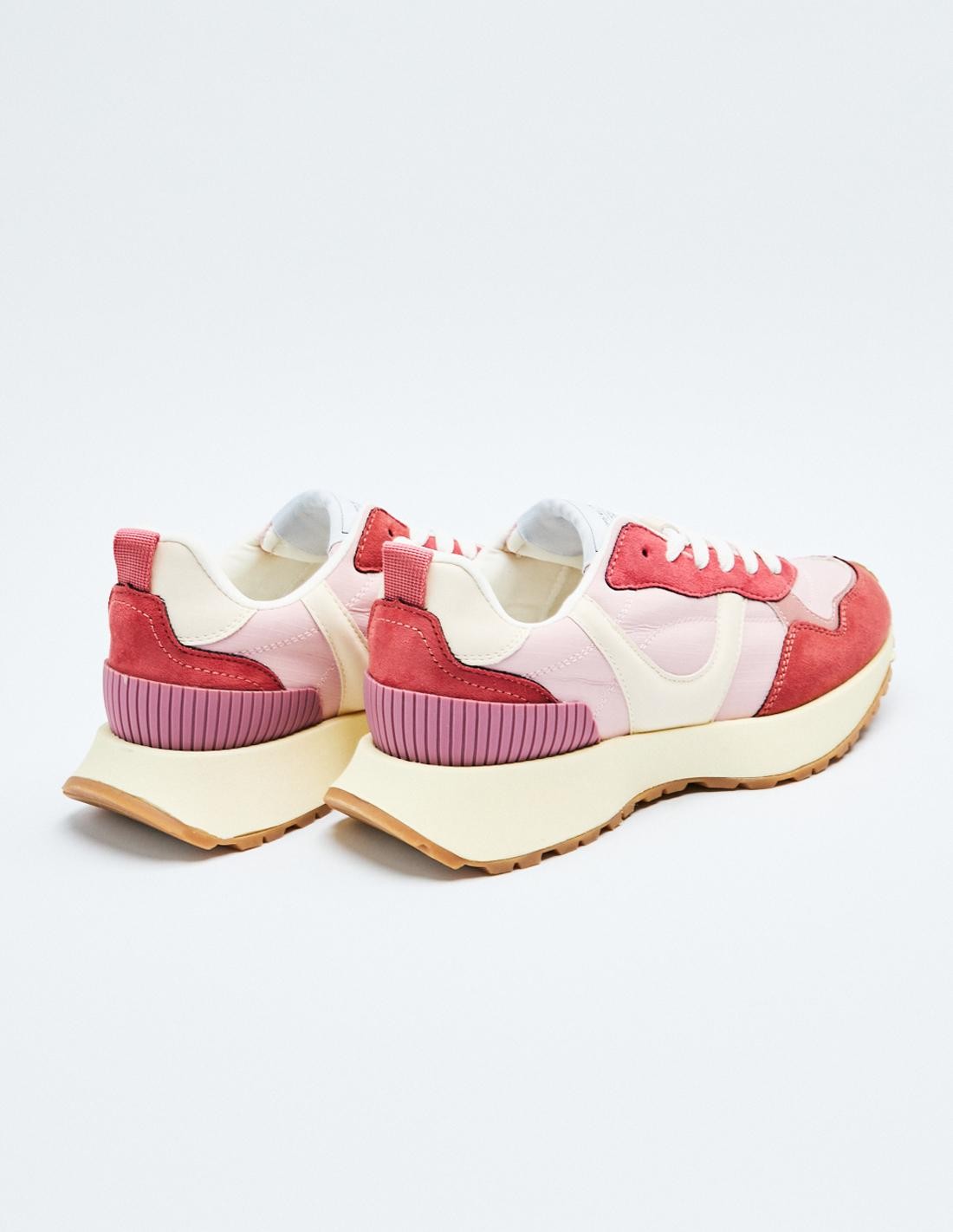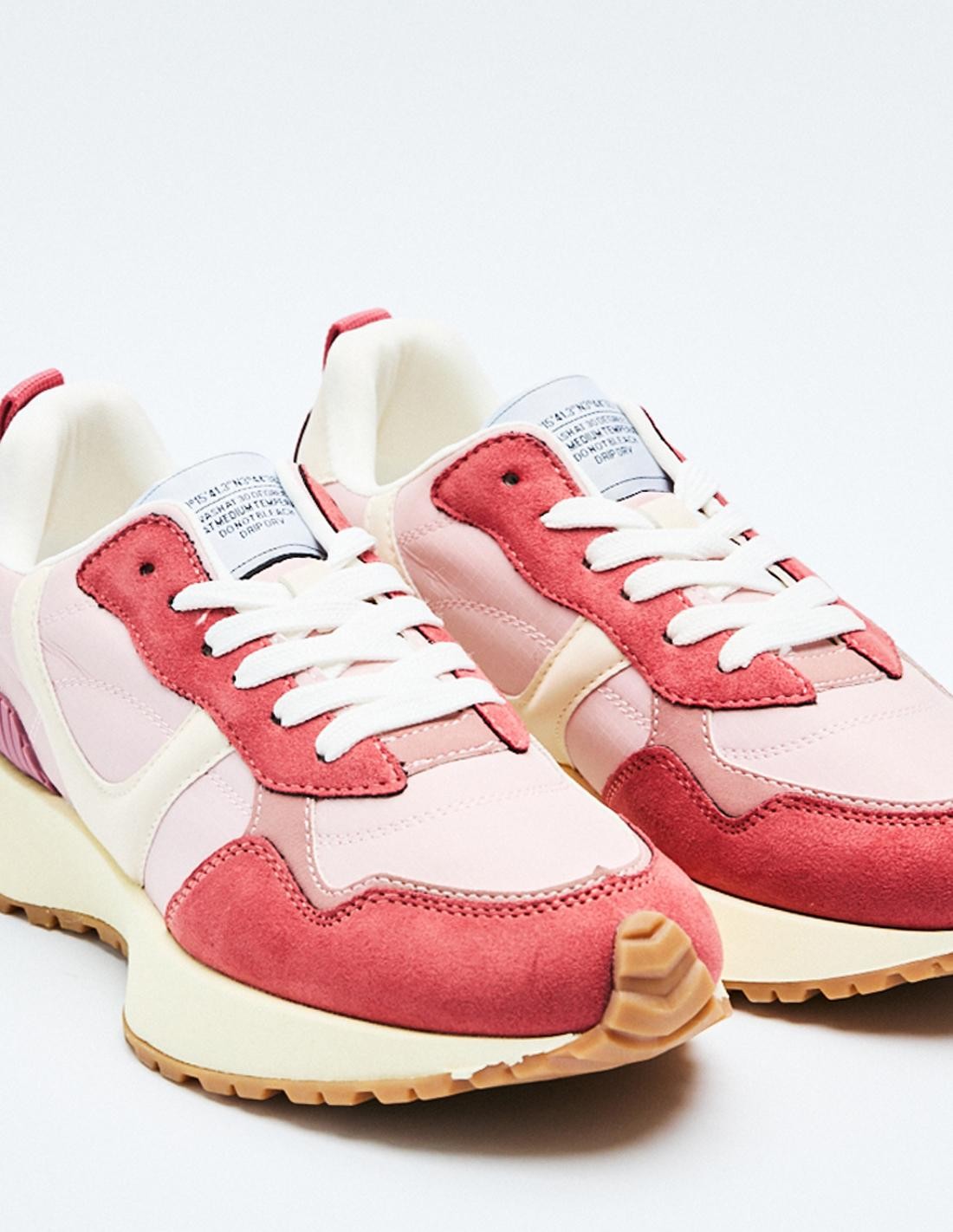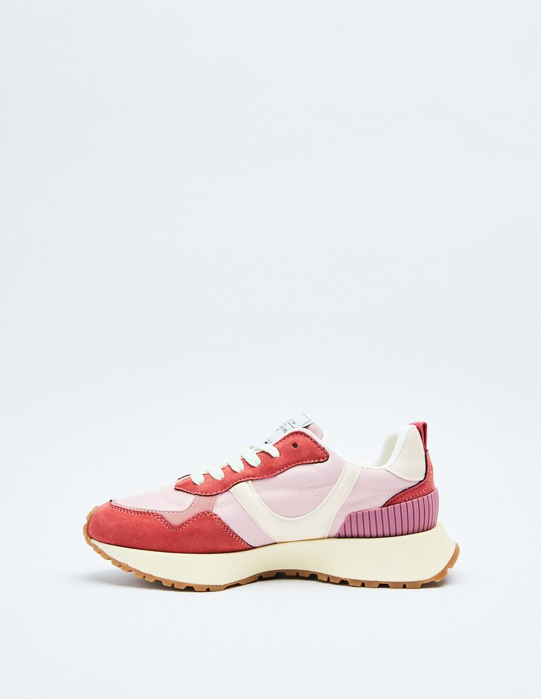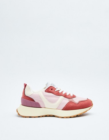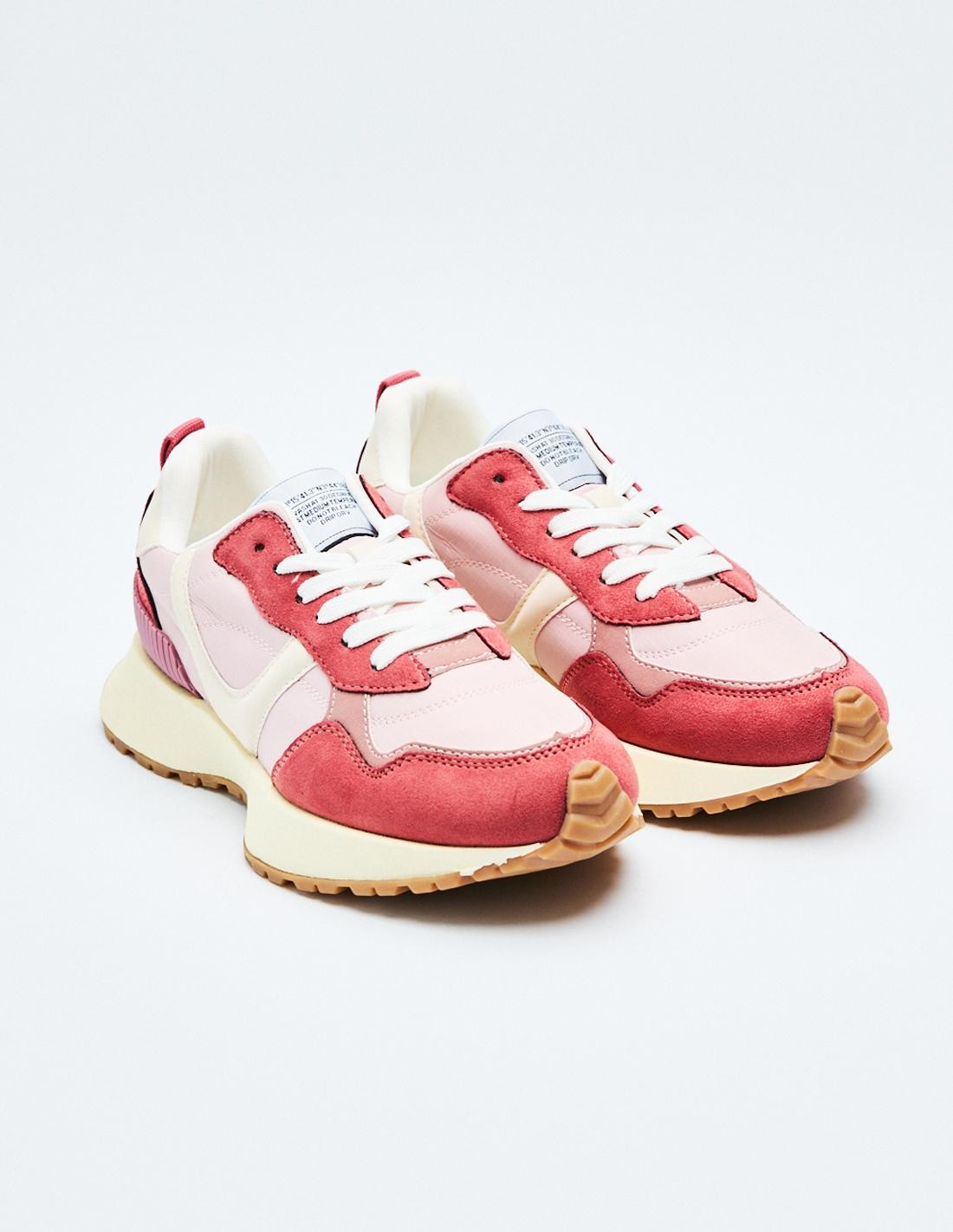 Zapatillas deportivas estilo running en combinación de materiales con detalles en efecto serraje . Cierre mediante cordones.