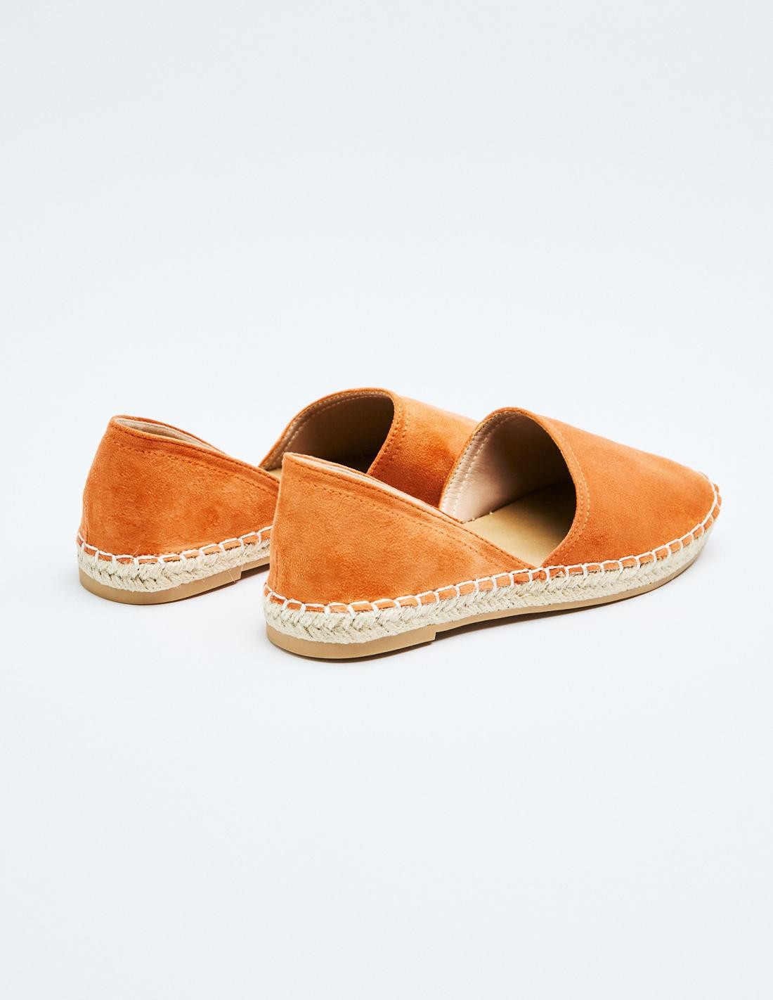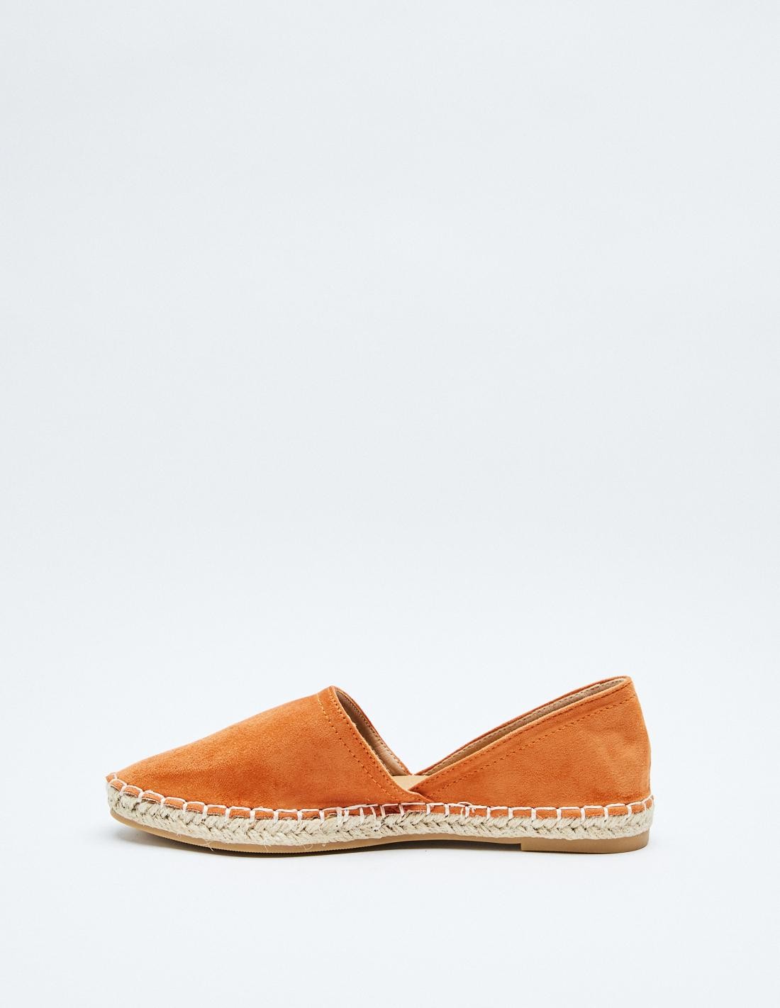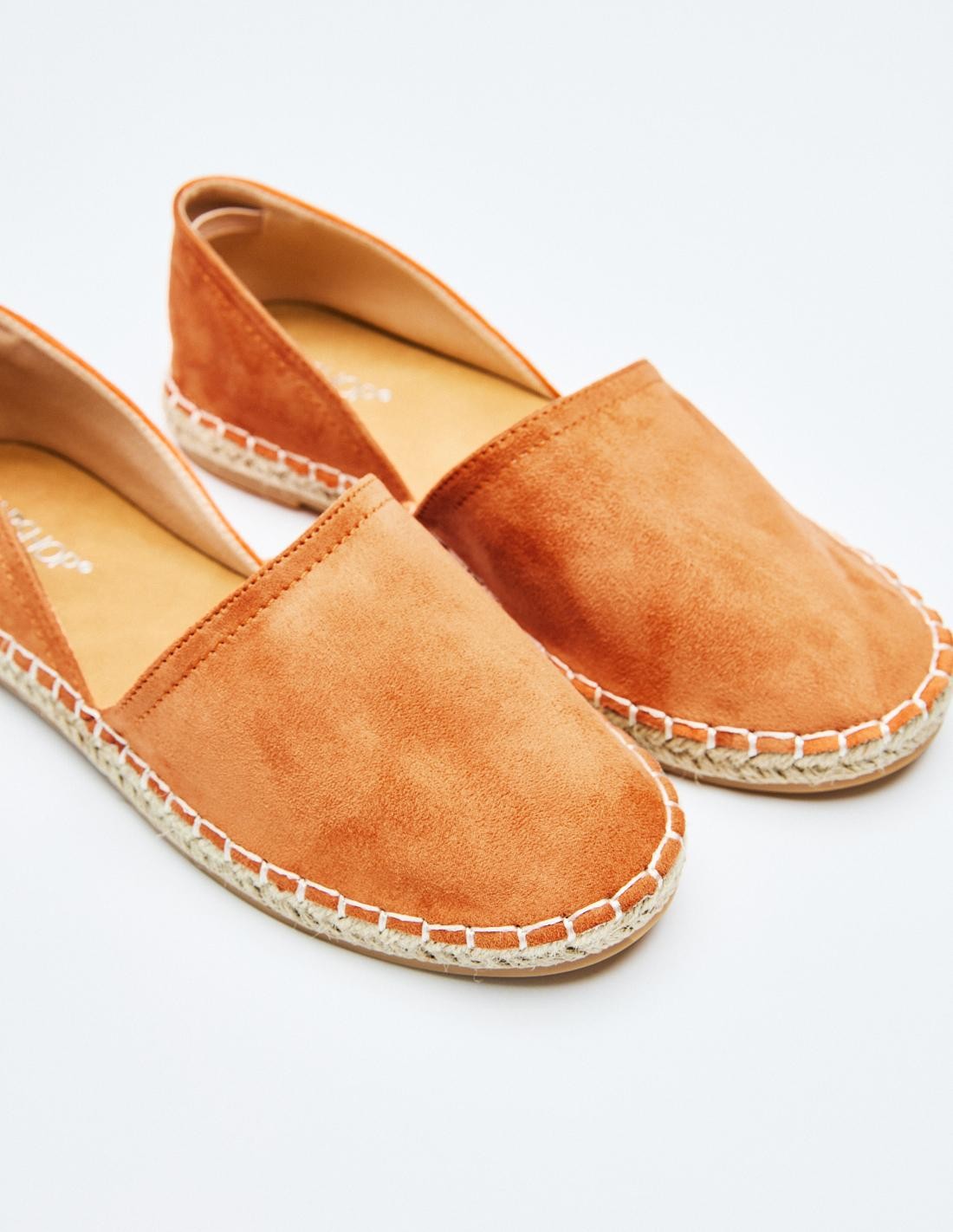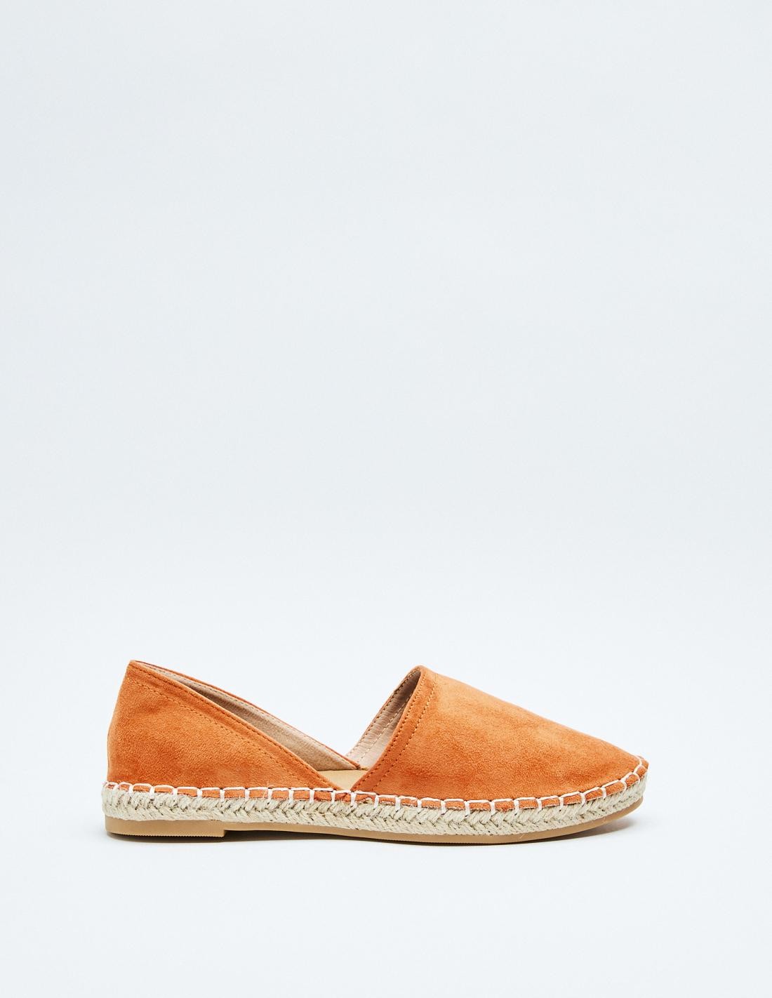 Zapato tipo alpargata en efecto serraje y combinación de materiales.