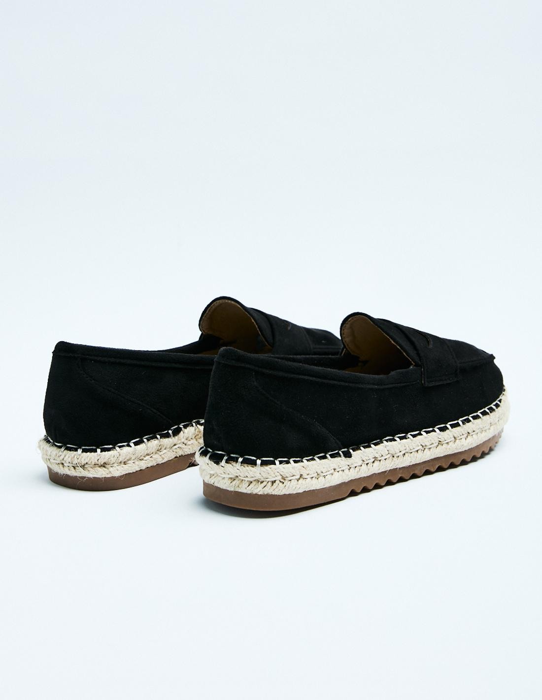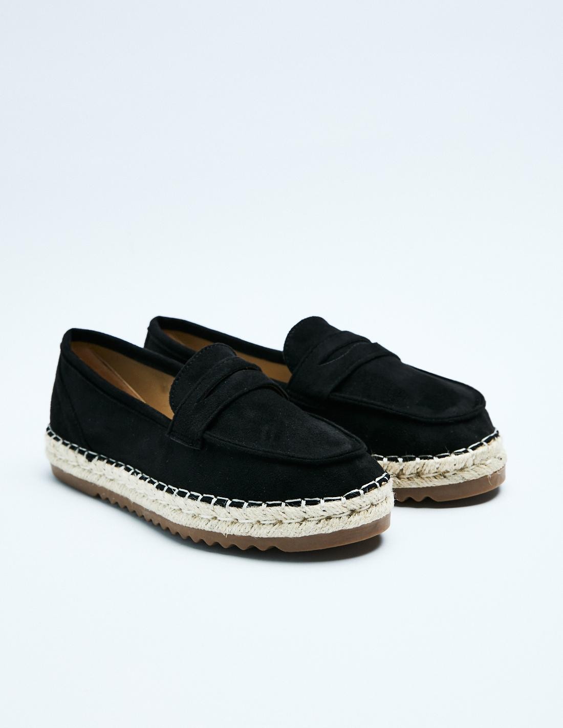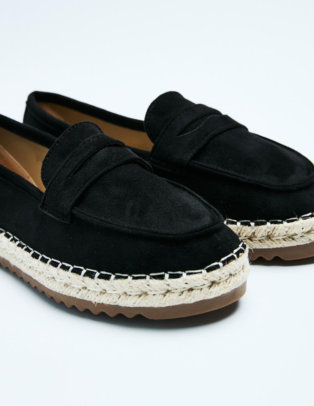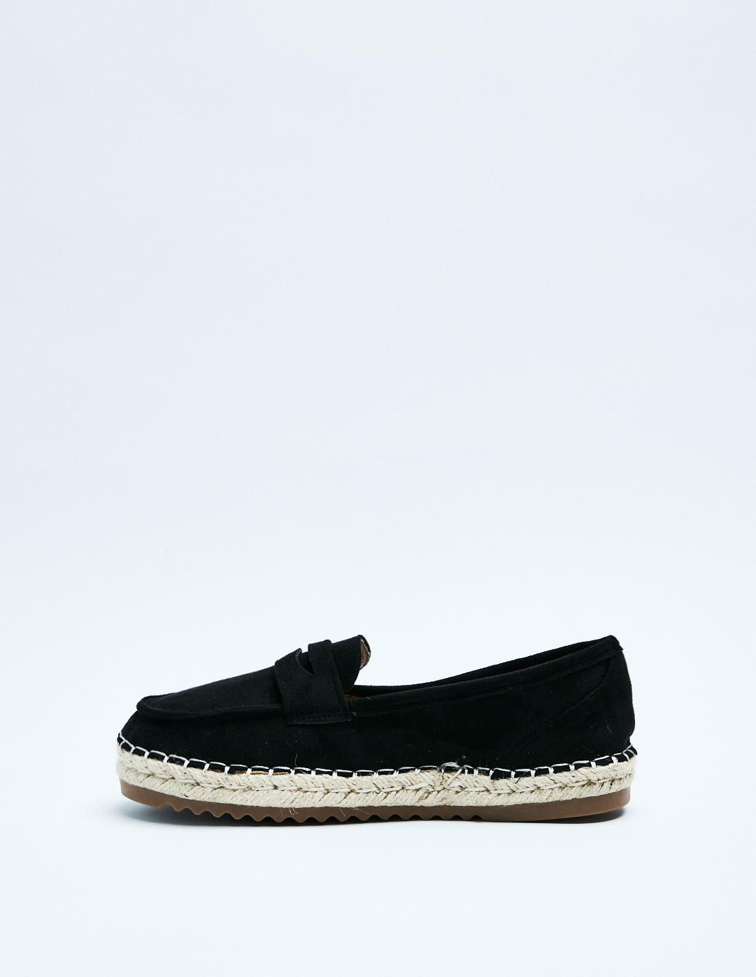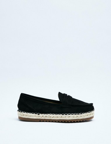 Zapato plano tipo mocasín en efecto serraje . Suela de goma dentada en combinacion de material.