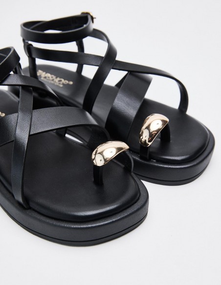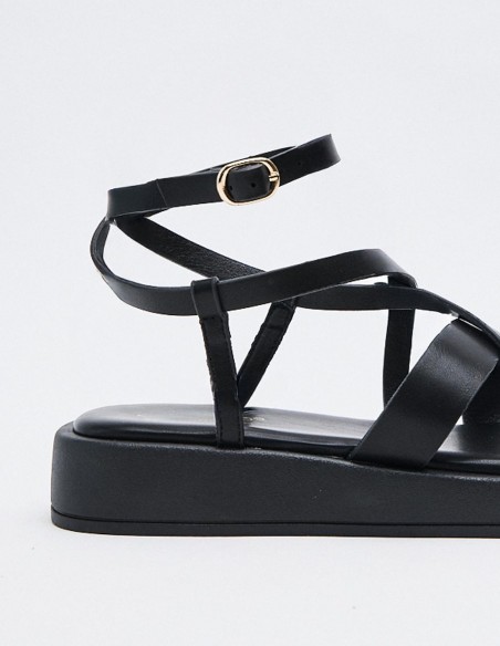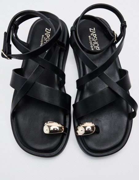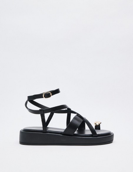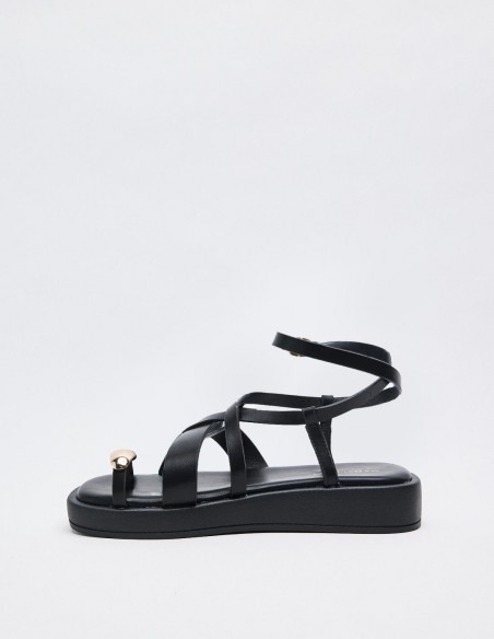 Zapato tipo sandalia efecto piel .Cierre mediante hebilla en la pulsera al tobillo. Acabado en punta redonda. Altura tacón :3 cm