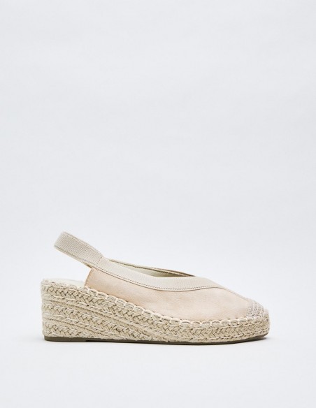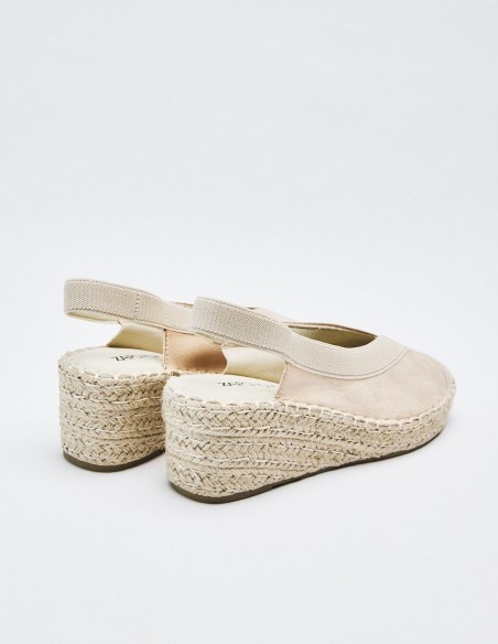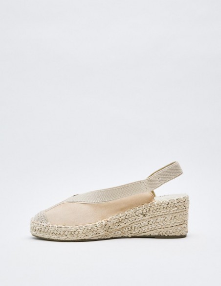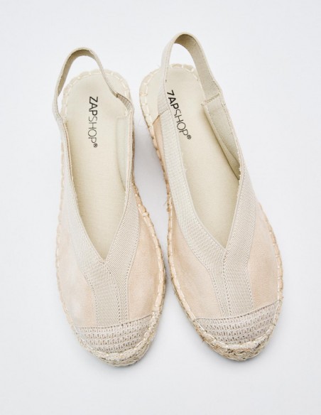 Alpargatas de mujer en combinacion de material . Destaca detalle de puntera cerrada. Cierre mediante tira elástica ajustada al talón . Suela en combinacion de materiales.