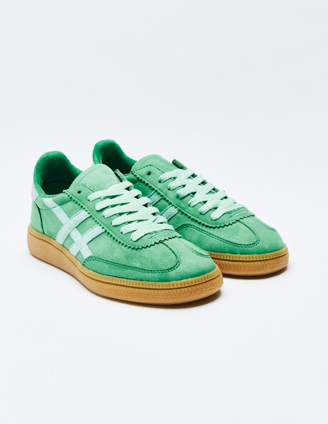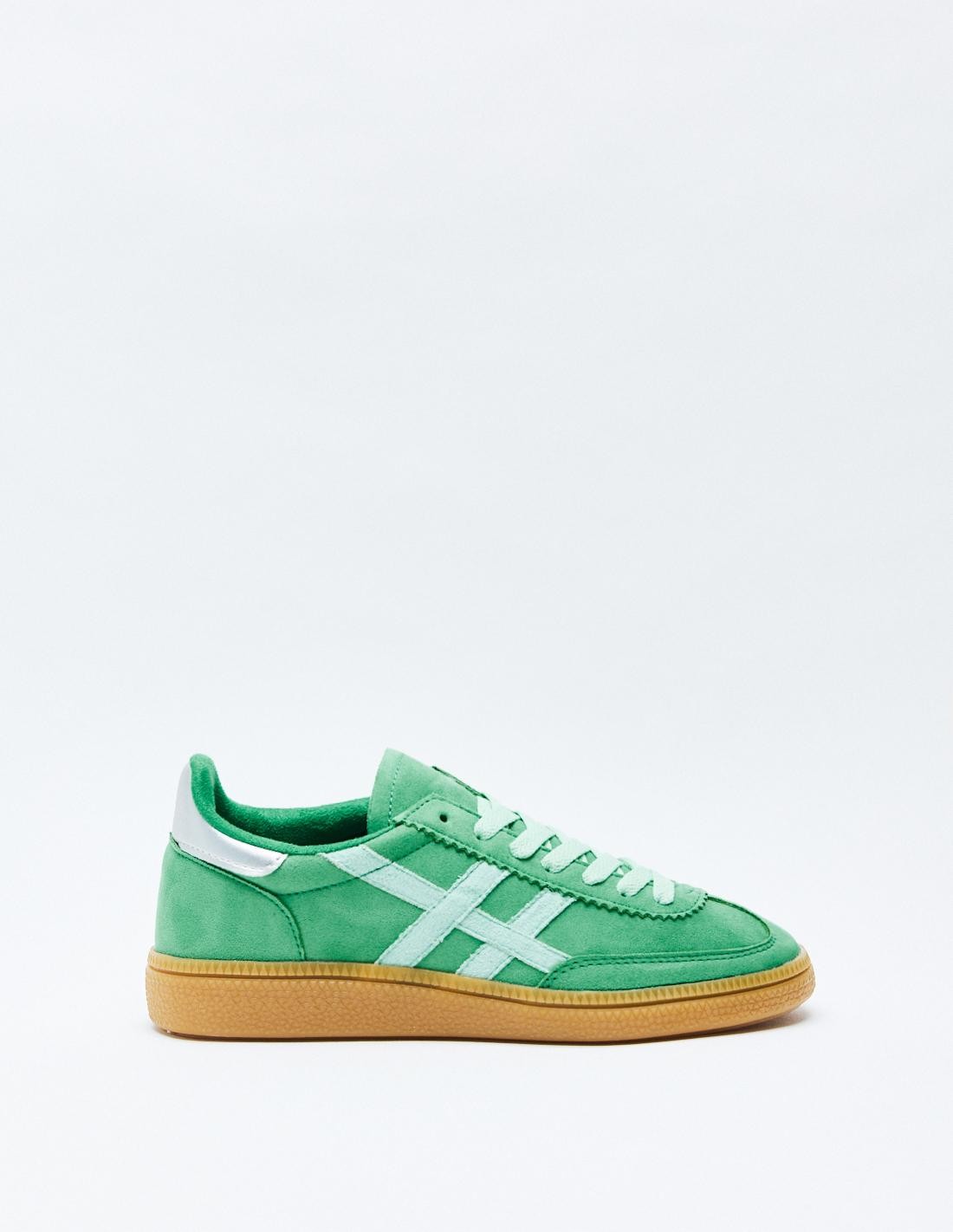 Zapato tipo deportivas. Piezas en combinación de colores y de materiales. Suela en contraste. Cierre mediante cordones combinados. Altura de la suela: 2,5 cm