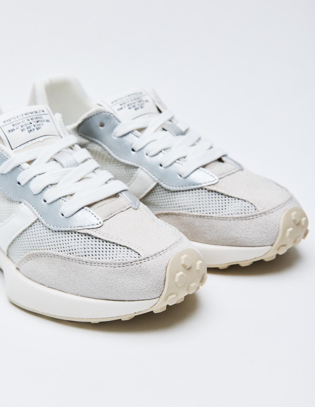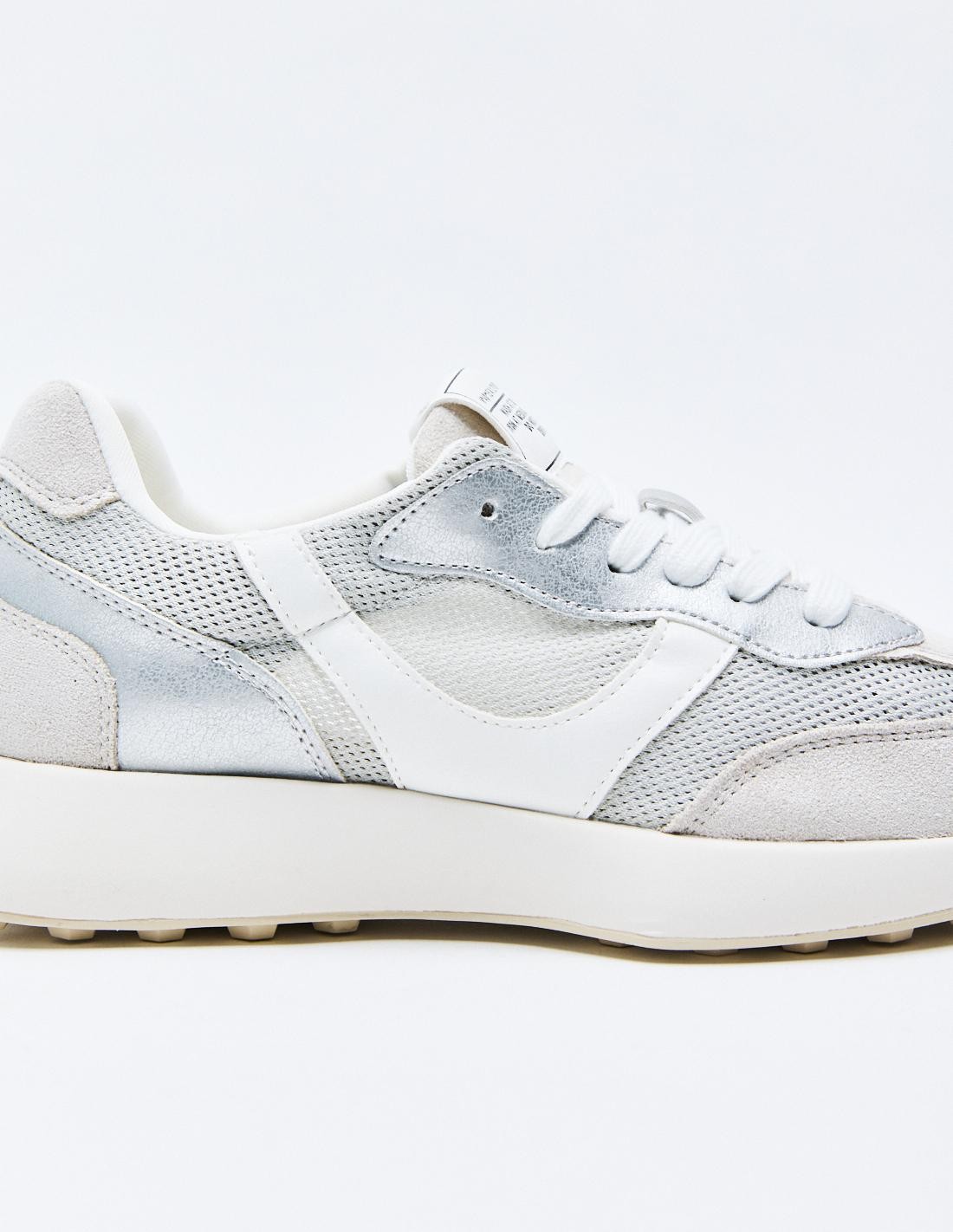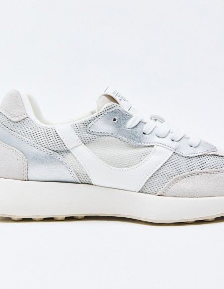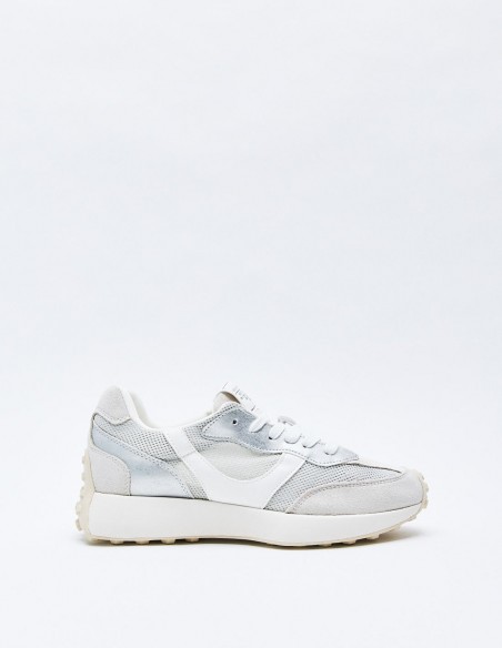 Zapato tipo running deportivo. Combinación de materiales. Pespunte en el cuerpo. Cierre mediante cordones. Acabado en punta redonda. Altura de la suela: 3 cm