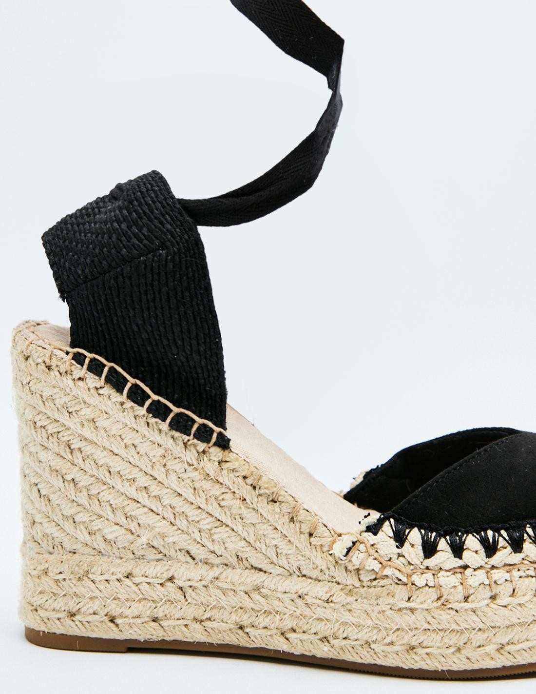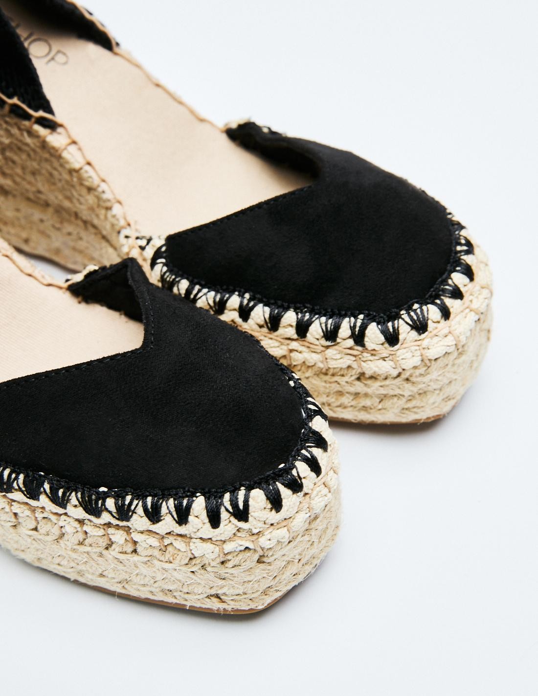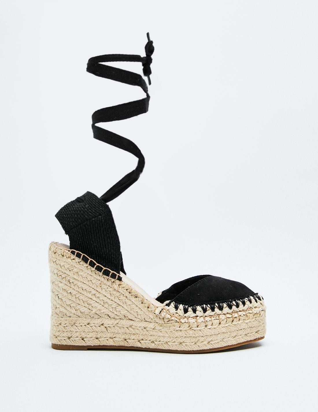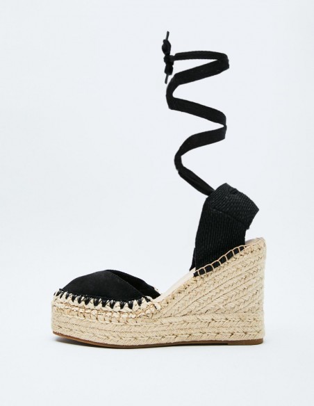 Zapato con tacón tipo cuña. Combinación de materiales en el corte. Tiras para atar en el tobillo. Altura tacón : 10 cm