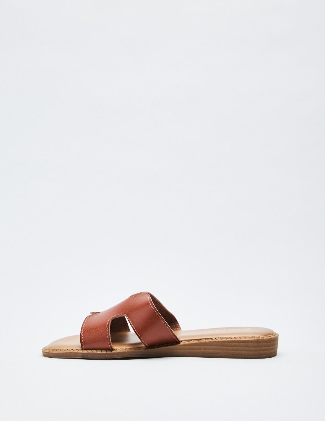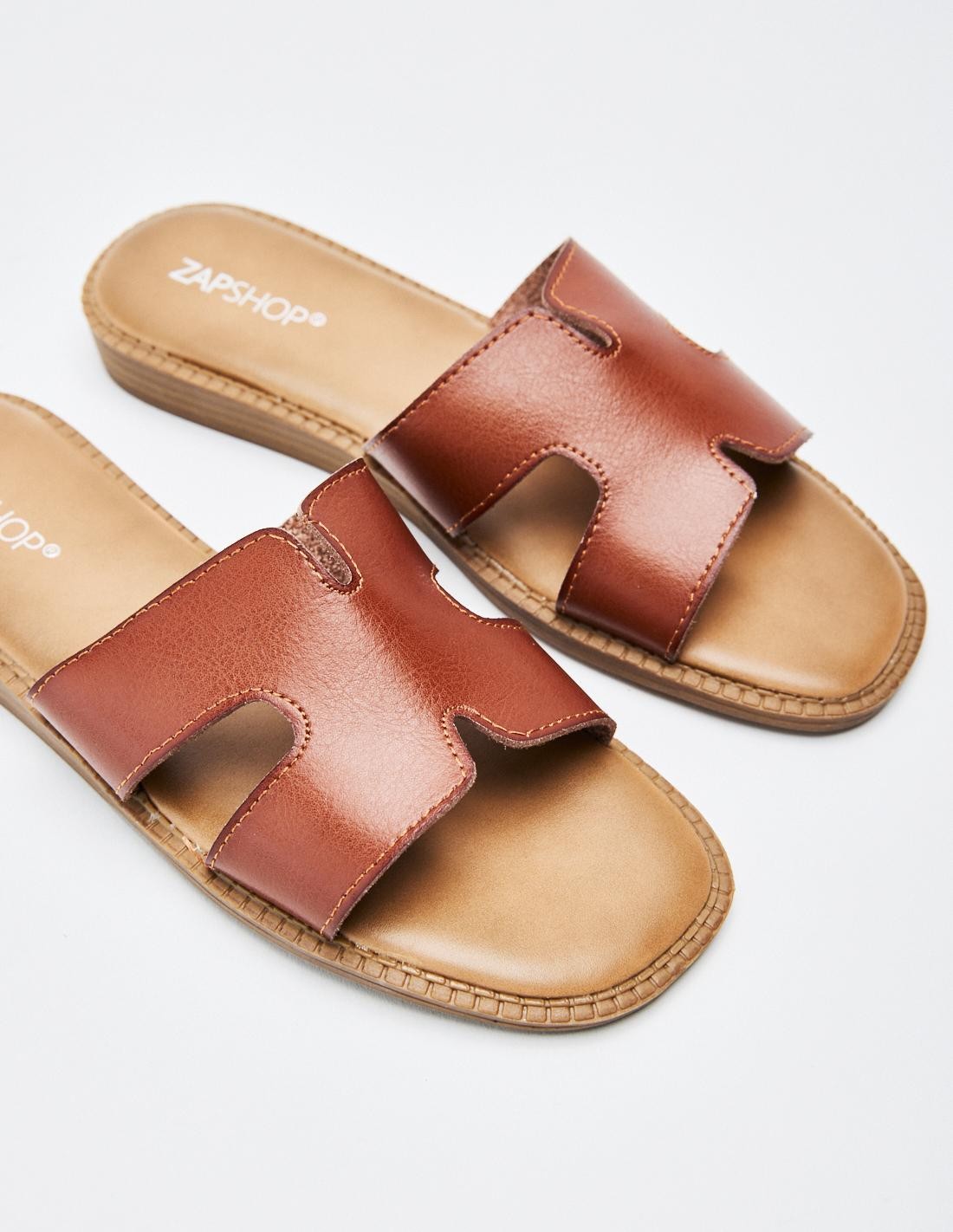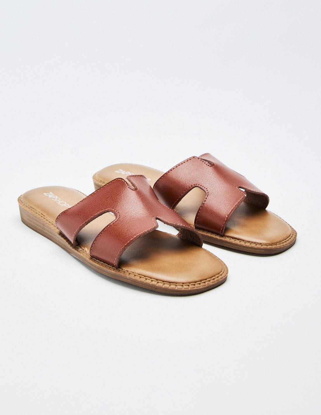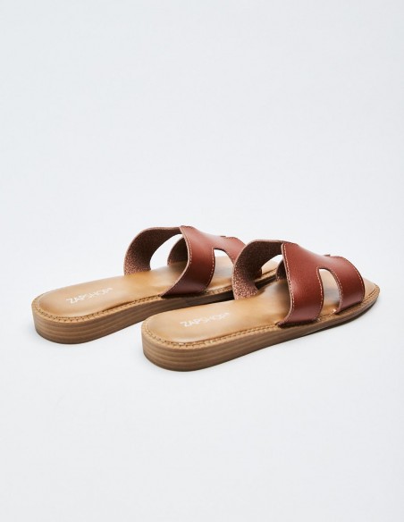 Zapato tipo sandalia plana de efecto piel con detalle de tiras gruesas. Altura de la suela: 1 cm.