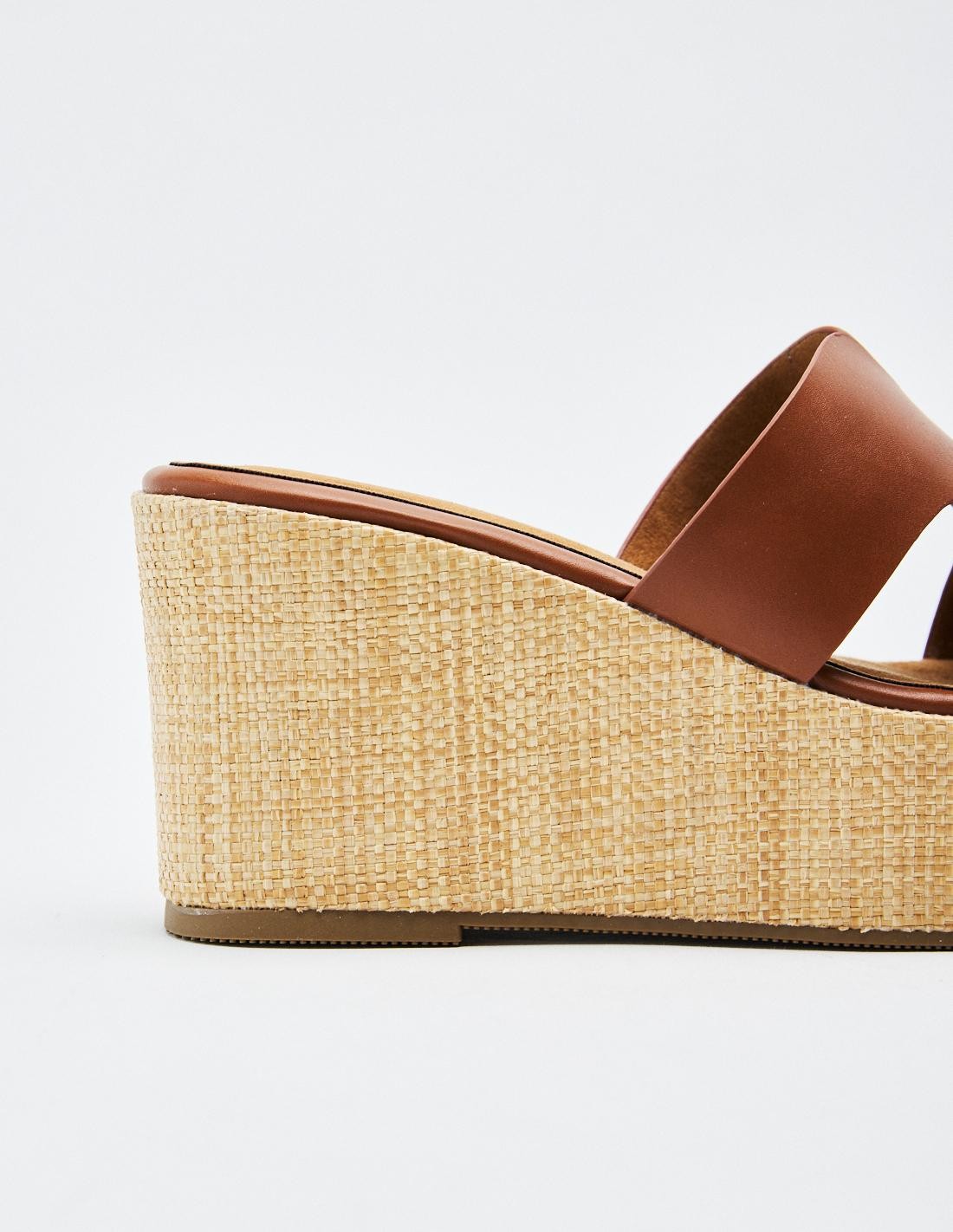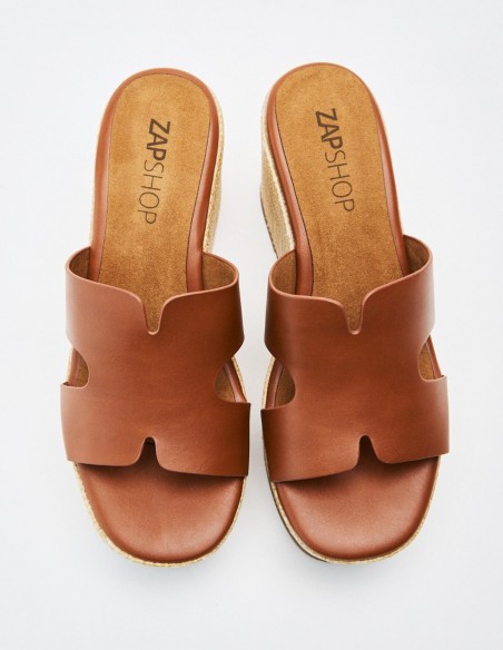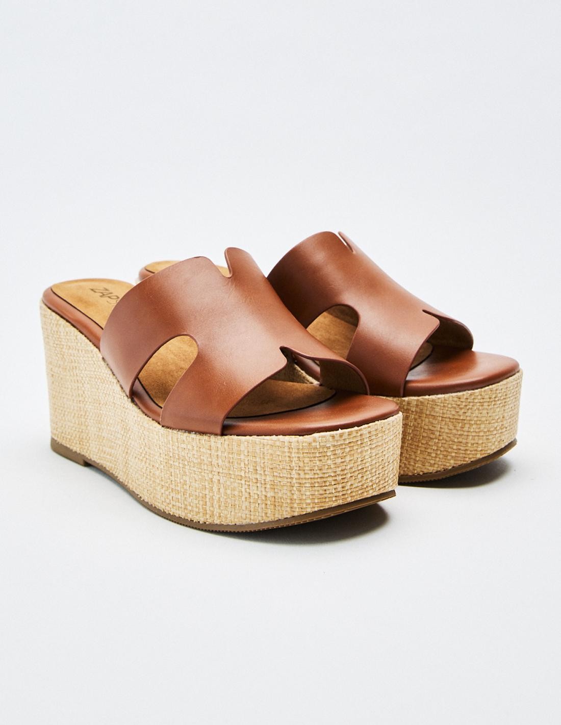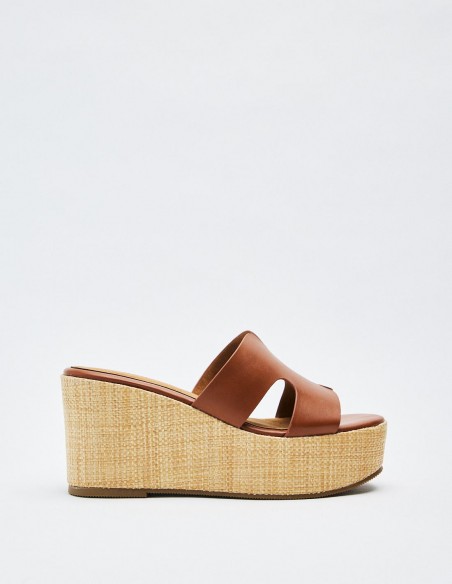 Zapato de tacón tipo cuña con plataforma en efecto piel. Tira ancha en la parte delantera. Acabado en punta redonda.