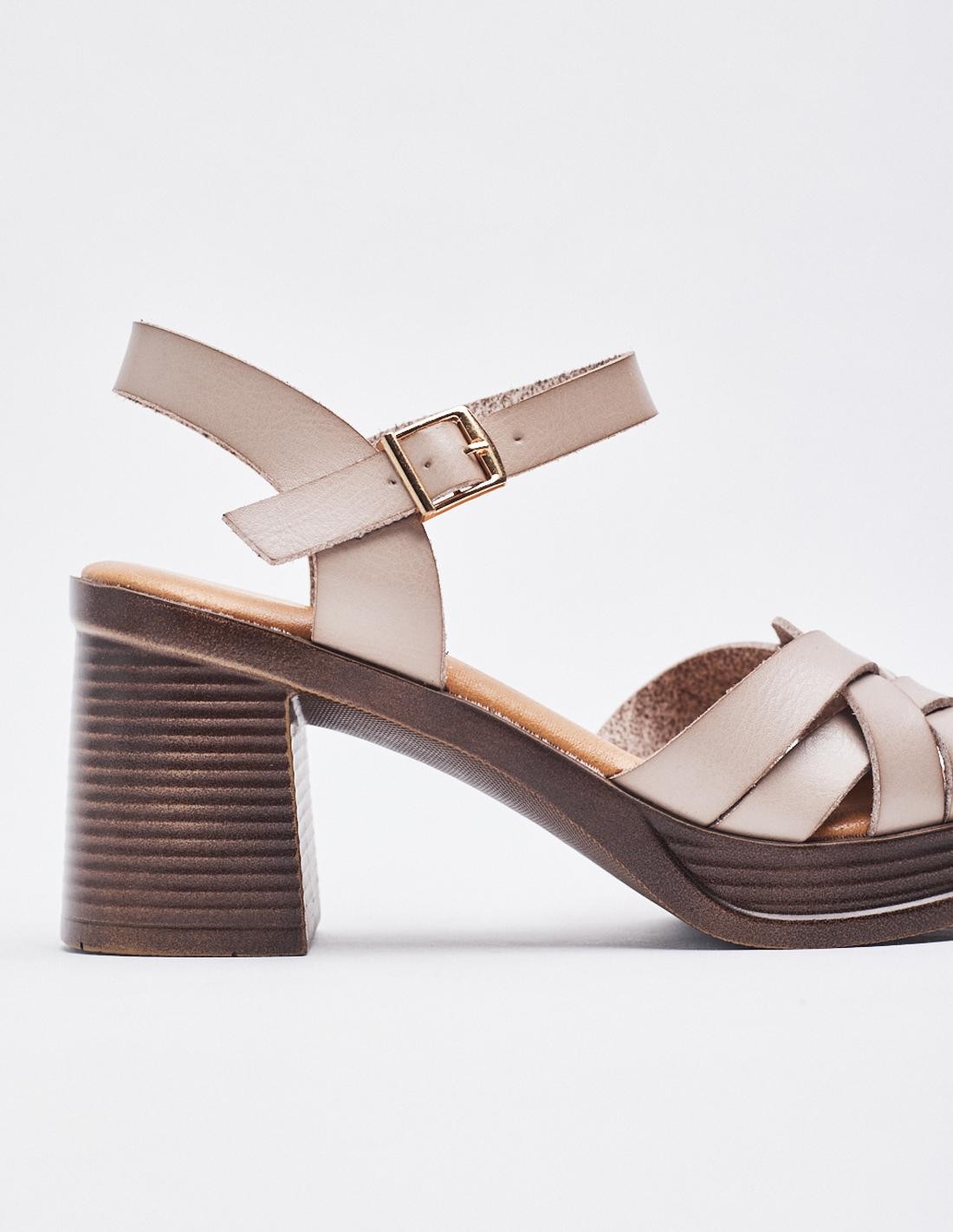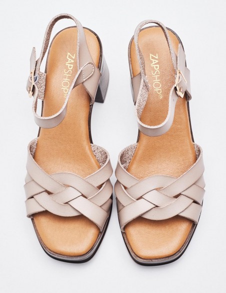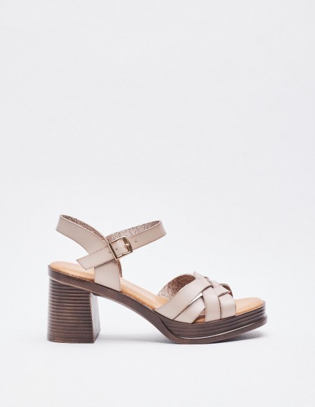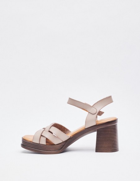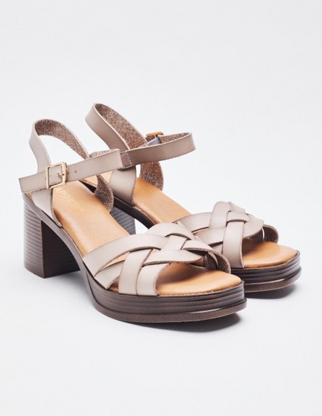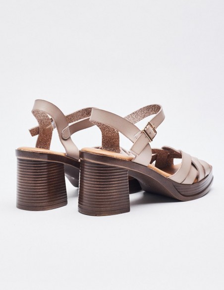 Zapato tipo sandalia en efecto piel. Tiras en la parte delantera. Tacón alto ancho en combinación de materiales. Acabado en punta redonda Altura del tacón: 7 cm