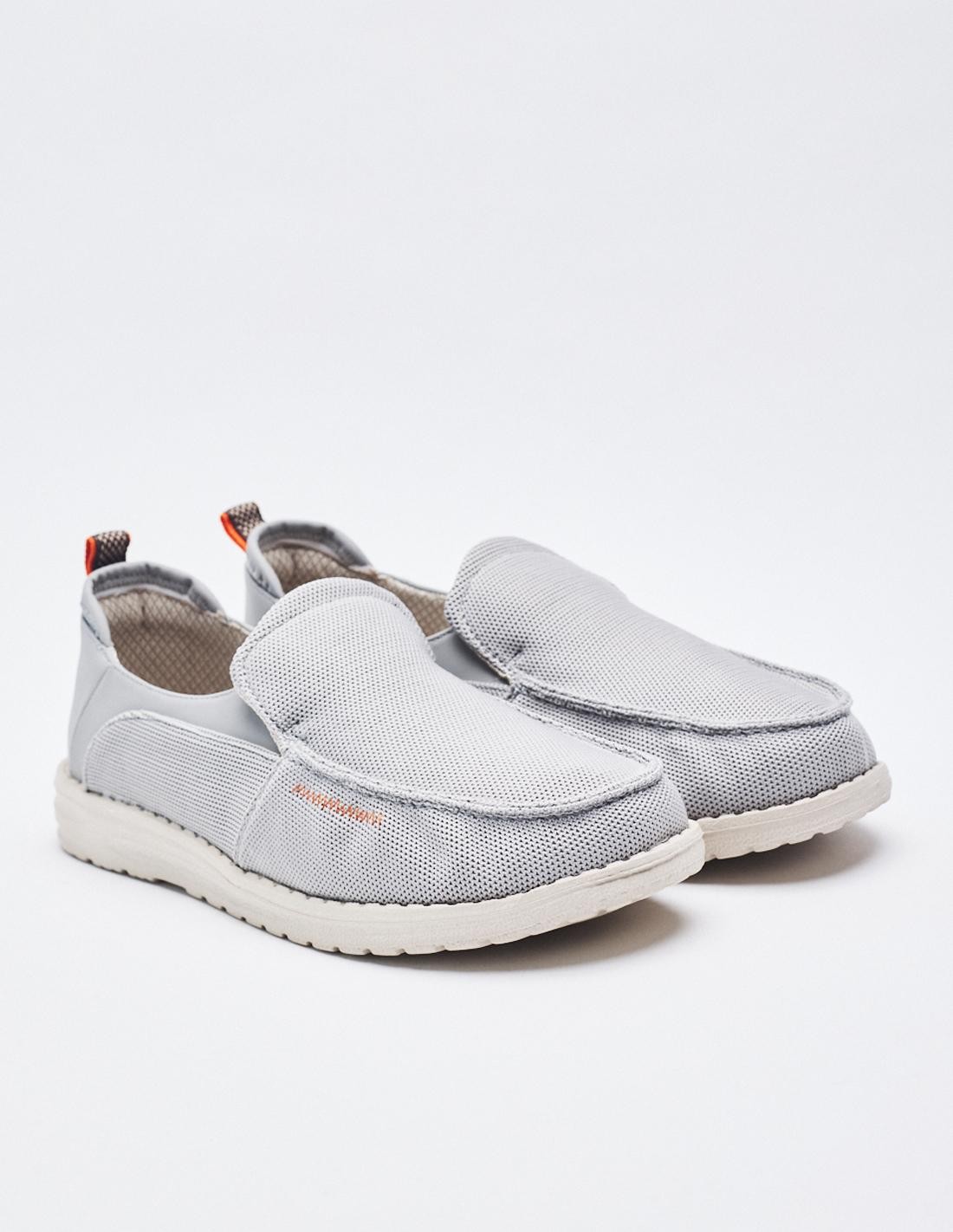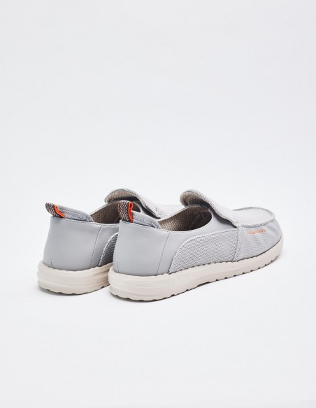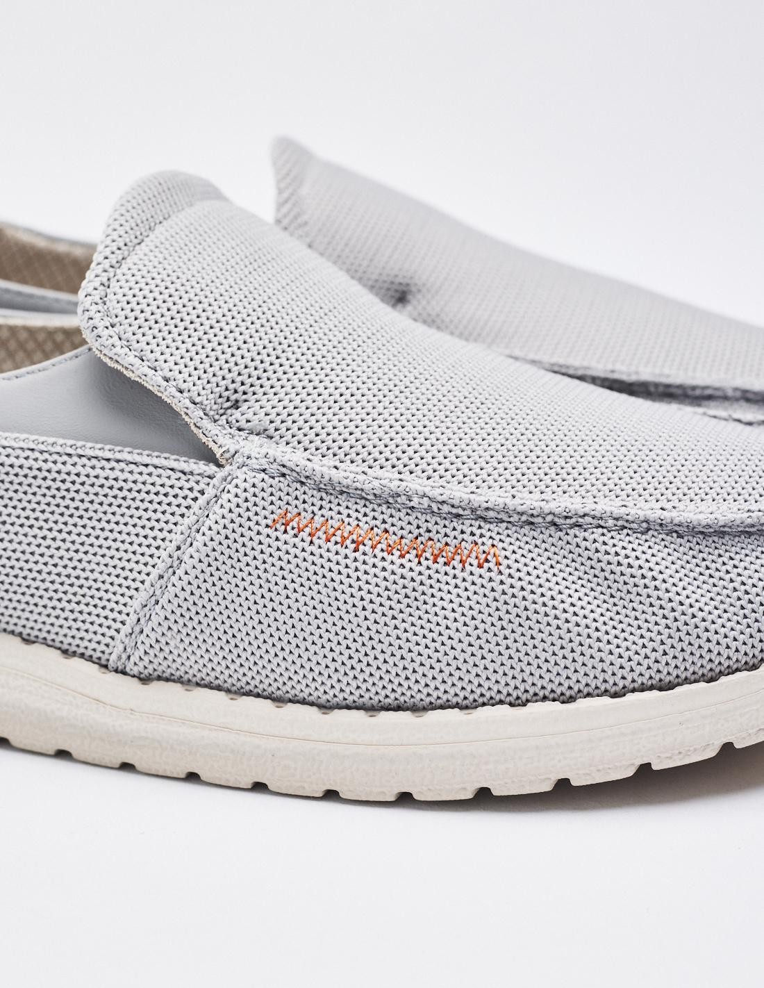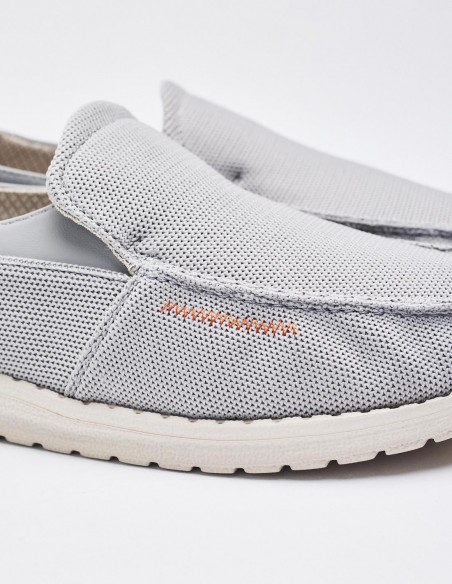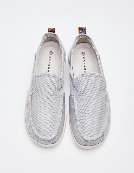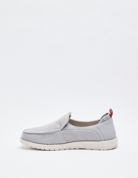 Mocasín en efecto tejido casual . Parte superior lisa . Horma redonda. Suela de goma.