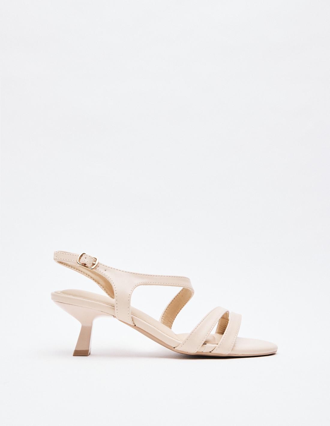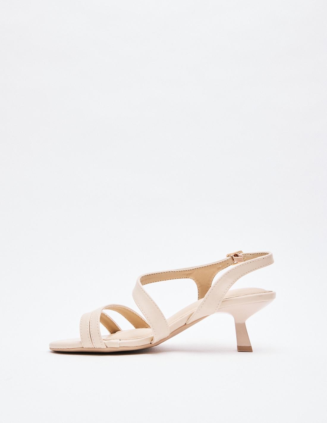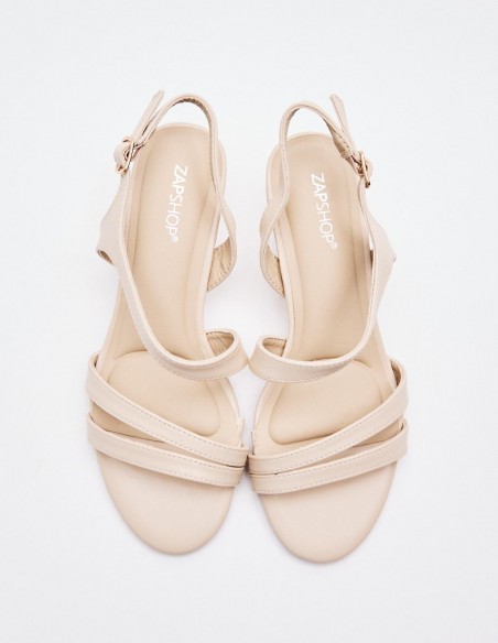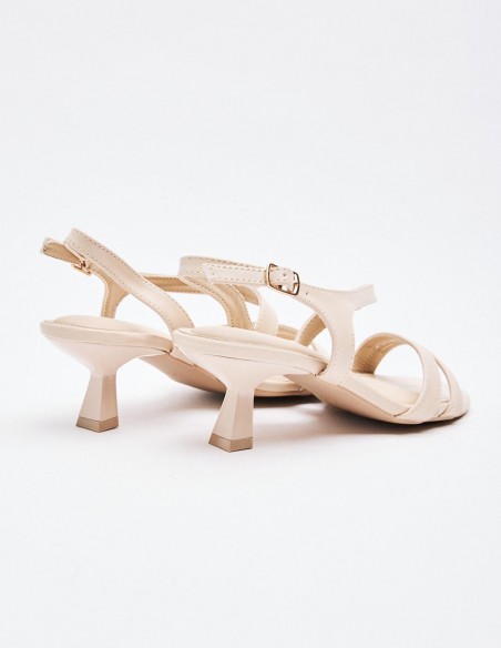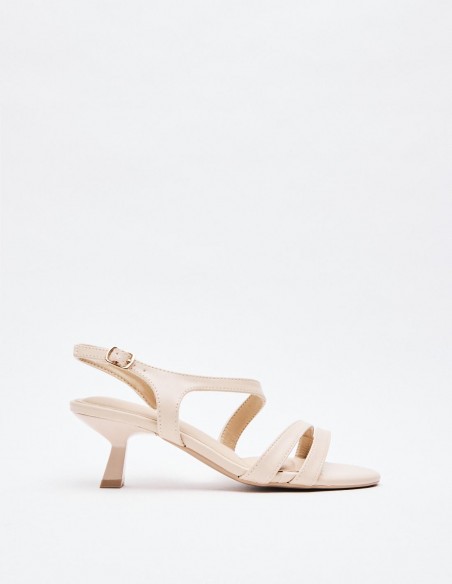 Zapato tipo sandalia en efecto piel . Tacón alto fino. Tiras delanteras. Tira a la pulsera del tobillo con cierre mediante hebilla. Acabada en punta redonda.