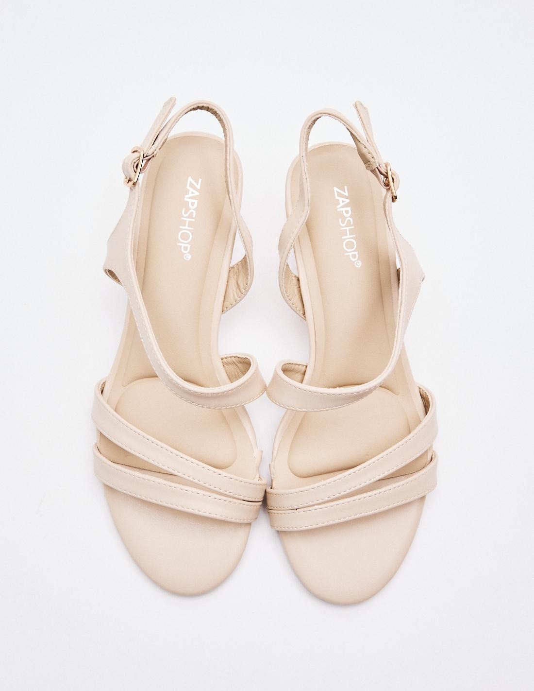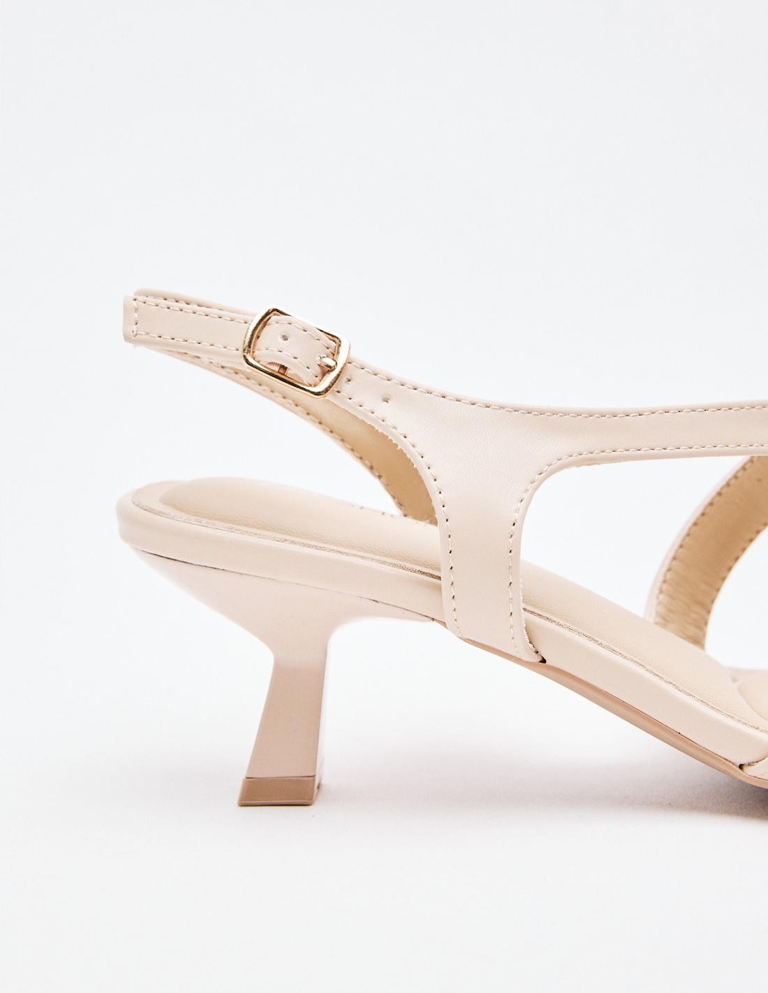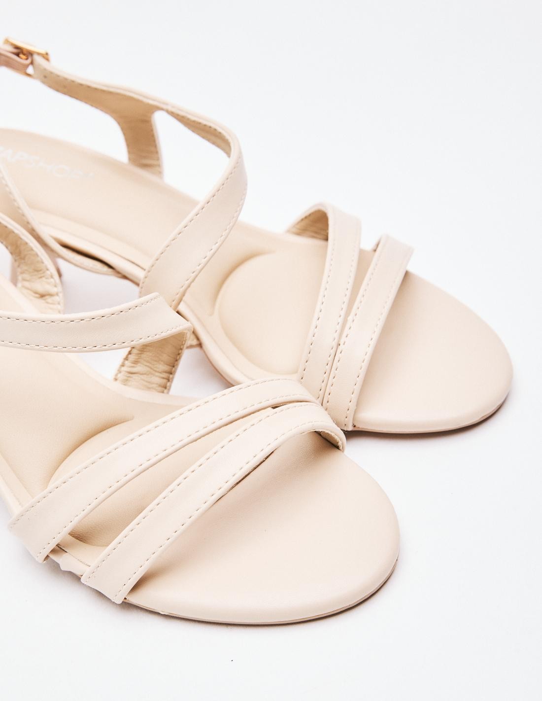 Zapato tipo sandalia en efecto piel . Tacón alto fino. Tiras delanteras. Tira a la pulsera del tobillo con cierre mediante hebilla. Acabada en punta redonda.