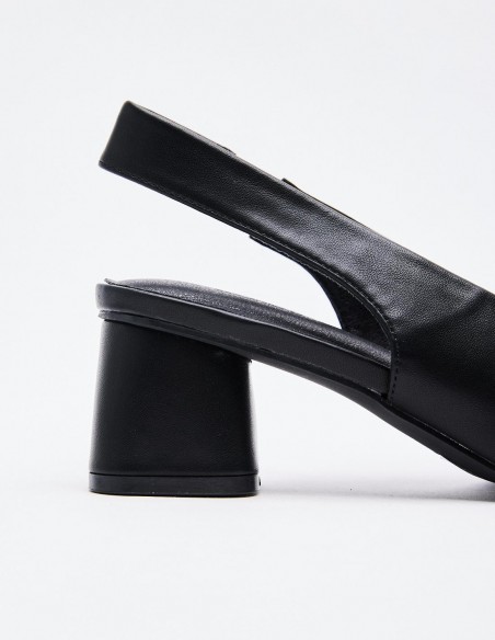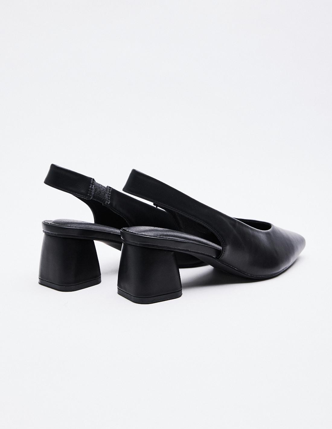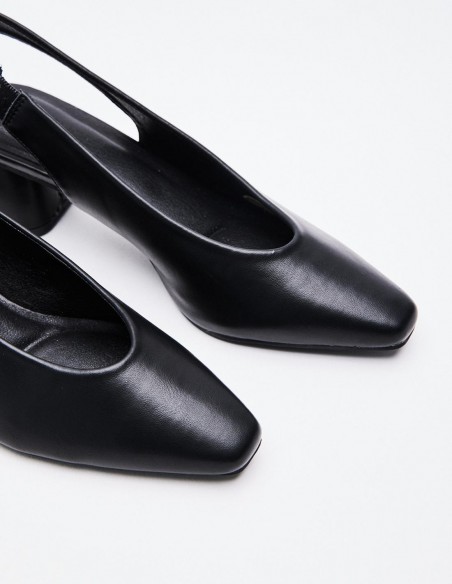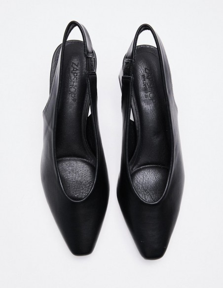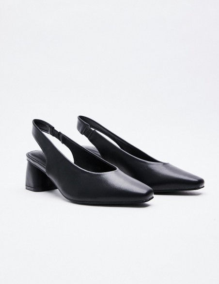 Zapato tacón destalonado en efecto piel. Tira trasera con detalle elástico. Acabado en punta. Altura del tacón: 5 cm